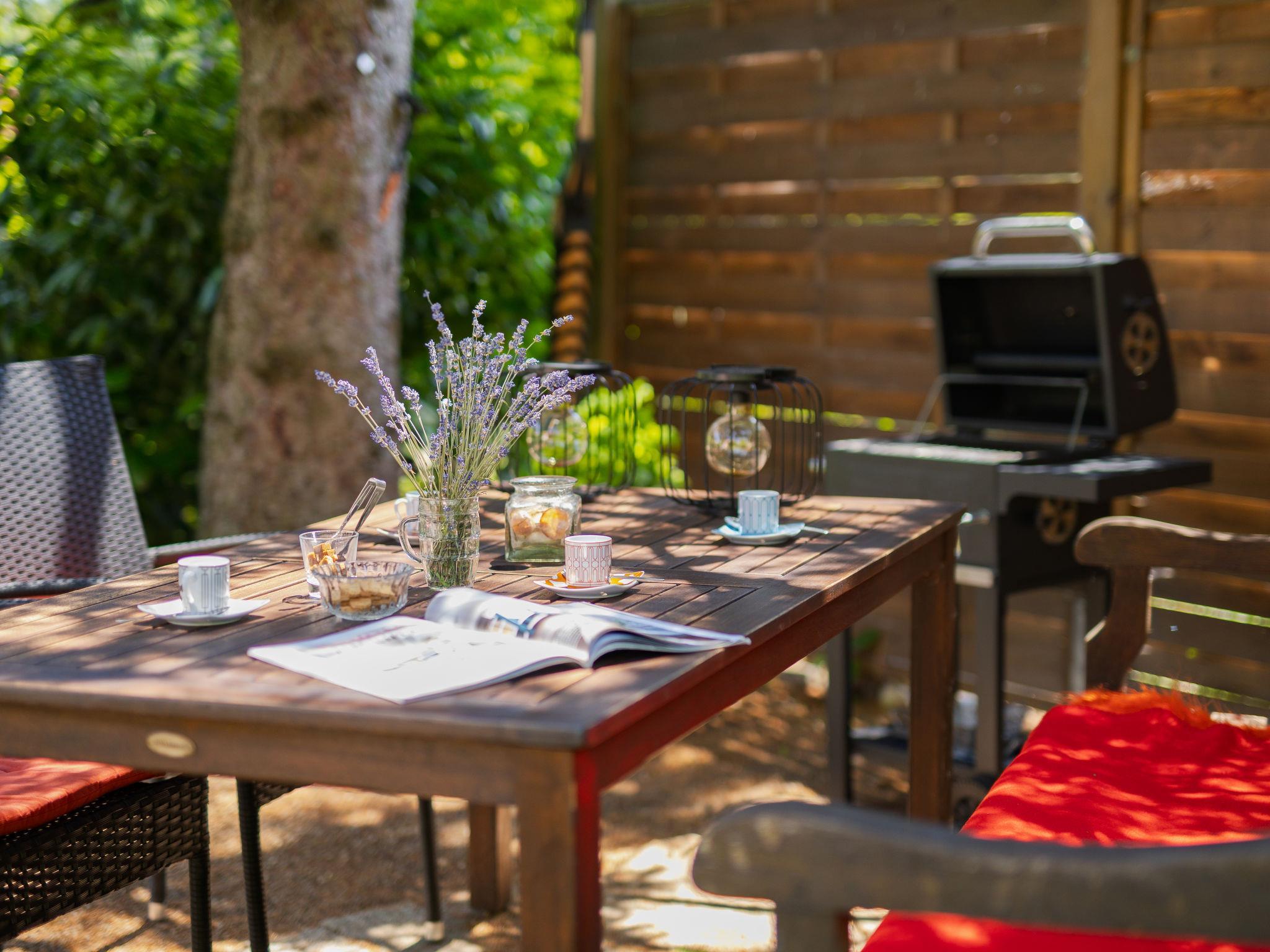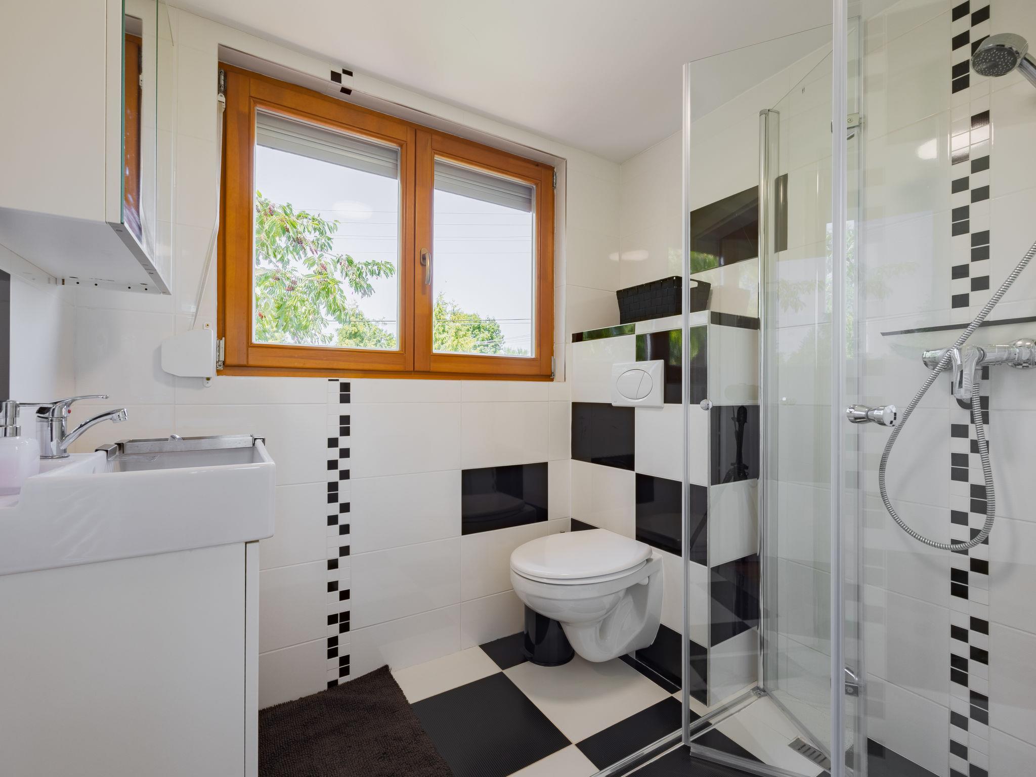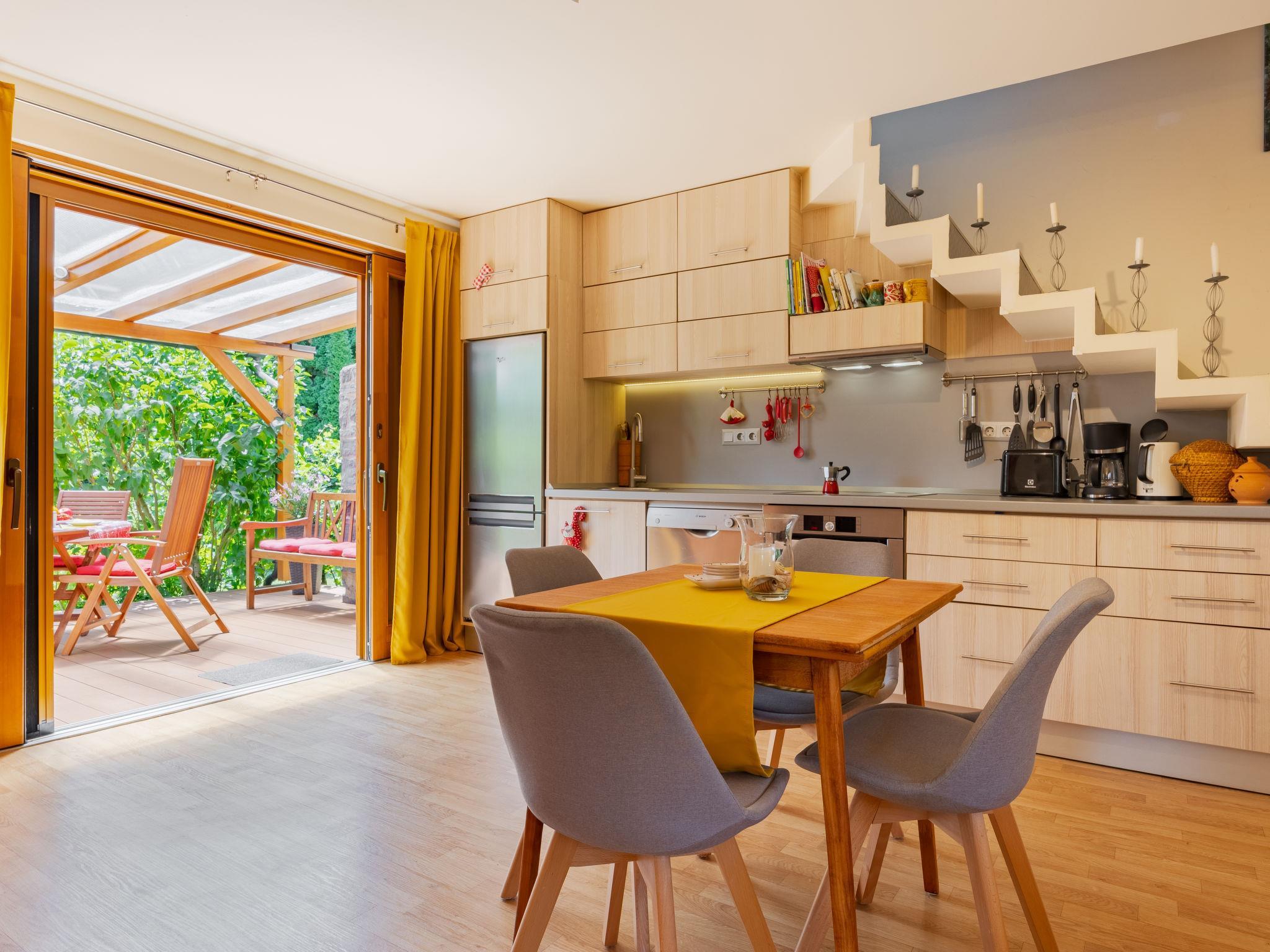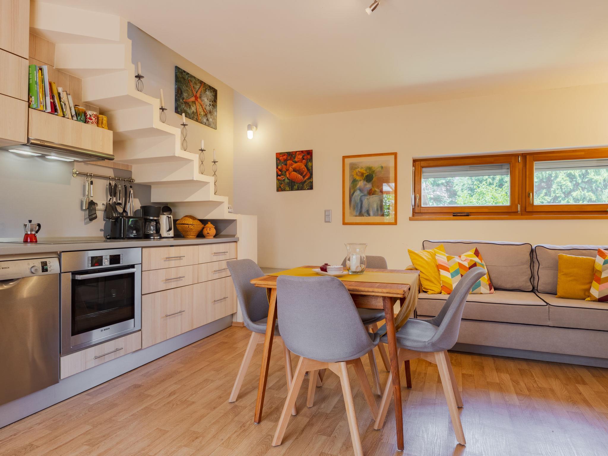 3-Zimmer-Doppelhaushälfte auf 2 Stockwerken, Südlage. Objekt geeignet für 5 Erwachsene + 1 Kind. Modern und gemütlich eingerichtet: offenes Wohn-/Esszimmer mit 1 Diwanbett und Esstisch. Ausgang zur Terrasse. 1 kleines Doppelzimmer mit 1 franz. Bett (160 cm, Länge 200 cm). (Backofen, Geschirrspüler, 4 Glaskeramikplatten, Toaster, Wasserkocher, Tiefkühler, elektrische Kaffeemaschine). Dusche/WC. Heizung. Obergeschoss: 1 Doppelzimmer mit 1 Bett (80 cm, Länge 180 cm), 1 franz. Bett (160 cm, Länge 200 cm), Klimaanlage. Dusche/WC. Terrasse, Südostlage. Terrassenmöbel, Gartengrill (mobil), Liegestühle (2). Zur Verfügung: Waschmaschine, Fliegengitter. Internet (WLAN). Parkplatz (eingezäunt). Bitte beachten: geeignet für Familien. Nichtraucher-Haus.