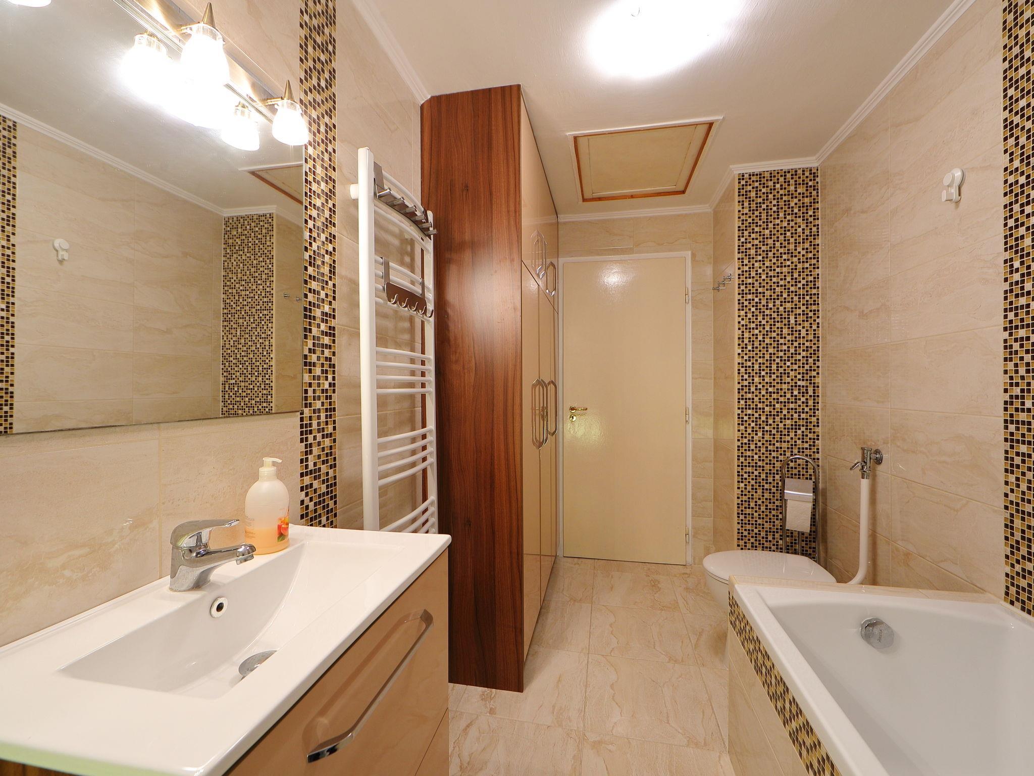 5-Zimmer-Haus 100 m2 auf 2 Stockwerken. Gemütlich eingerichtet: Wohnzimmer mit Essecke und Sat-TV (Flachbildschirm), Klimaanlage. Ausgang zur Terrasse. 1 Zimmer mit 2 Betten und Klimaanlage. 1 Zimmer mit 2 Betten. Offene Küche (3 Kochplatten, Backofen, Geschirrspüler, Mikrowelle). Dusche, sep. WC. Heizung (extra). Obergeschoss: 2 Zimmer, jedes Zimmer mit 1 Bett, 1 franz. Bett und Klimaanlage. Ausgang zum Balkon. Bad/WC. Balkon 12 m2, Balkon 8 m2, Terrasse 20 m2. Terrassenmöbel, Gartengrill, Liegestühle (2). Zur Verfügung: Waschmaschine, Safe, Fliegengitter, Kinderhochstuhl, Babybett (extra). Internet (WLAN). Parkplatz (eingezäunt, 3 Autos). EG19016358