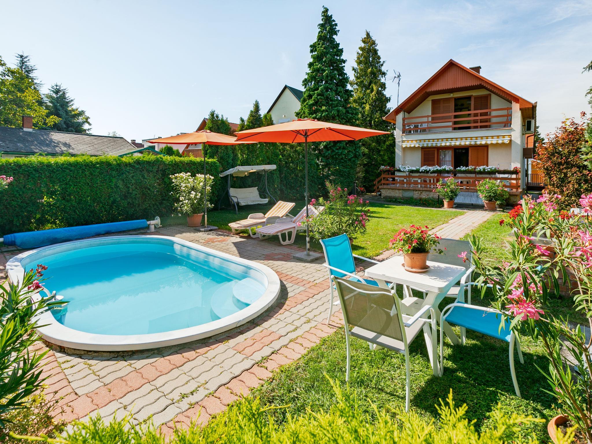 Balatonalmádi 15 km von Balatonfüred: Schönes Haus "Flamingo". Im Ort, 500 m vom Zentrum, 200 m vom See, 850 m vom Strand. Zur Alleinbenutzung: Garten (eingezäunt), Liegewiese, Schwimmbad nierenförmig (13 m2, 120 cm tief, saisonale Verfügbarkeit: 01.Jun. - 20.Sep.). Grill, Feuerstelle. Im Hause: Wireless LAN, Klimaanlage. Zur Verfügung: Fahrräder (5). Lebensmittelgeschäft 500 m, Supermarkt 800 m, Restaurant 600 m, Bäckerei 1 km, Café 800 m, Fahrradverleih 1 km, Bushaltestelle "Balatonalmádi (Budatava), vasúti" 1 km, Bahnstation "Balatonalmádi" 2 km, Grasstrand 900 m, Hallenbad 4 km, Thermalbad "Hévíz" 81 km. Segelschule 1 km, Tennis 1 km, Reitstall 3 km, Radweg 100 m, Kinderspielplatz 700 m. Nahe gelegene Sehenswürdigkeiten: Balatonfüred 16 km, Tihany 21 km, Veszprém Zoo 16 km, BalatonBob Theme Park 9 km, Annagora Aquapark 16 km, Balaton Golf Club 23 km. Bitte beachten: Die Schlüsselübergabe findet bei der Agentur Interhome in Balatonfüred statt, 16 km. Eisenbahnlinie in der Nähe 60 m vom Haus.