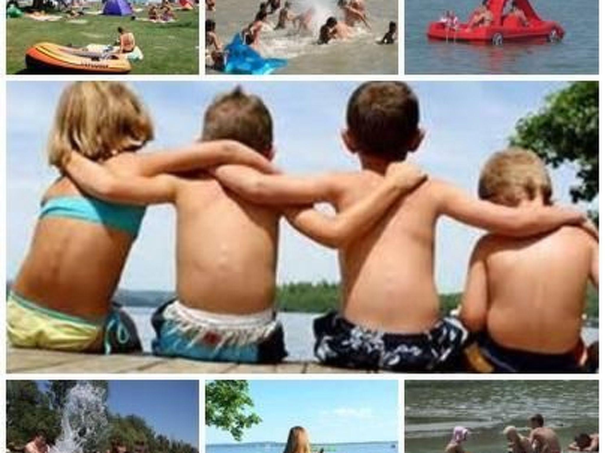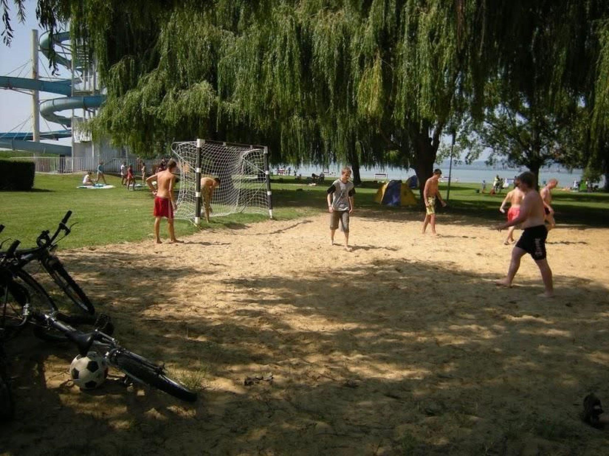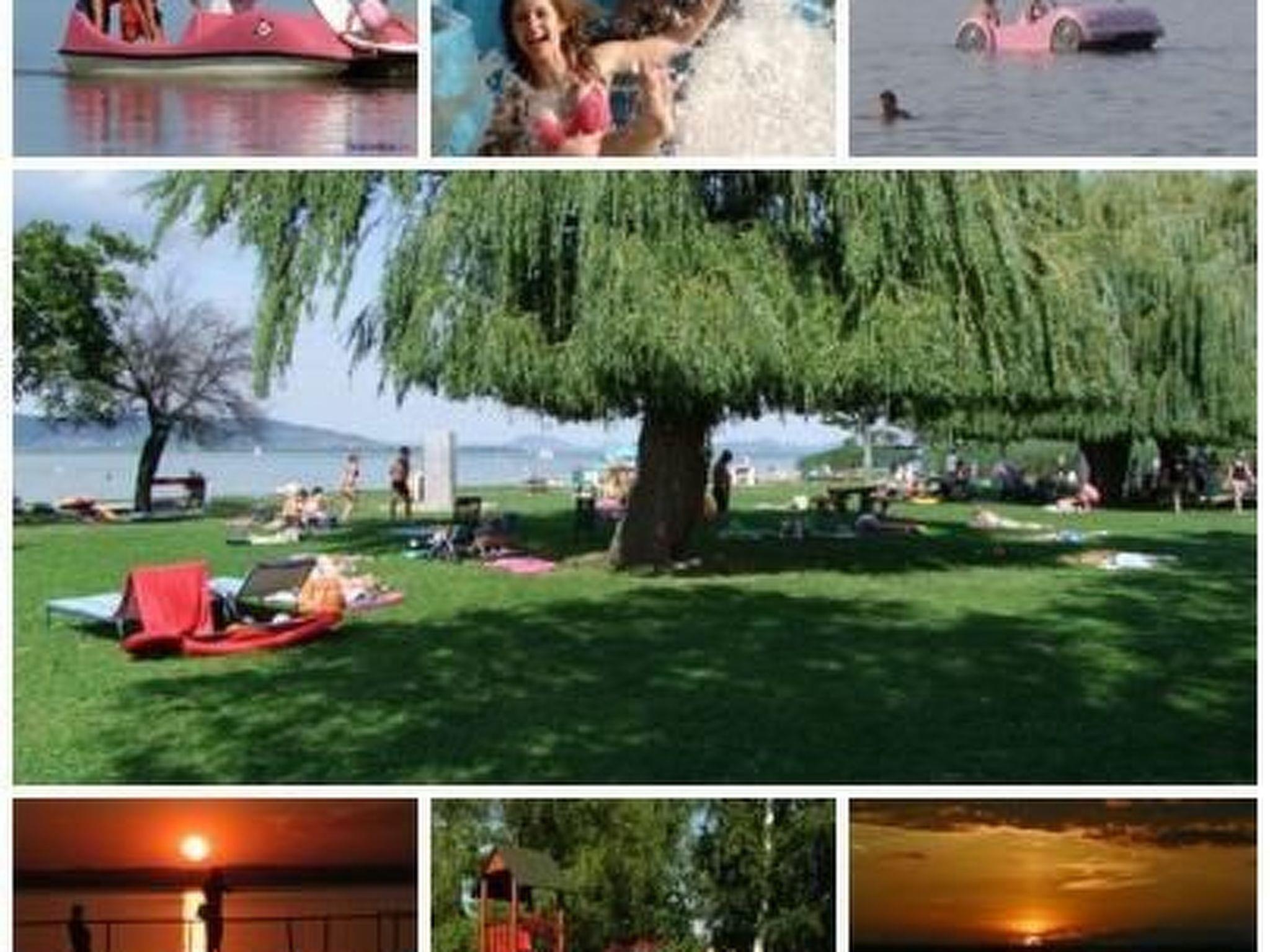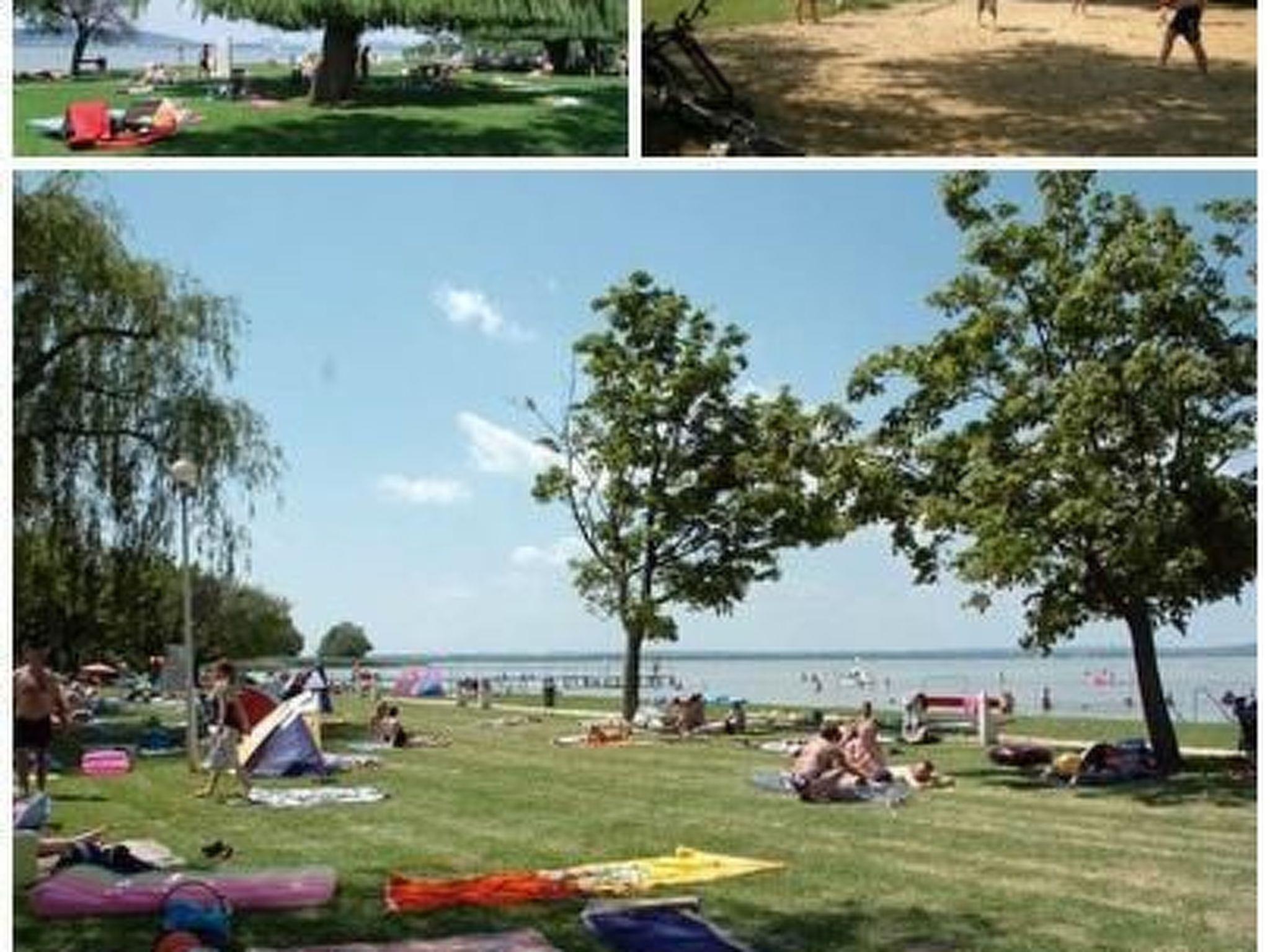 Baden im Balaton: Der in der Nähe liegende Strand ist auch für Familien mit Kleinkindern ideal, weil man in dem flachen Wasser weit hineingehen kann. Die Kinder, die nicht gut schwimmen können, können auch mit Sicherheit in der Nähe des Ufers baden. Auf dem Spielplatz, der sich auf dem Strand befindet, können die Eltern mit ihren Kindern zusammen die Erregung des gedankenlosen Spieles genießen.