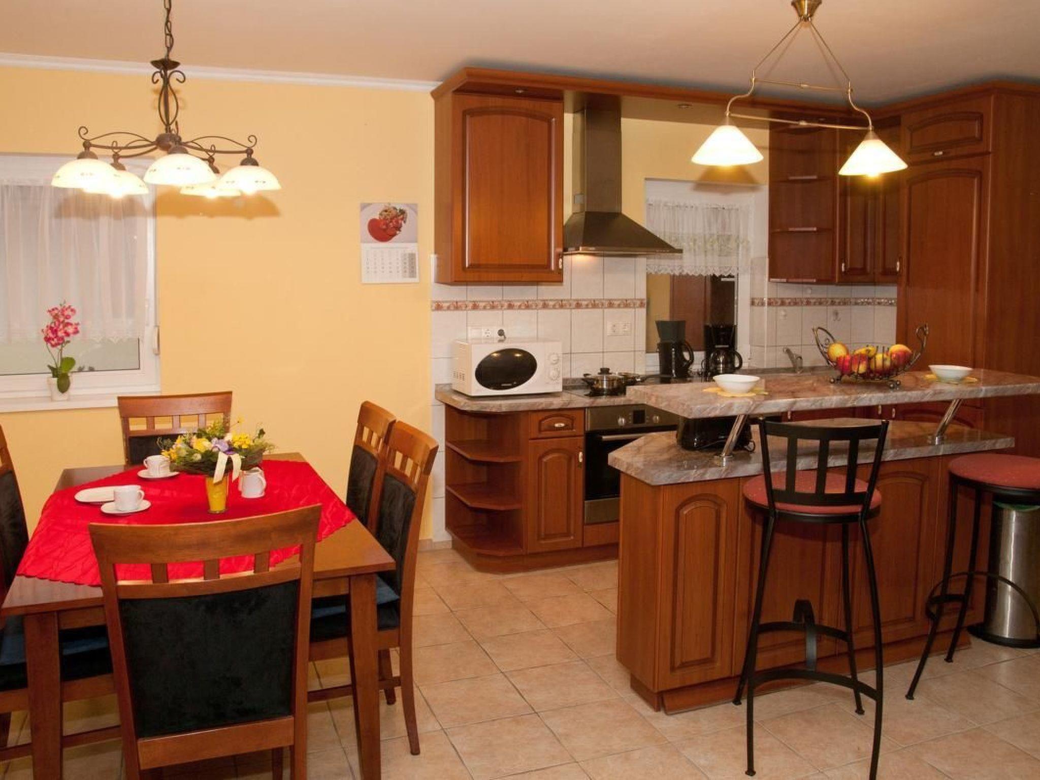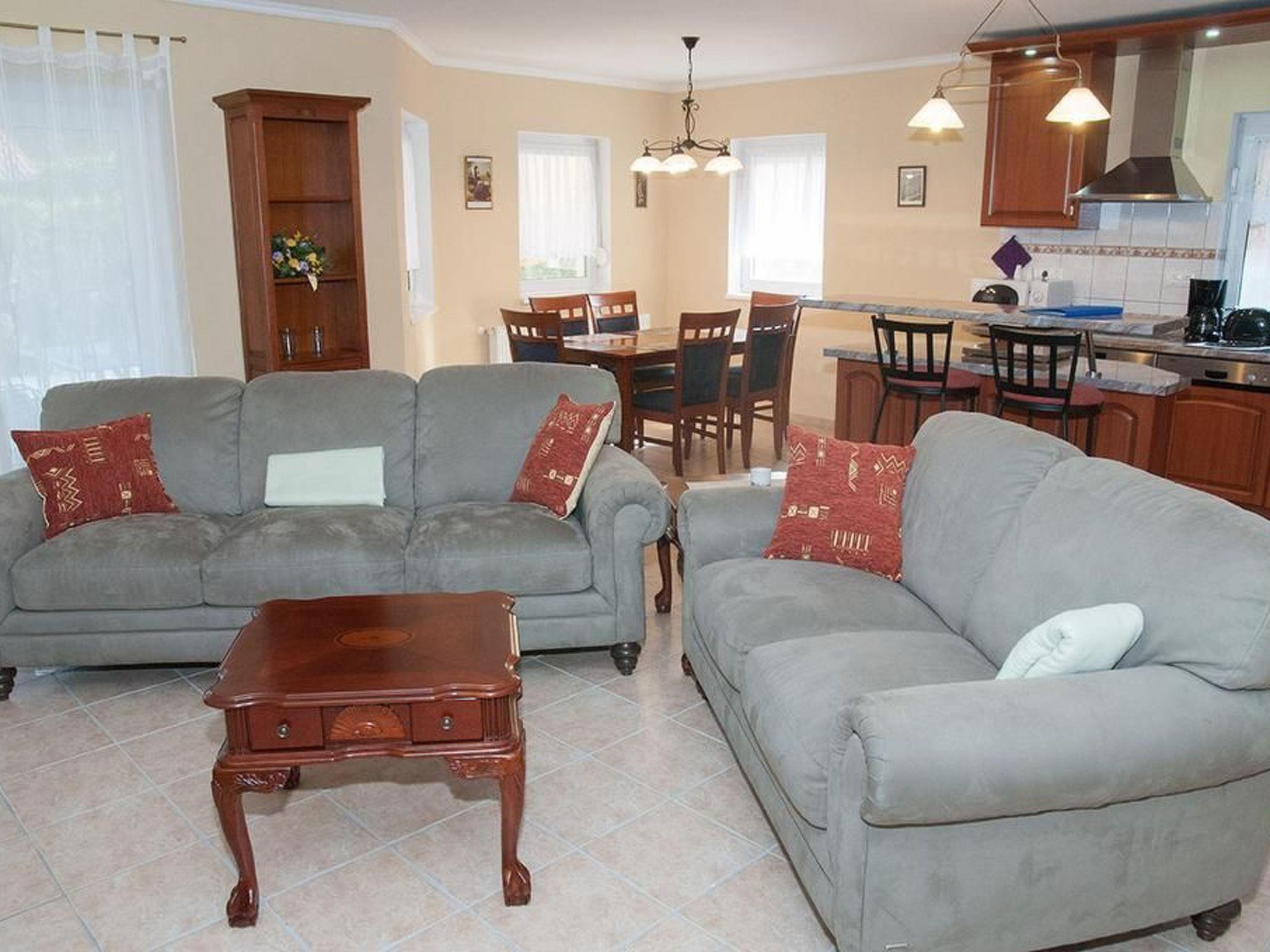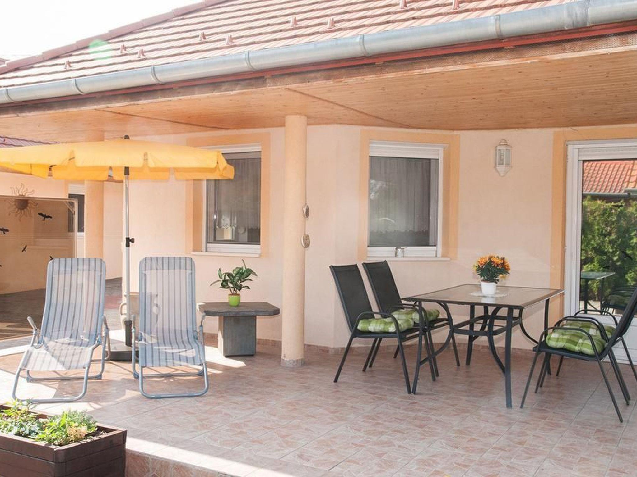 Sie suchen ein hochwertiges Ferienhaus an der Südseite des Balaton in Balatonbereny? Wir bieten Ihnen unser Ferienhaus "Steffi G" ohne Umgebungsstress und dennoch in geringer Entfernung zu allen für einen guten Urlaub notwendigen Dinge wie Gastronomie, Einkaufsmöglichkeiten für den täglichen Bedarf, Post, Arzt, Bahn, Fahrradverleih. Bitte beachten Sie, dass nur vier normale Betten vorhanden sind. Eine eventuelle fünfte und sechste Person schläft auf einer Schlafcouch in extra Zimmer, eine siebente und achte Person schläft auf mobilen Gästebetten. Ein Gitterbett für Kinder ist auch vorhanden. Das Haus verfügt über W-LAN. Bitte beachten Sie, dass wir verpflichtet sind, für die Gemeinde eine Kurtaxe pro Tag und Person ab 18 Jahre in bar bei Ankunft zu kassieren. Die Höhe der Kurtaxe kann variieren. Natürlich sind auch in Ihrem Ferienhaus einige Fahrräder erhältlich je nach Verfügbarkeit. Sie können auch einen Gasgrill nutzen auf Anfrage. Für eher mal kalte Tage haben wir eine wunderschöne Fasssauna im Garten für bis zu 8 Personen aufgestellt, welche sehr gern genutzt wird. Unser Verwalter verwaltet die Schlüssel dafür und übergibt Ihnen auch die notwendigen Saunatücher gegen eine Waschgebühr je Tuch. Bitte in der Sauna KEINE Aufgüsse machen. Für Strom zahlen Sie erst, wenn der Gesamtstromverbrauch in Ihrem Urlaub 200kwh überschreitet. Darüber kostet eine geringe Gebühr. Garten ,Pool und Sauna werden von beiden auf den Grundstück vorhandenen Urlauberfamilien genutzt. Ein Strandbad finden Sie in 800m. Für Freunde des Freikörperkultur finden Sie zusätzlich in 2km Entfernung ein sehr schönes Strandbad. Der Radweg rund um den Balaton führt auch durch unseren Ort. Keszthely als größte Stadt am Balaton befindet sich in 15km Entfernung. Sie bieitet sehr viel Sehenswürdigkeiten, ein sehr schönes Strandbad, einen wirklich schönen Boulevard und natürlich alle notwendigen Einkaufsmöglichkeiten, die man sich für den Urlaub denken kann. Ein Krankenhaus gibt es auch dort. Und natürlich eine Menge Gastronomie. Von dort fahren auch Schiffe über den Balaton ab. In ca 17km von Balatonbereny finden Sie das weltberühmte Thermalbad Heviz. In 20km finden Sie ein weiteres extrem schönes Thermalbad in Zalakaros und für Freunde der unberührter Natur beginnt in 15km das Gebiet Kissbalaton. Weitere Anregungen finden Sie bei Ankunft in einer Infomappe im Haus. Ihre Kontaktperson, bei der Sie die Schlüssel bekommen, spricht deutsch und beantwortet Ihnen auch eventuelle Fragen. Sollten Sie irgendwann einmal mit nur mit maximal 6 Personen zu uns kommen wollen, besteht die Möglichkeit ein weiteres, ebenfalls sehr hochwertiges Ferienhaus für 4-6 Personen in direkter Nachbarschaft Ihres Hauses anzumieten. Achtung! Bitte beachten Sie, dass Sie nach EU-Recht auch für Kinder jeden Alters einen Kinderausweis mitführen müssen. Dieser muss ggf. an Grenzen und dann aber auch zwingend für die Anmeldung bei der Touristikbehörde vorhanden sein. Personen jeglichen Alters ohne Ausweis müssen zurückgewiesen werden. Wir wünschen Ihnen einen erholsamen und stressfreien Urlaub bei uns. Sollte es Ihnen gefallen, dann besuchen Sie uns gern wieder. Wir würden uns freuen.