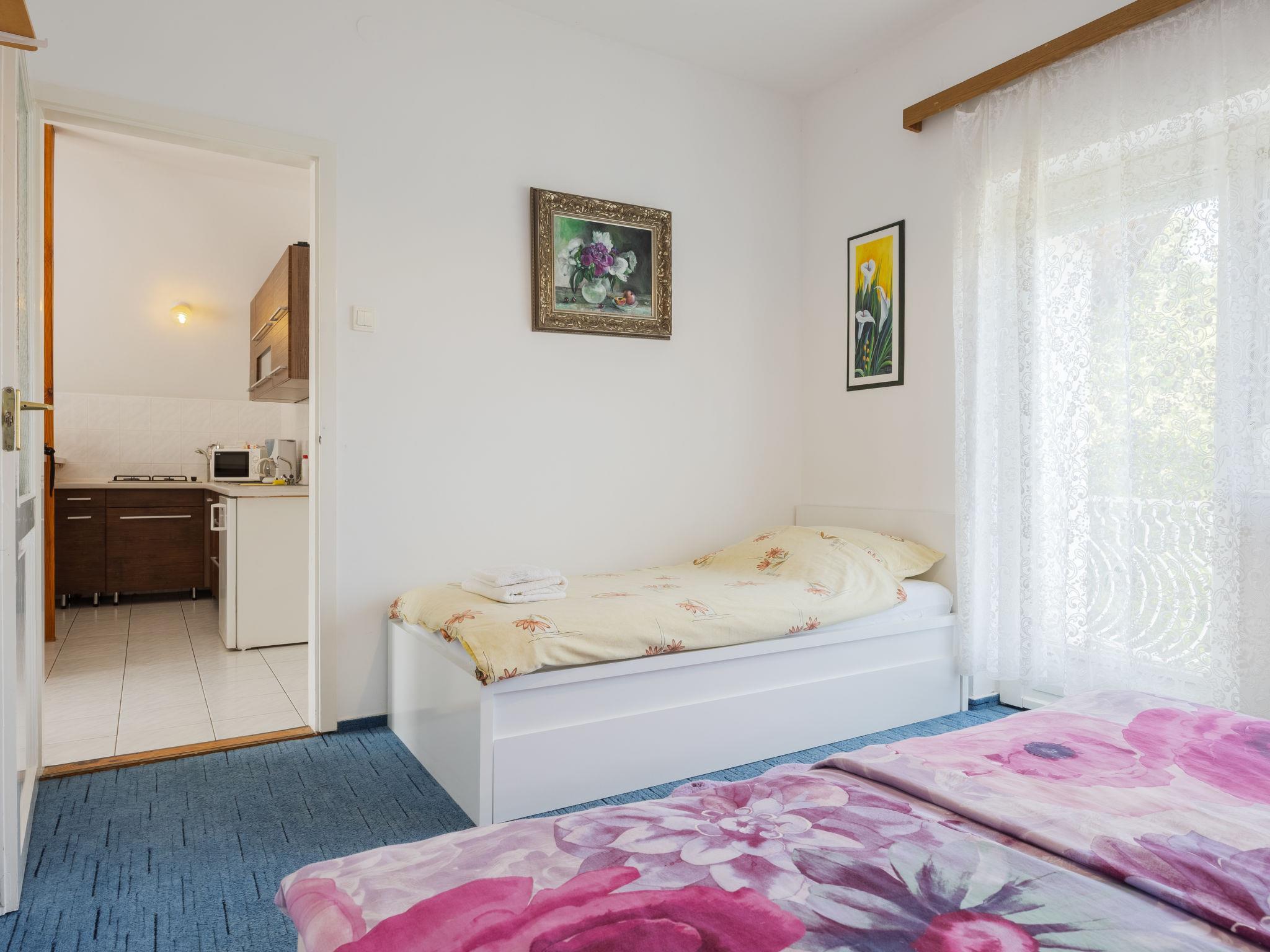 "Anthony 2", 3-Zimmer-Wohnung 60 m2, im Dachgeschoss. Teilweise abgeschrägt, komfortabel eingerichtet: Wohn-/Esszimmer mit Sat-TV. Ausgang zum Balkon. 1 Zimmer mit 1 Bett und 1 franz. Bett. 1 Zimmer mit 1 franz. Bett. Ausgang zum Balkon. Kleine Küche (4 Flammen, Toaster, Mikrowelle, elektrische Kaffeemaschine). Dusche/WC. Heizung, Klimaanlage. Balkon. Terrassenmöbel, Gartengrill (mobil). Zur Verfügung: Kinderhochstuhl, Babybett (extra). Parkplatz. MA19010144