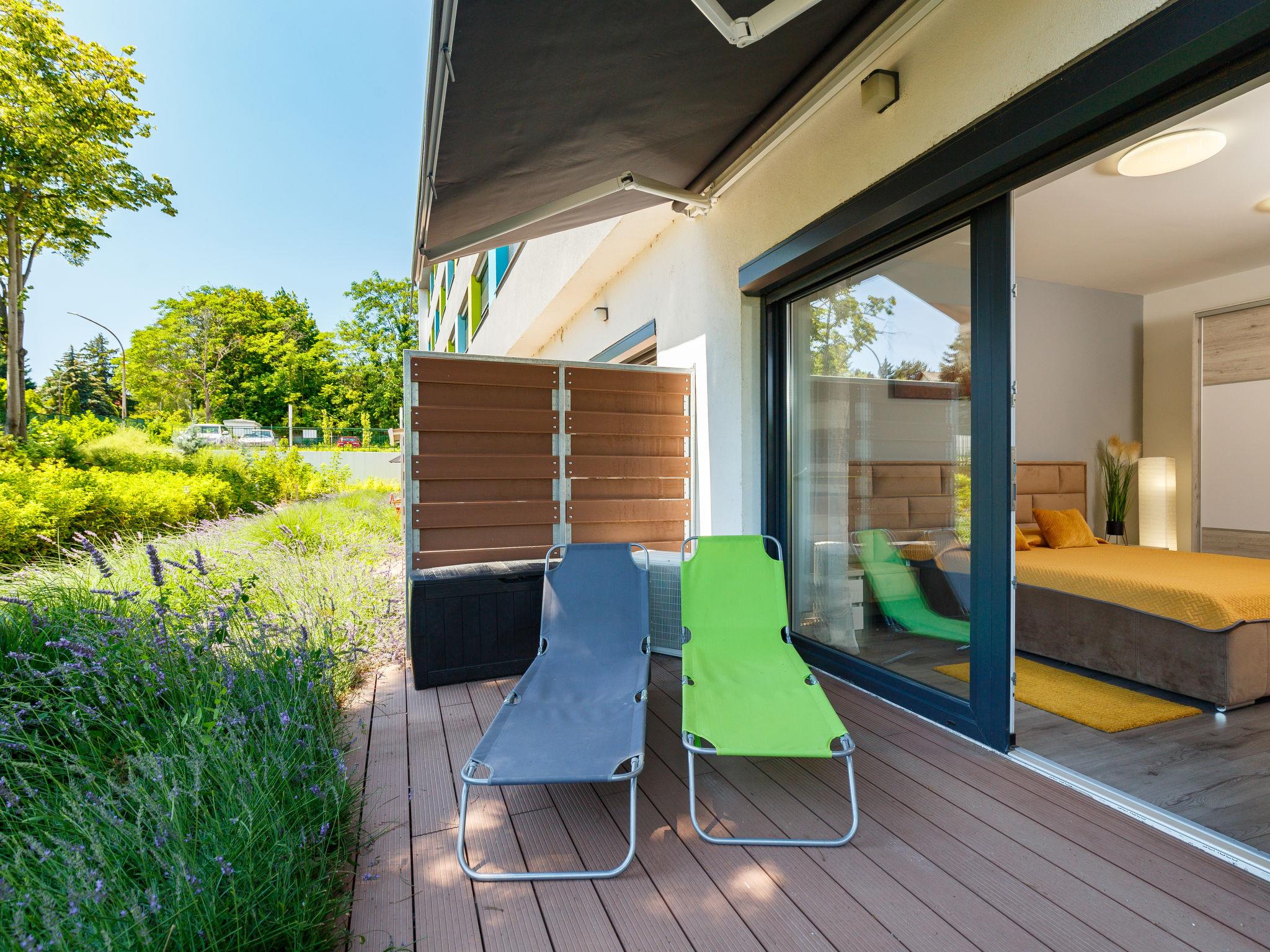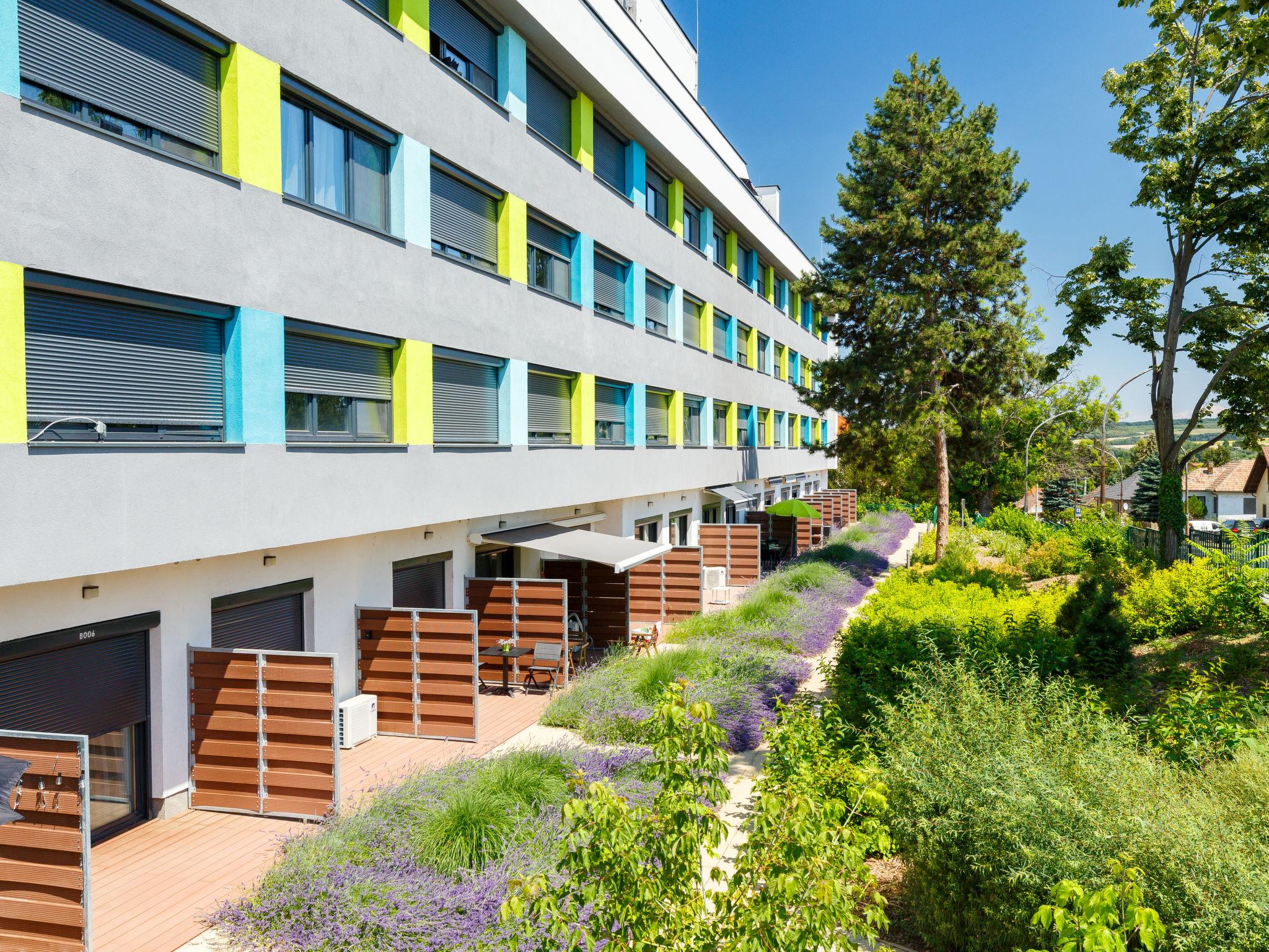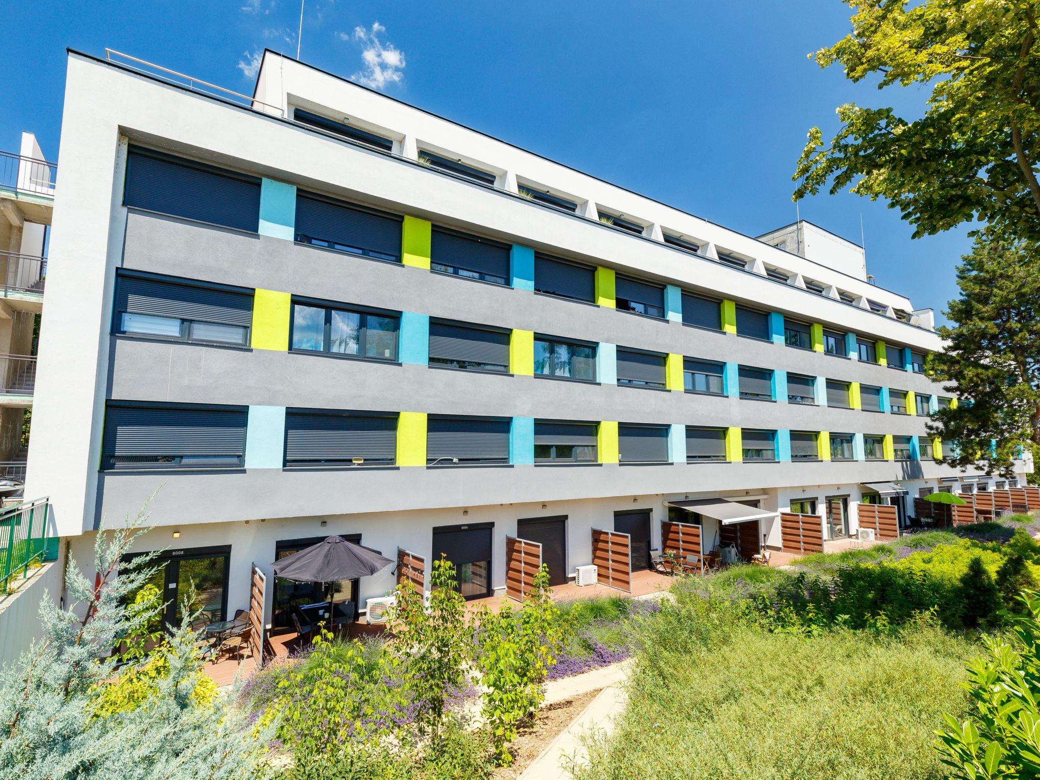 Balatonföldvár 19 km von Siófok: Modernes Appartementhaus, Baujahr 2022. Im Ort, zentrale Lage, vom See, 500 m vom Strand. Zur Mitbenutzung: Grundstück (eingezäunt), Garten, Schwimmbad eckig (12 x 8 m, 120 cm tief, saisonale Verfügbarkeit: 15.Mai. - 15.Sep.). Aussendusche. Im Hause: Wireless LAN, Klimaanlage. Lebensmittelgeschäft, Supermarkt 200 m, Restaurant 150 m, Internet-Café 200 m.