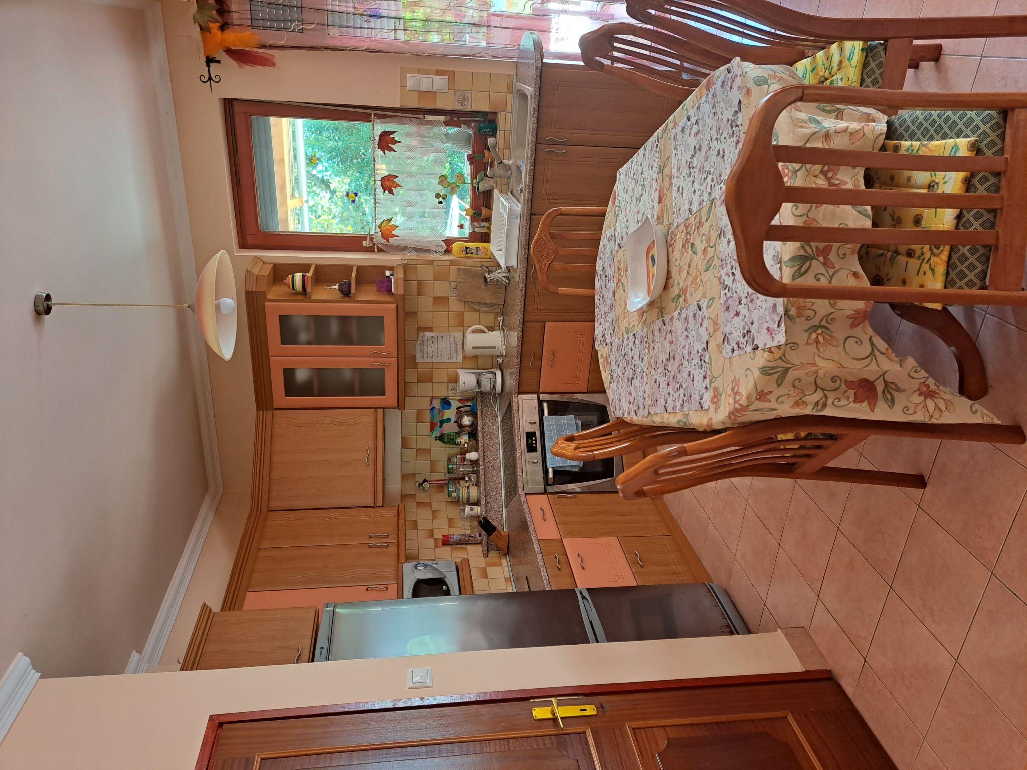 "Boros", 4-Zimmer-Haus 90 m2 auf 2 Stockwerken. Zweckmässig eingerichtet: Wohnzimmer mit Esstisch, Sat-TV und Stereoanlage. Ausgang zur Terrasse. Offene Küche (Backofen, Geschirrspüler, 4 Glaskeramikplatten, Toaster, Wasserkocher, Mikrowelle, Tiefkühler, elektrische Kaffeemaschine). Dusche/WC. Keine Heizmöglichkeit. Dachgeschoss: 1 abgeschrägtes Zimmer mit 1 franz. Bett. 1 abgeschrägtes Doppelzimmer. 1 abgeschrägtes Zimmer mit 1 Bett und 1 franz. Bett (160 cm, Länge 200 cm). Bad/WC. Klimaanlage. Keine Heizmöglichkeit. Parkettboden. Terrasse teilweise überdacht. Terrassenmöbel, Liegestühle (2). Zur Verfügung: Internet (Wireless LAN, gratis). Bitte beachten: Nichtraucher-Haus. MA20009320