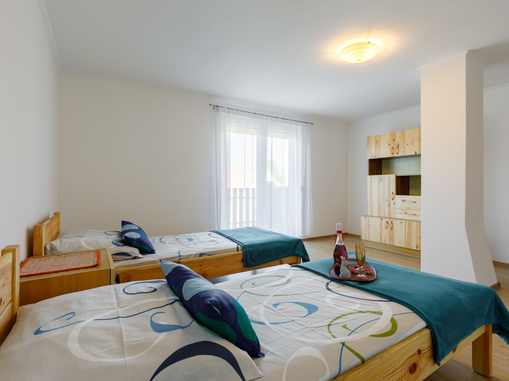 6-Zimmer-Haus 145 m2. Wohnzimmer mit Sat-TV. Ausgang zur Terrasse. 1 Zimmer mit 1 franz. Bett (180 cm, Länge 200 cm). 1 Zimmer mit 2 Betten. Küche (4 Kochplatten, Wasserkocher, Mikrowelle). Bad/Dusche, sep. WC. Keine Heizmöglichkeit. Obergeschoss: 1 Zimmer mit 1 Doppelbett. Ausgang zur Terrasse. 1 Zimmer mit 1 Doppelbett. 1 Zimmer mit 2 Betten. Ausgang zum Balkon. Eingang mit 1 Diwanbett. Dusche/WC. 2 Balkone, Terrasse. Terrassenmöbel, Balkonmöbel. Zur Verfügung: Internet (WLAN). Parkplatz (eingezäunt, 3 Autos). MA19021026