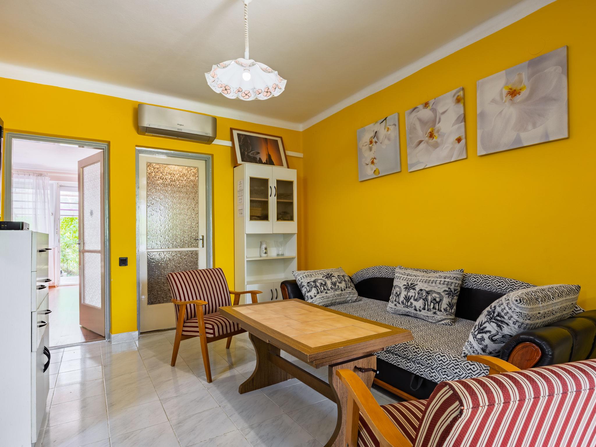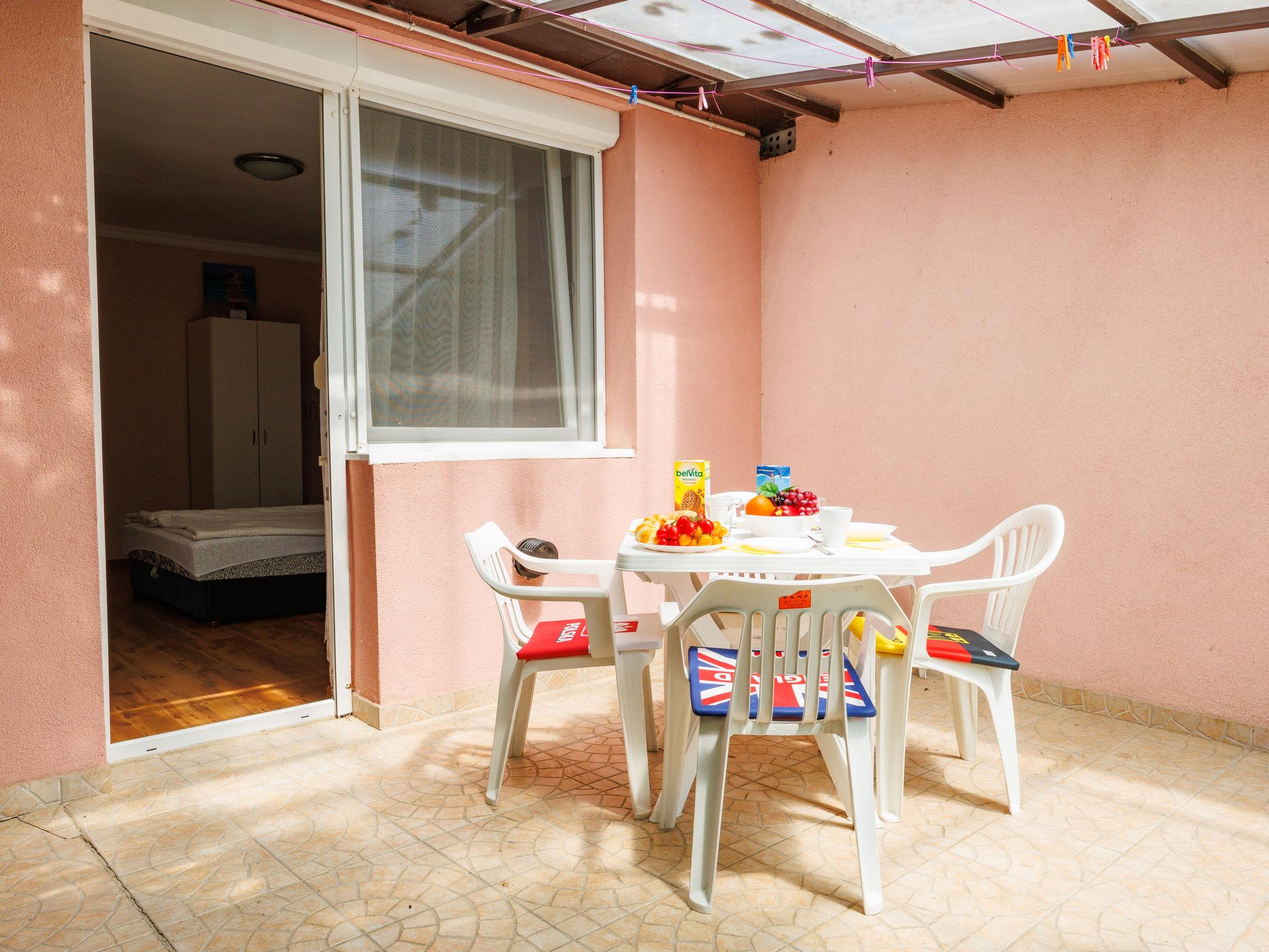 "Lien", 3-Zimmer-Wohnung im Erdgeschoss. Komfortabel eingerichtet: Wohnzimmer mit Digital-TV. Ausgang zur Terrasse. 1 Zimmer mit 1 franz. Bett (160 cm, Länge 200 cm). Ausgang zur Terrasse. 1 Zimmer mit 3 Betten (80 cm, Länge 180 cm). Ausgang zur Terrasse. Offene Küche (Backofen, 4 Flammen, Wasserkocher, Mikrowelle, Tiefkühler, elektrische Kaffeemaschine). Dusche/WC. Keine Heizmöglichkeit. 2 Terrassen, Nordlage und Südlage. Terrassenmöbel, Gartengrill (mobil). Zur Verfügung: Waschmaschine, Fliegengitter. Internet (WLAN, gratis). Bitte beachten Sie: Der Eigentümer wohnt im Obergeschoss. MA23056074