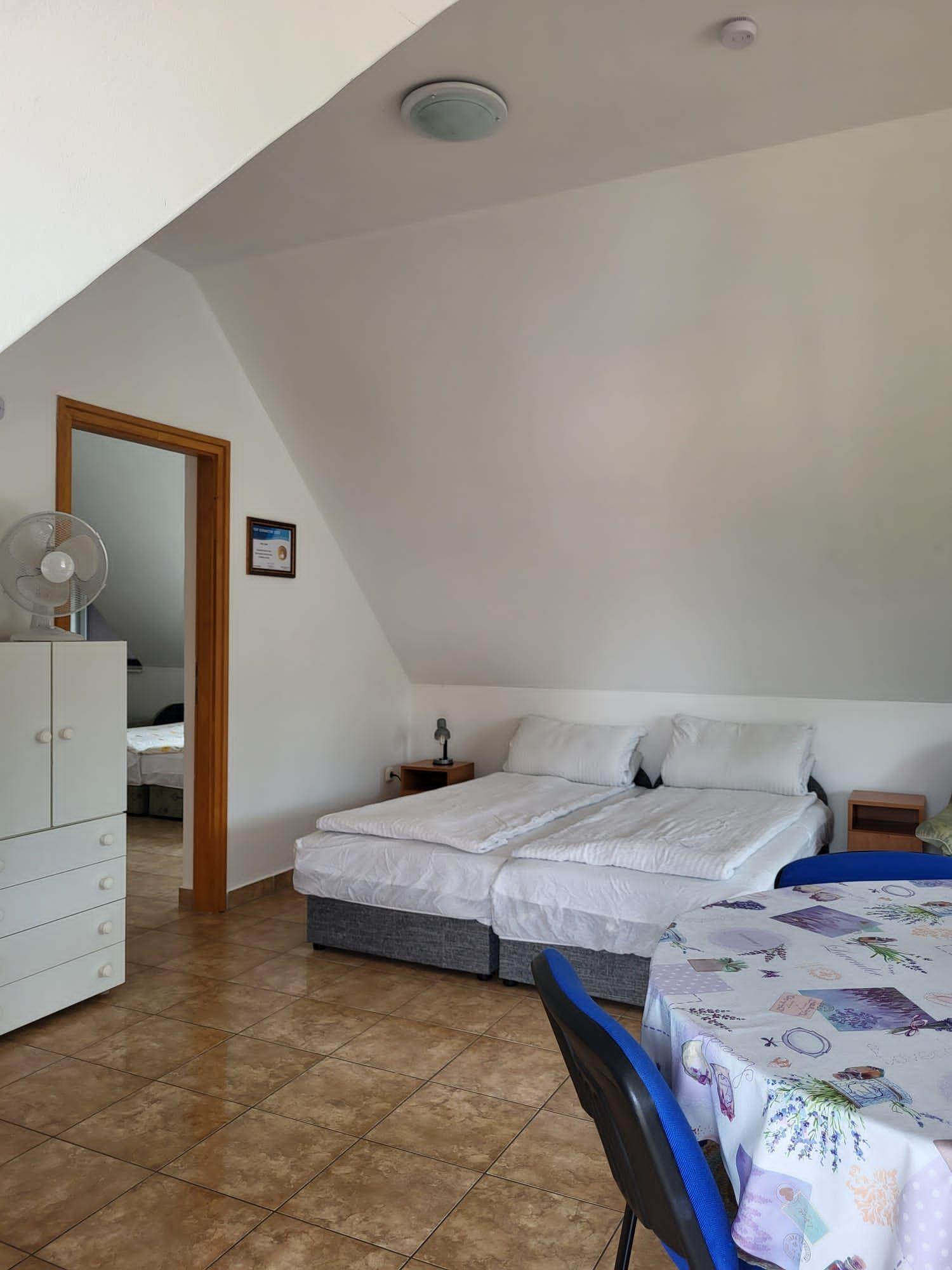 Große Schlaf und Wohnbereich mit 2 Betten, Couch, LED TV.