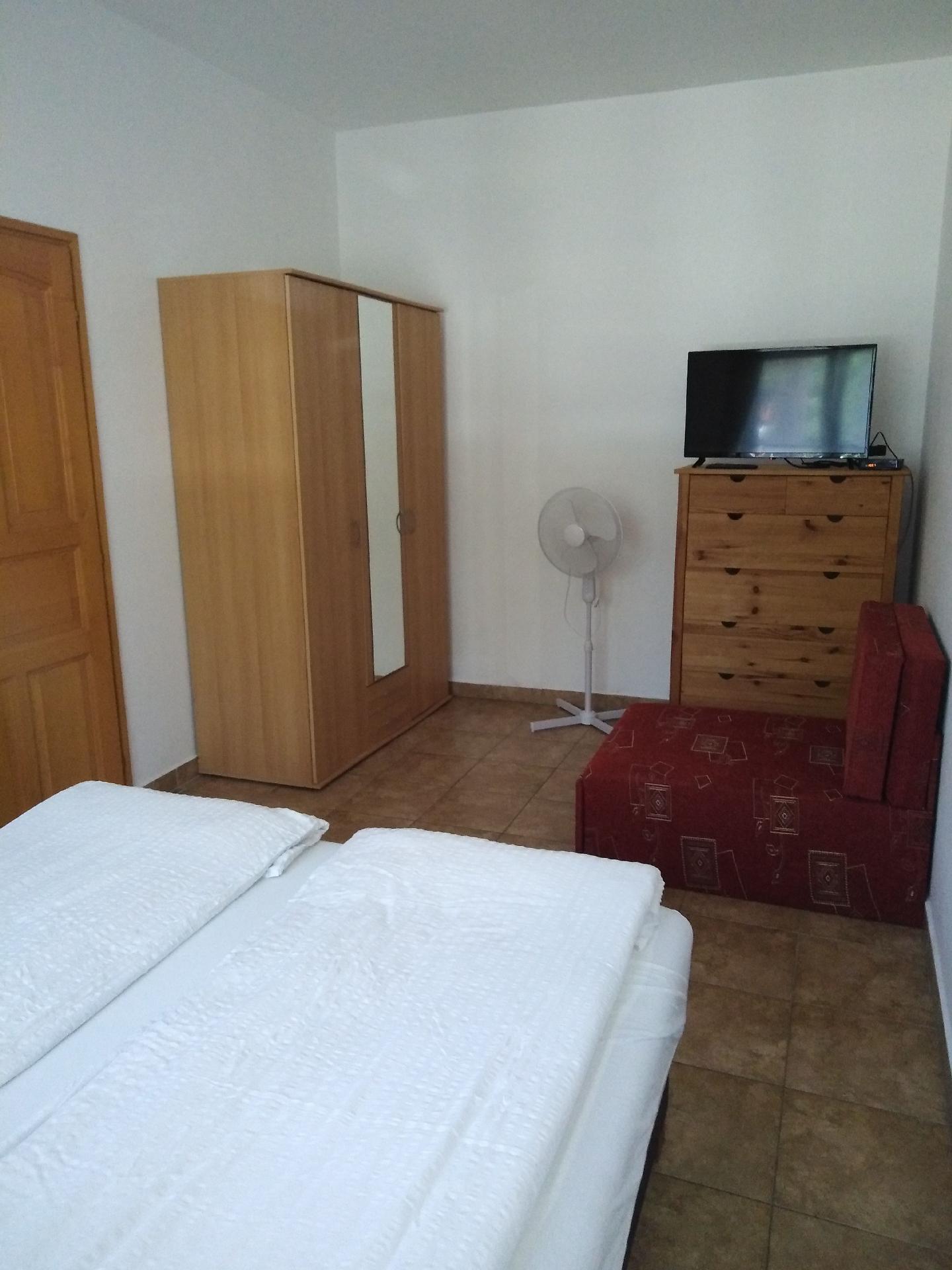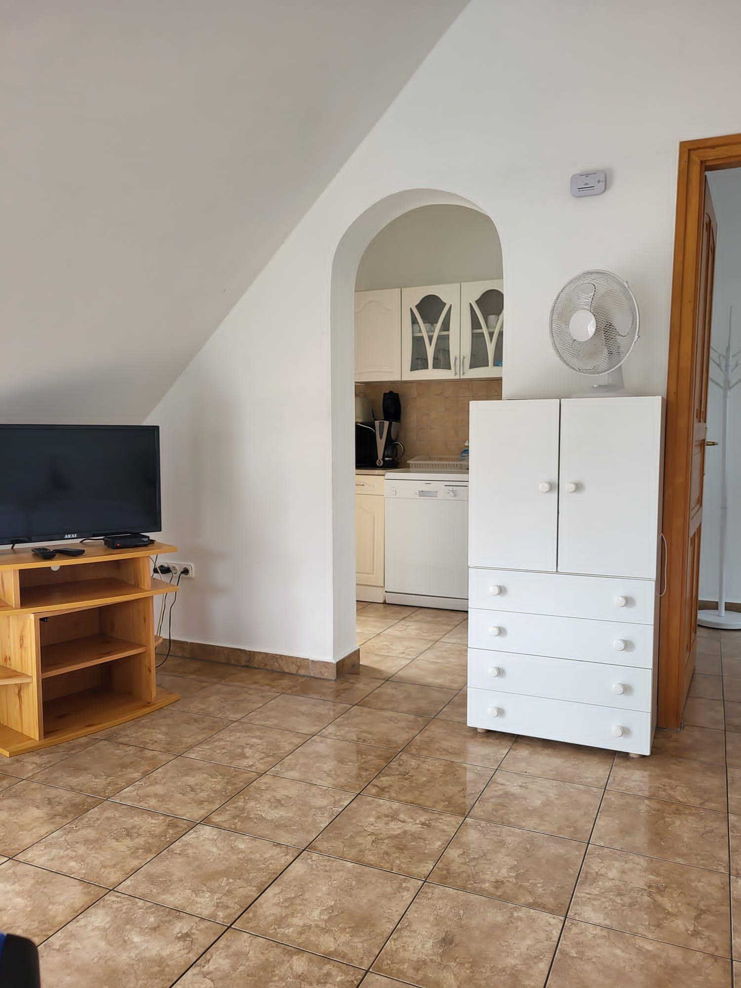 EG. Appartement für 2 Personen mit Klimaanlage. Wohnfläche ca. 26 m², überdachter Terrasse 14 qm, Poolblick. Vorraum mit Kochecke, Gas Herd mit Backoffen, Kühlschrank, Mikrowelle mit Back- und Grillfunktion, Kaffeemaschine, Toaster, Wasserkocher. Ein Doppelbettzimmer 160 x 200 cm, LED TV. Bad mit Dusche/WC. Sat-TV mit allen deutschen TV Sendern.