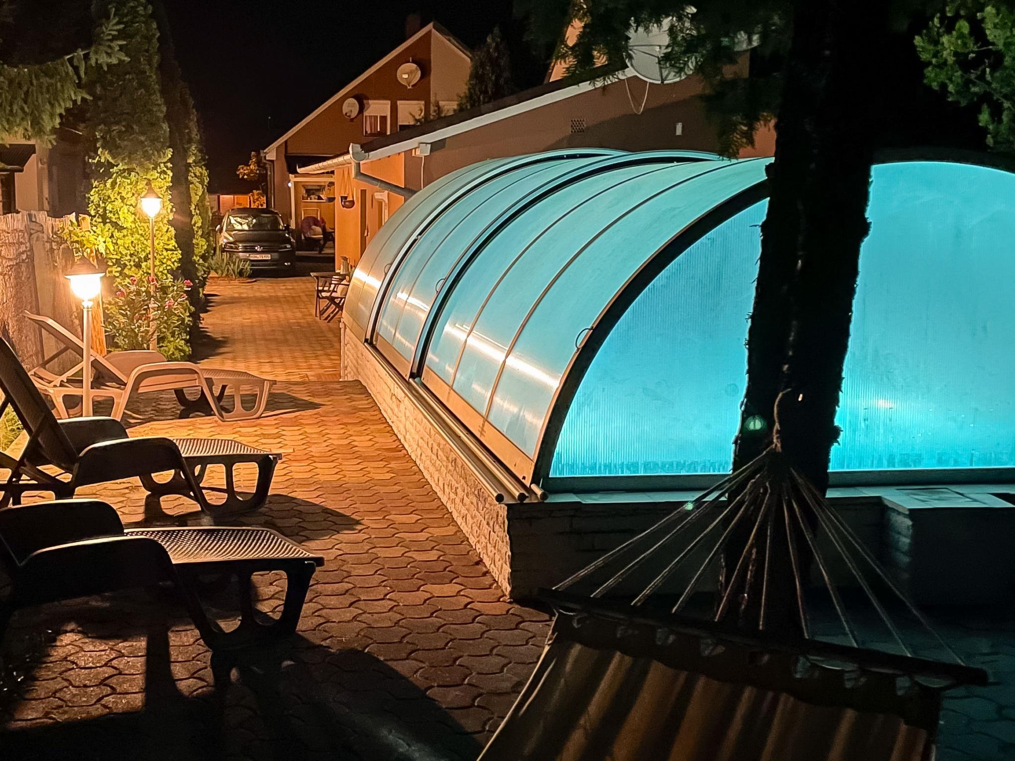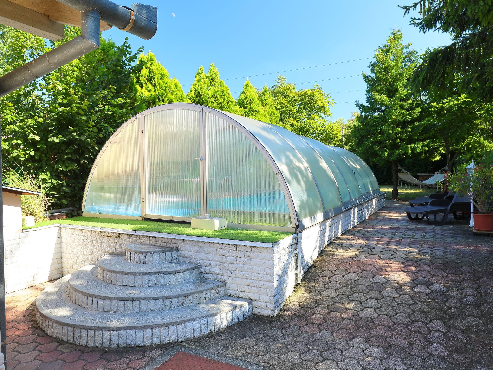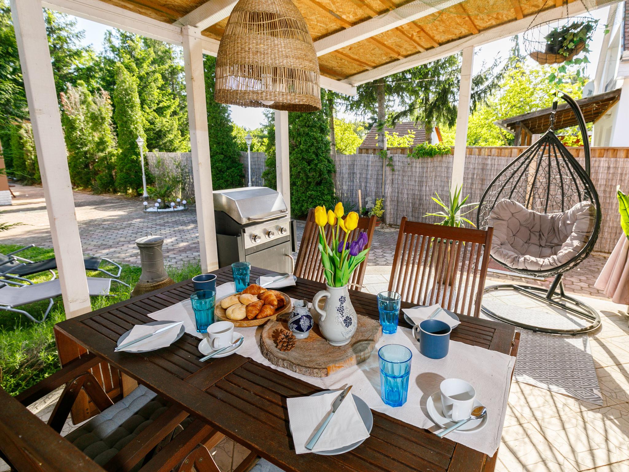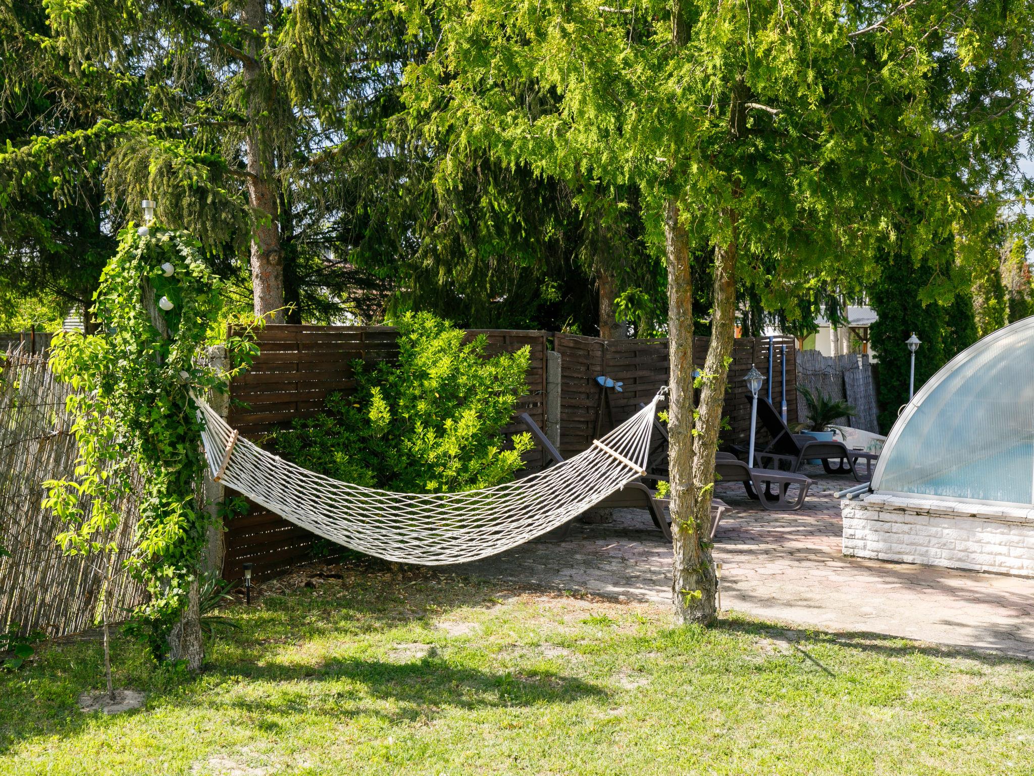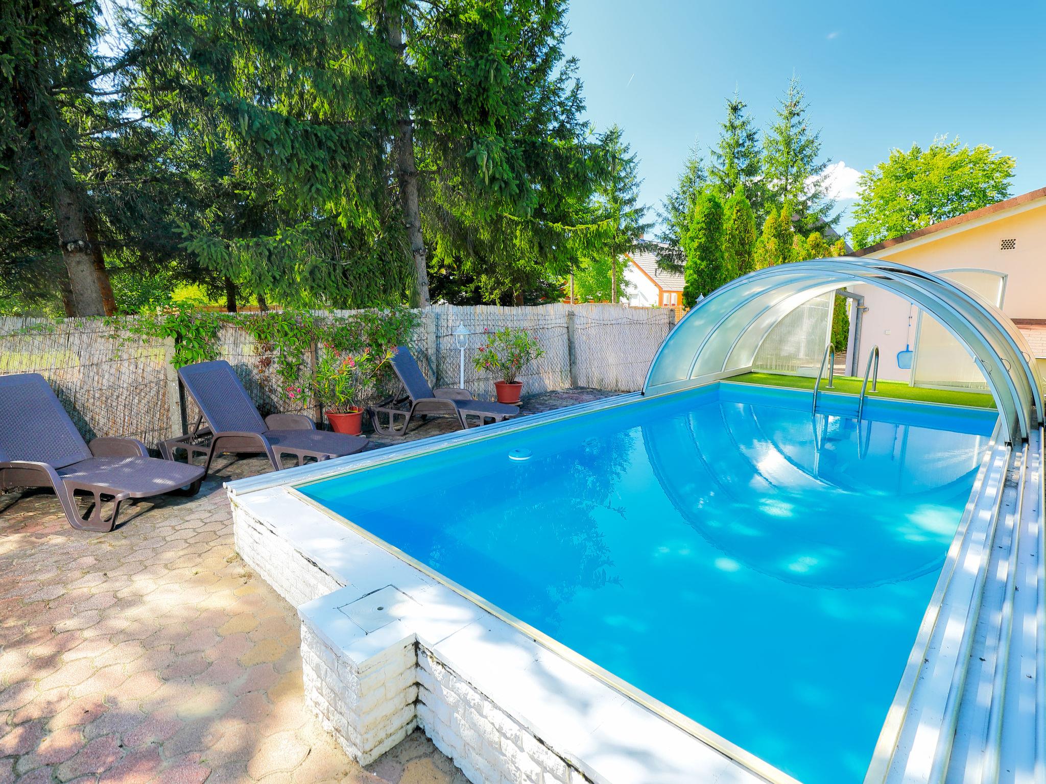 Balatonmária 23 km von Keszthely: Komfortables Haus "Chill". Sonnige Lage, 150 m vom See, 600 m vom Strand. Zur Alleinbenutzung: Garten 400 m2 (eingezäunt), Schwimmbad eckig (3 x 7 m, 160 cm tief, saisonale Verfügbarkeit: 01.Mai. und 15.Sep.) mit Innentreppe und Rollladenabdeckung. Im Hause: Wireless LAN, Klimaanlage. Parkplatz auf dem Grundstück. Lebensmittelgeschäft, Restaurant 200 m, Bäckerei 2 km, Bahnstation 300 m, Grasstrand 500 m, Freibad, Thermalbad "Hévíz" 25 km. Surfschule 6 km, Segelschule 6 km, Tennis 3 km, Reitstall 700 m, Radweg 100 m, Kinderspielplatz 2 km. Nahe gelegene Sehenswürdigkeiten: Kis-Balaton Visitor Centre 17 km, Kristinus Vineyard 11 km, Bobo Fun Park 28 km, Festetics Csstle 20 km, Hévíz Thermal Bath 24 km. Bitte beachten: Eisenbahnlinie in der Nähe.