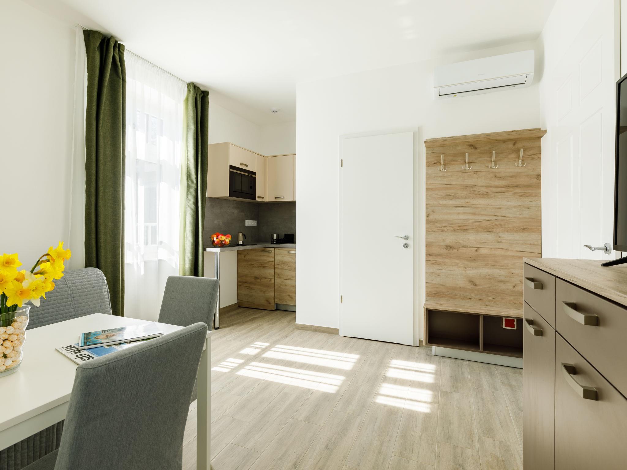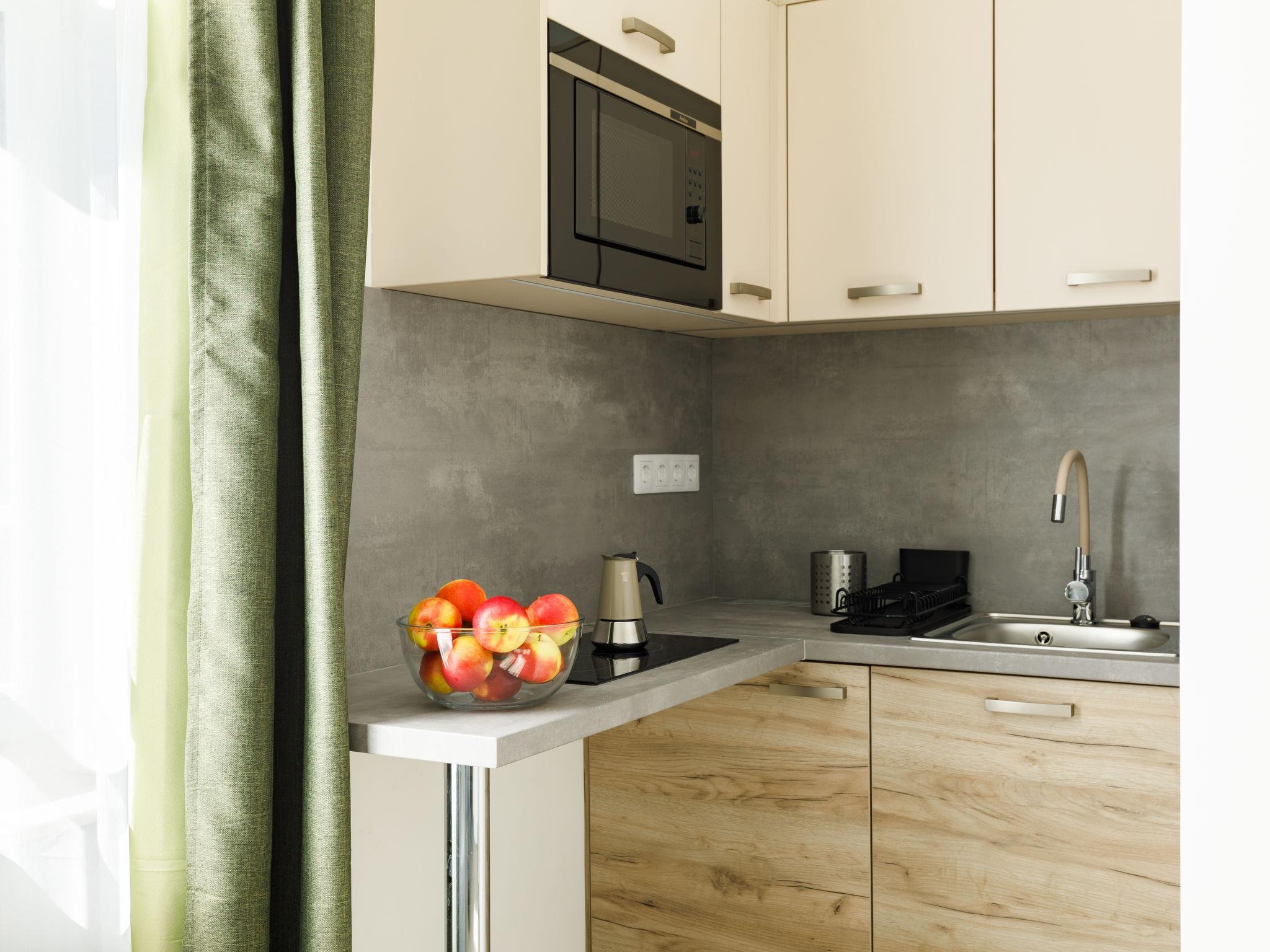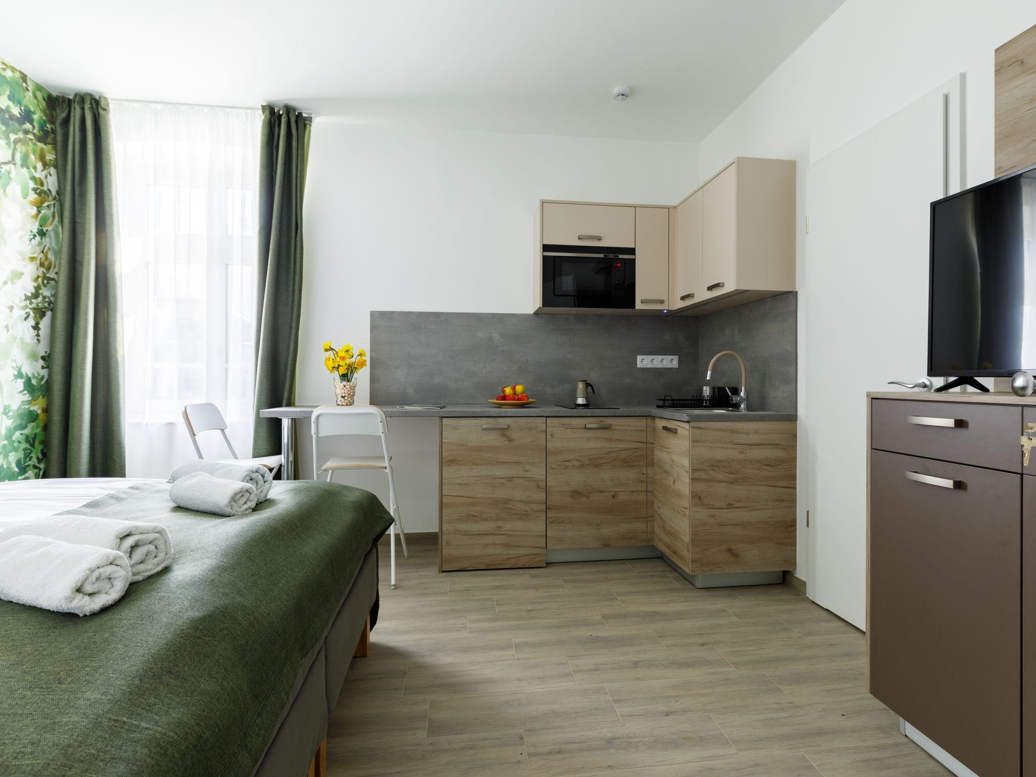 "Park Residence 19", 10-Zimmer-Villa auf 2 Stockwerken. Schön und modern eingerichtet: offenes Wohn-/Esszimmer, Fenster zum Hof mit 1 Diwanbett, Esstisch, Küchenblock, Dusche/WC und Kabel-TV (Flachbildschirm). 1 Doppelzimmer mit 1 franz. Bett (160 cm, Länge 200 cm). Studio, Fenster zum Hof mit 1 franz. Bett (160 cm, Länge 200 cm), Essecke, Küchenblock, Dusche/WC und Kabel-TV (Flachbildschirm). Offenes Wohn-/Esszimmer mit 1 Doppeldiwanbett, Esstisch, Küchenblock, Dusche/WC und Kabel-TV (Flachbildschirm). Ausgang zur Terrasse. 1 Doppelzimmer mit 1 franz. Bett (160 cm, Länge 200 cm). Billardzimmer mit Esstisch, Küchenblock, sep. WC und Kabel-TV (Flachbildschirm). Ausgang zur Terrasse. Kleine Kochnische (2 Kochplatten, Mikrowelle). Obergeschoss: offenes Wohn-/Esszimmer mit Esstisch, Küchenblock, Dusche/WC und Kabel-TV (Flachbildschirm). 1 Doppelzimmer mit 1 franz. Bett (160 cm, Länge 200 cm). Offenes Wohn-/Esszimmer mit Esstisch, Küchenblock, Dusche/WC und Kabel-TV (Flachbildschirm). 2 Doppelzimmer, jedes Zimmer mit 1 franz. Bett (160 cm, Länge 200 cm). Offene Küche (Mikrowelle, elektrische Kaffeemaschine). Klimaanlage, Bodenheizung. Solarstrom. Zur Verfügung: Kinderhochstuhl, Babybett (extra), Haartrockner. Alle fünf Wohnungen sind mit elektrischer Kaffeemaschine, Mikrowelle und Doppelkochplatten ausgestattet.