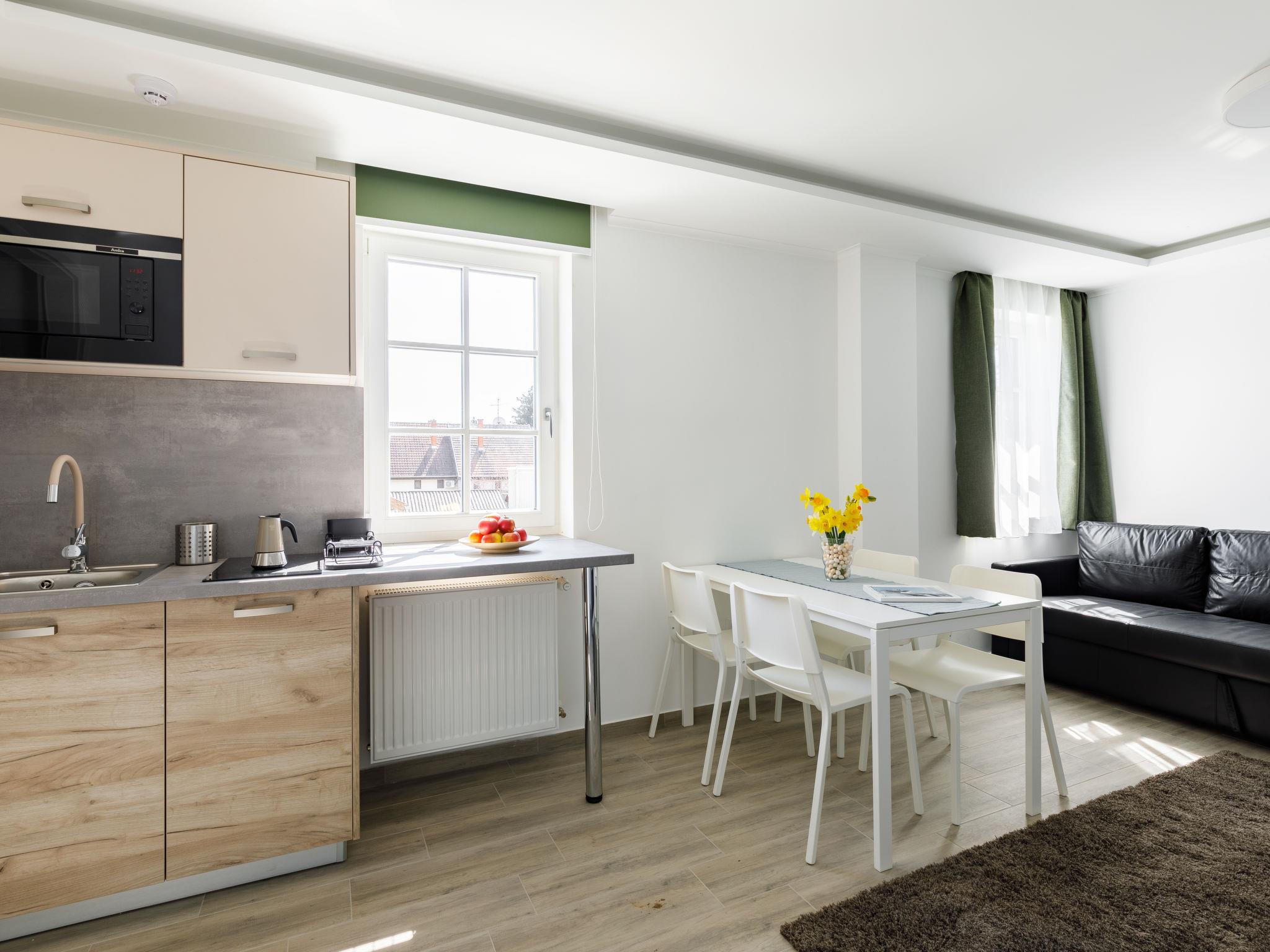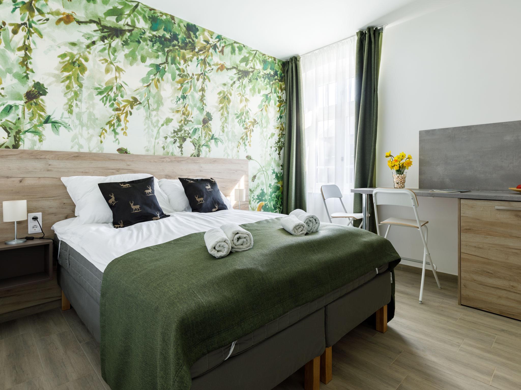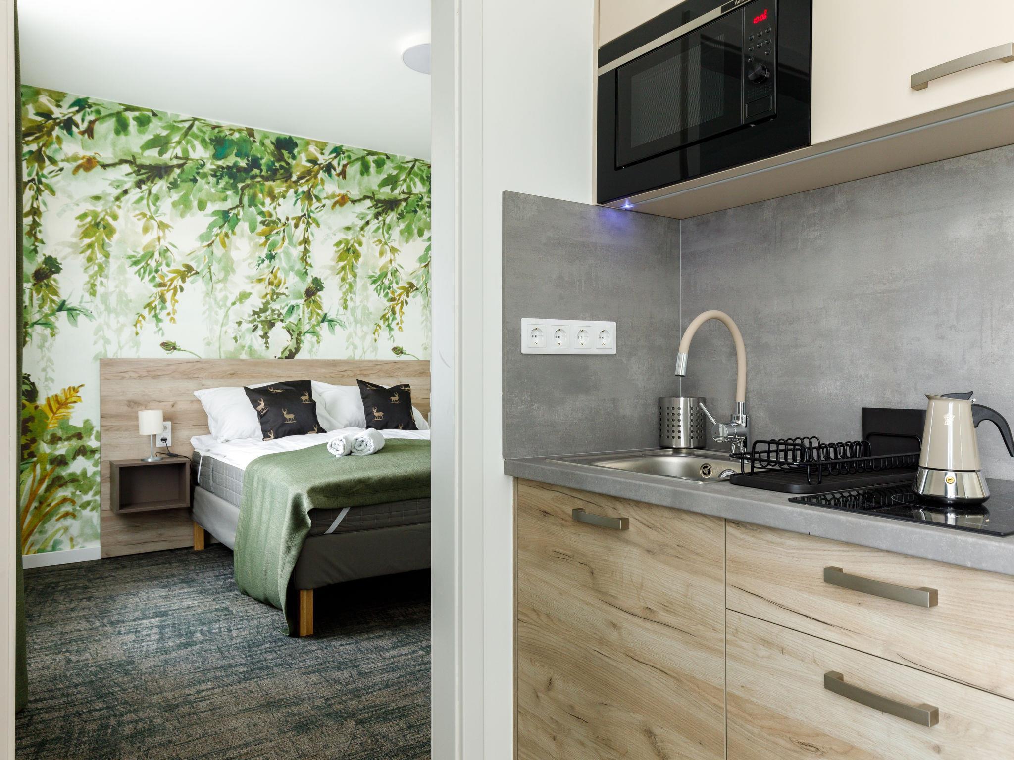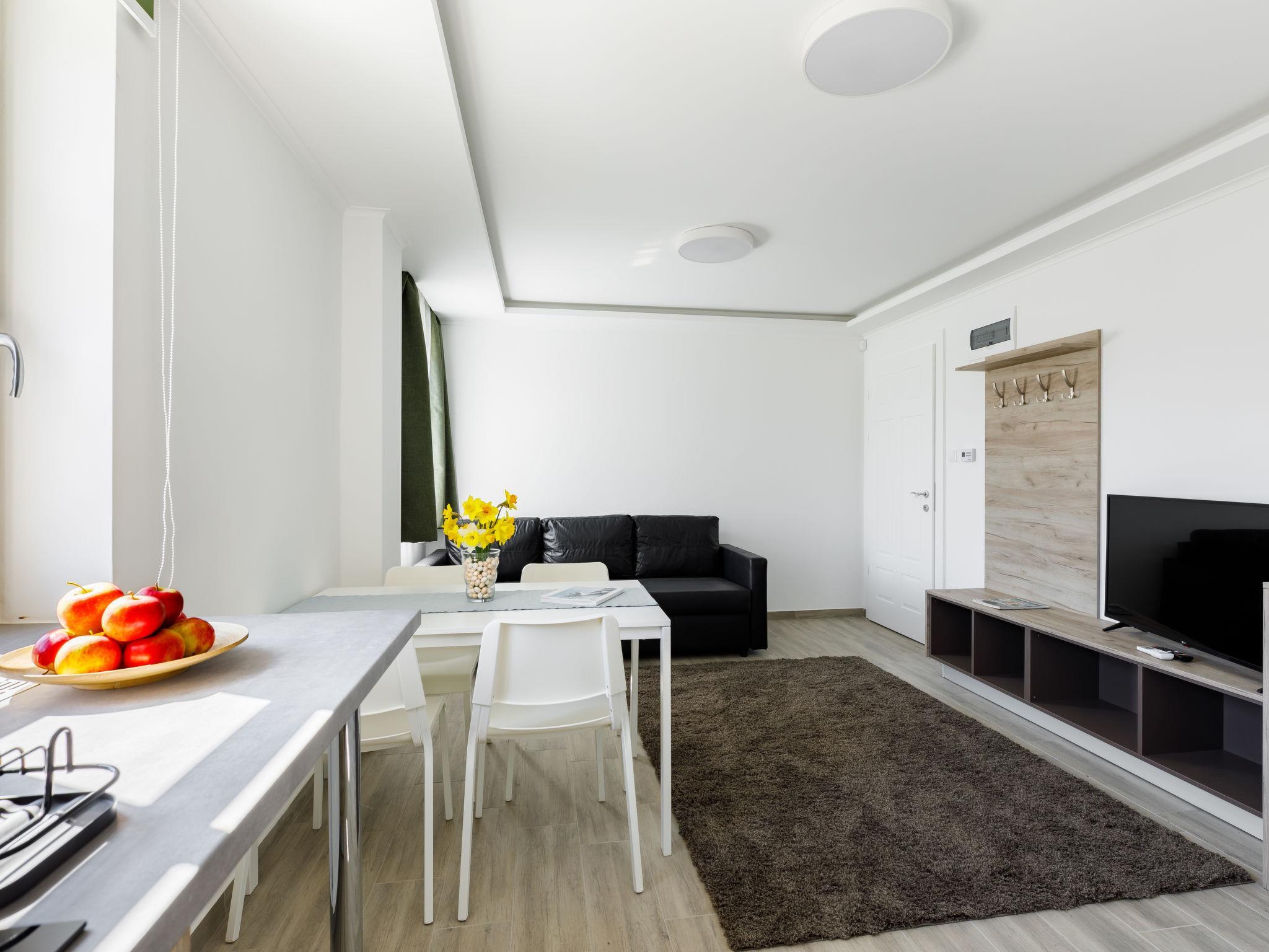 "Park Residence 19", 10-Zimmer-Villa auf 2 Stockwerken. Schön und modern eingerichtet: offenes Wohn-/Esszimmer, Fenster zum Hof mit 1 Diwanbett, Esstisch, Küchenblock, Dusche/WC und Kabel-TV (Flachbildschirm). 1 Doppelzimmer mit 1 franz. Bett (160 cm, Länge 200 cm). Studio, Fenster zum Hof mit 1 franz. Bett (160 cm, Länge 200 cm), Essecke, Küchenblock, Dusche/WC und Kabel-TV (Flachbildschirm). Offenes Wohn-/Esszimmer mit 1 Doppeldiwanbett, Esstisch, Küchenblock, Dusche/WC und Kabel-TV (Flachbildschirm). Ausgang zur Terrasse. 1 Doppelzimmer mit 1 franz. Bett (160 cm, Länge 200 cm). Billardzimmer mit Esstisch, Küchenblock, sep. WC und Kabel-TV (Flachbildschirm). Ausgang zur Terrasse. Kleine Kochnische (2 Kochplatten, Mikrowelle). Obergeschoss: offenes Wohn-/Esszimmer mit Esstisch, Küchenblock, Dusche/WC und Kabel-TV (Flachbildschirm). 1 Doppelzimmer mit 1 franz. Bett (160 cm, Länge 200 cm). Offenes Wohn-/Esszimmer mit Esstisch, Küchenblock, Dusche/WC und Kabel-TV (Flachbildschirm). 2 Doppelzimmer, jedes Zimmer mit 1 franz. Bett (160 cm, Länge 200 cm). Offene Küche (Mikrowelle, elektrische Kaffeemaschine). Klimaanlage, Bodenheizung. Solarstrom. Zur Verfügung: Kinderhochstuhl, Babybett (extra), Haartrockner. Alle fünf Wohnungen sind mit elektrischer Kaffeemaschine, Mikrowelle und Doppelkochplatten ausgestattet.
