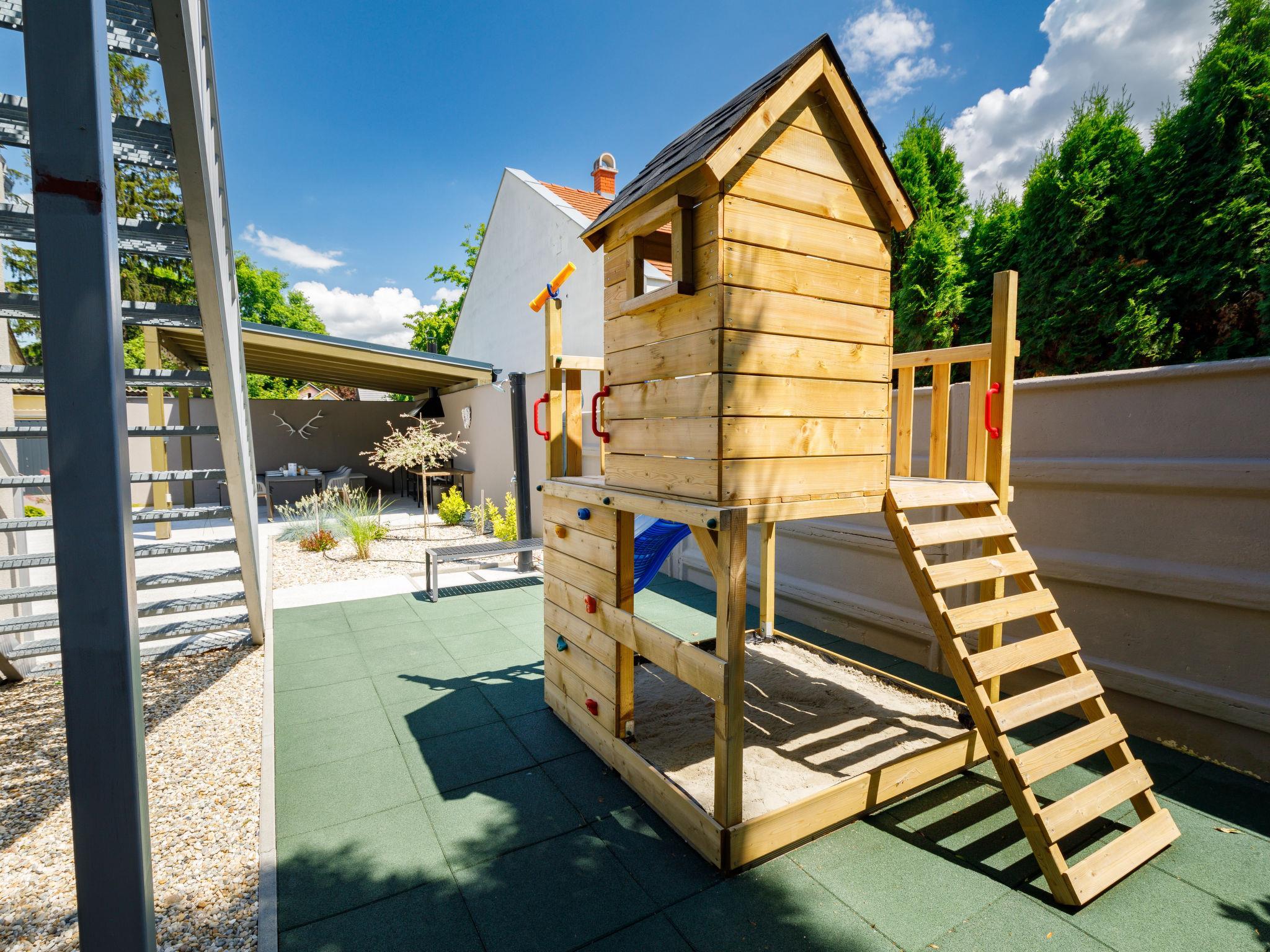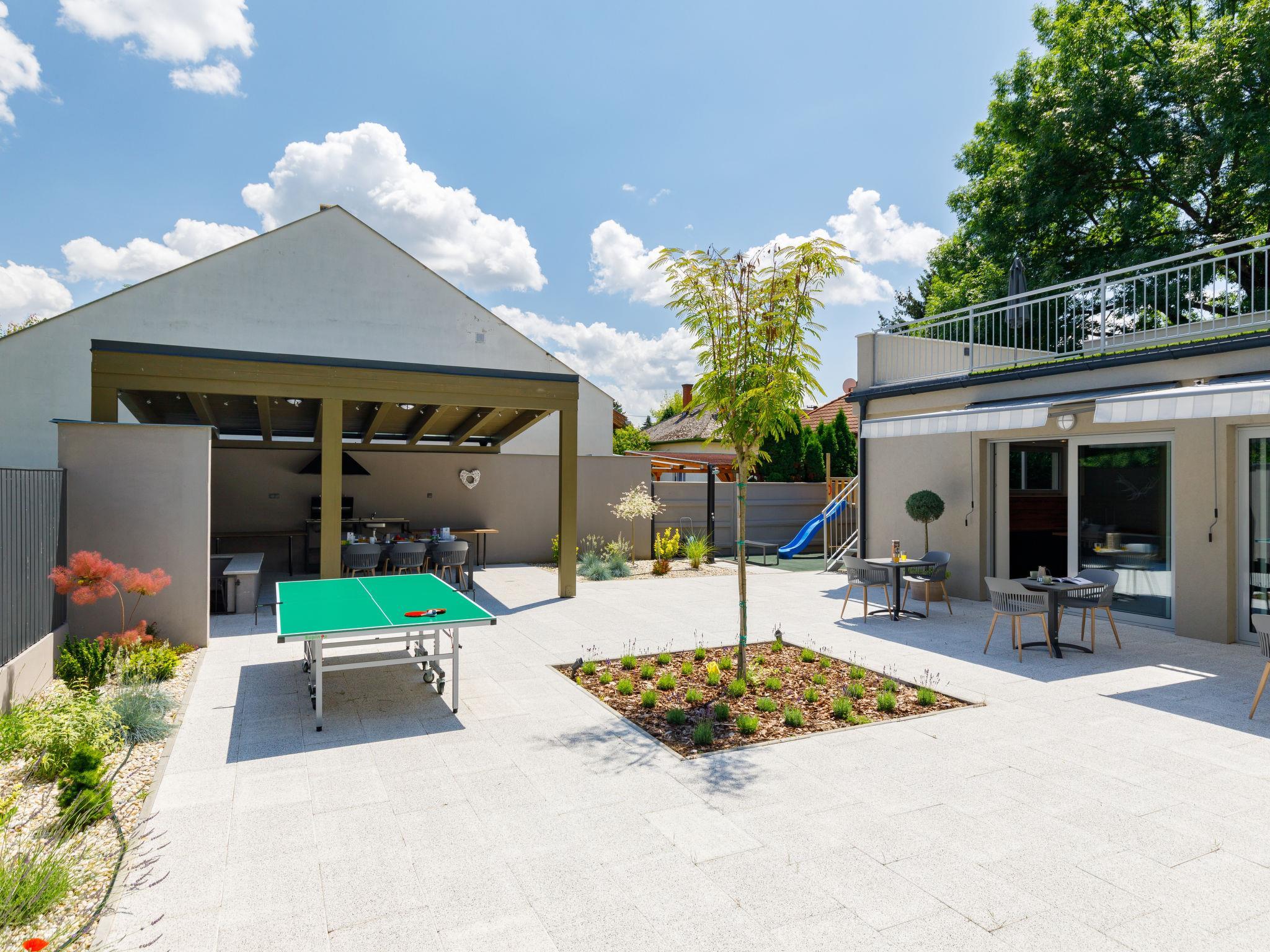 Balatonszárszó 5 km von Balatonföldvár: Grosses, modernes, schönes Mehrfamilienhaus, Baujahr 2023. 5 Wohnungen in der Residenz. Exzellente Lage: Absolut zentral und dennoch ruhig, 290 m vom See, 350 m vom Strand. Zur Alleinbenutzung: Grundstück (eingezäunt). Aussendusche, Sprudelbad, Tischtennis, Pergola, Gartenmöbel, Grill, Kinderspielplatz (Rutschbahn, Sandkasten). Im Hause: Wireless LAN, Tischtennis, Billard, Tischfussball, Sonnenterrasse, Zentralheizung, Klimaanlage, Waschmaschine, Wäschetrockner. Frühstück auf Anfrage (extra). Parkplatz beim Haus. Lebensmittelgeschäft 90 m, Supermarkt 7 km, Restaurant, Café 140 m, Fahrradverleih 150 m, Bushaltestelle 850 m, Bahnstation 200 m, Park 200 m, Thermalbad "Csiszta" 36 km. Surfschule 4 km, Segelschule 1 km, Tennis 500 m, Reitstall 9 km, Kinderspielplatz 600 m. Nahe gelegene Sehenswürdigkeiten: Siófok Bella Zoo 24 km, Tihany 12 km, Siófok Theme Pak 24 km, Festetics Castle 57 km, Hévíz 61 m.