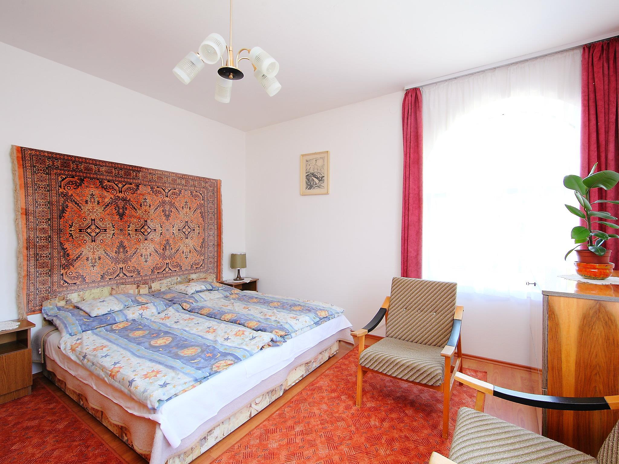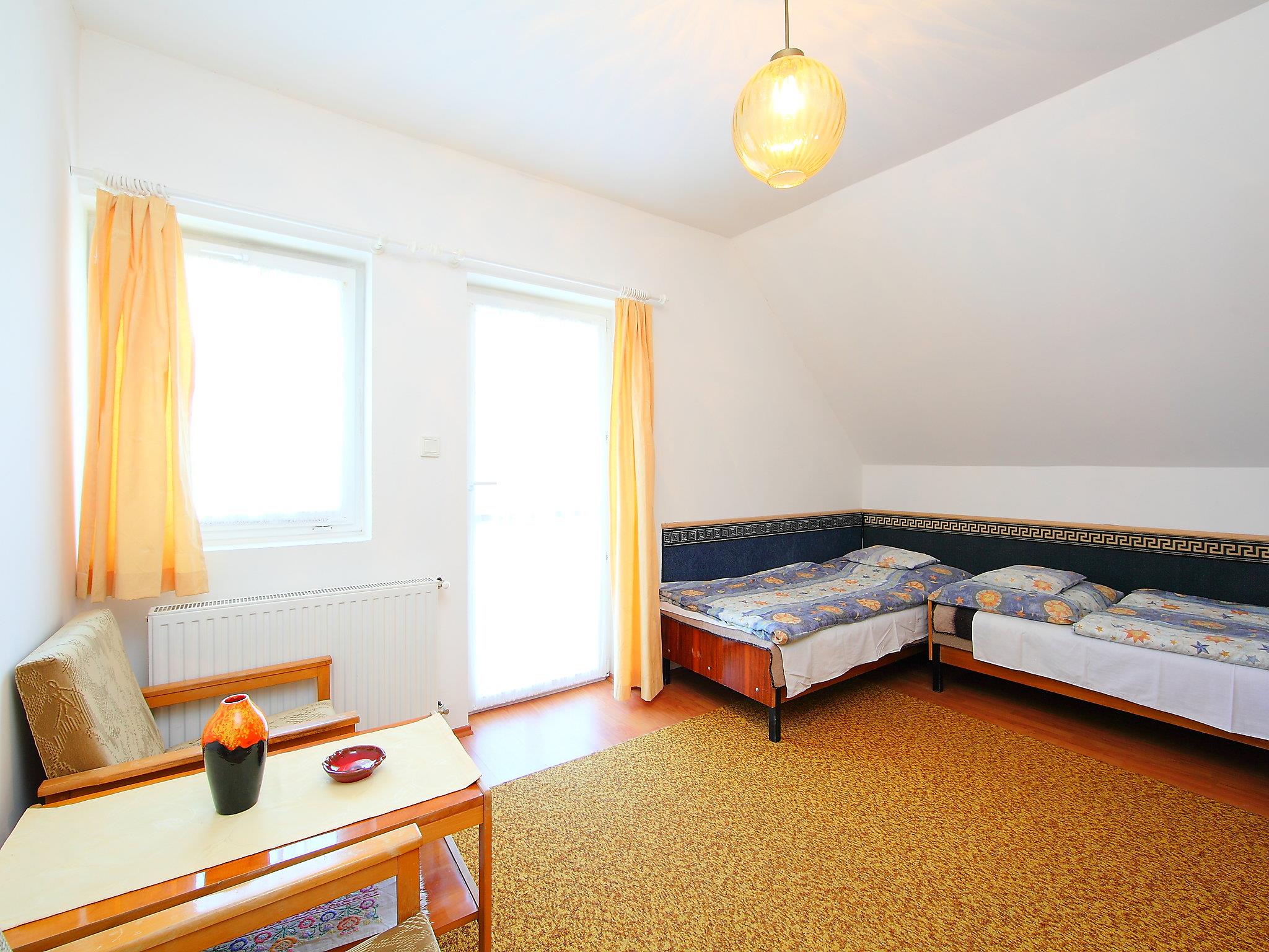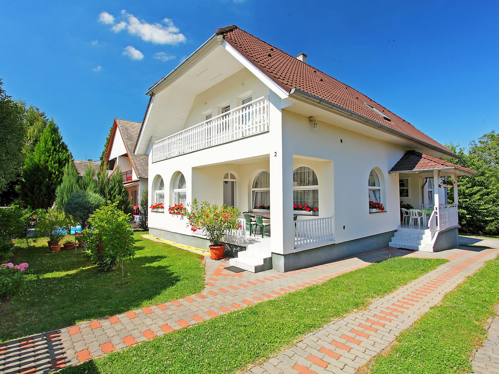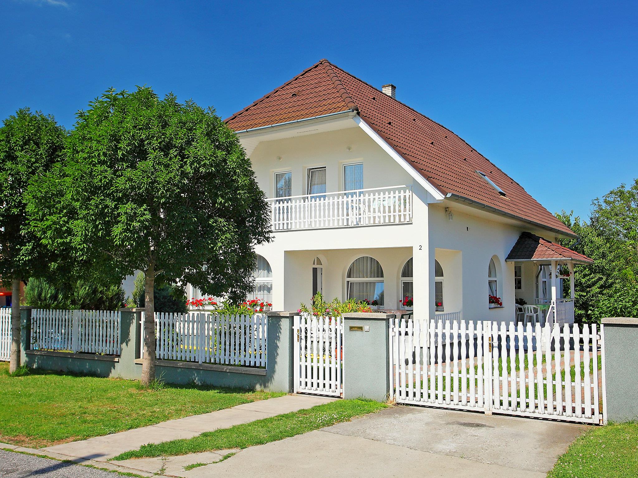 Balatonszárszó 20 km von Siófok: Grosses, gemütliches Haus "Goliath", auf 2 Stockwerken. Ruhige, sonnige Lage, 500 m vom See, 1 km vom Strand. Zur Mitbenutzung: Feuerstelle. Zur Alleinbenutzung: Grundstück 500 m2 (eingezäunt). Im Hause: Wireless LAN, Klimaanlage. Lebensmittelgeschäft, Restaurant 500 m, Sandstrand 800 m, Grasstrand 500 m. Kinderspielplatz 500 m. Bitte beachten: Babyausstattung auf Anfrage (inkl.). Der Besitzer akzeptiert keine Jugendgruppen. Der Besitzer wohnt auf dem gleichen Grundstück.