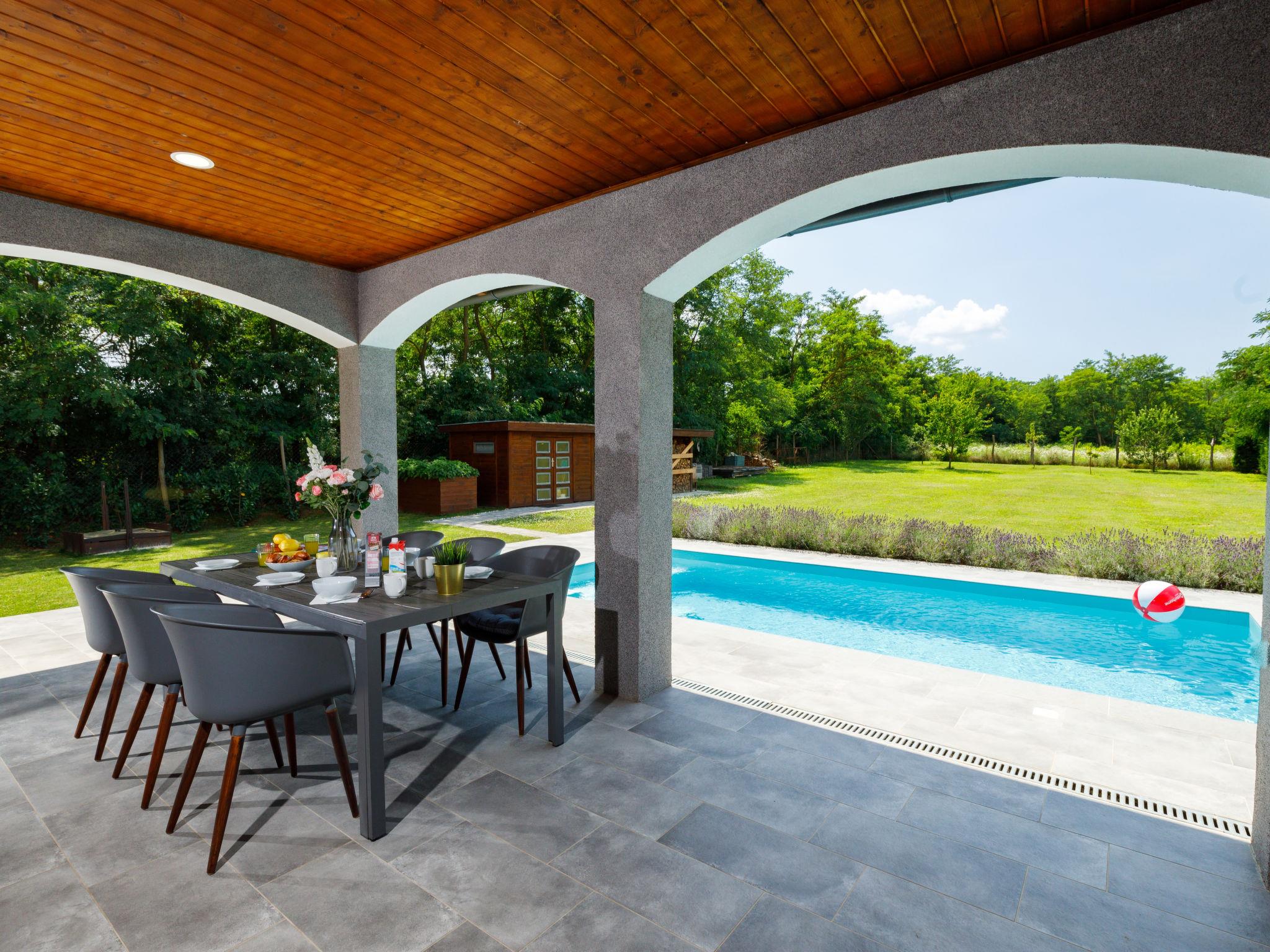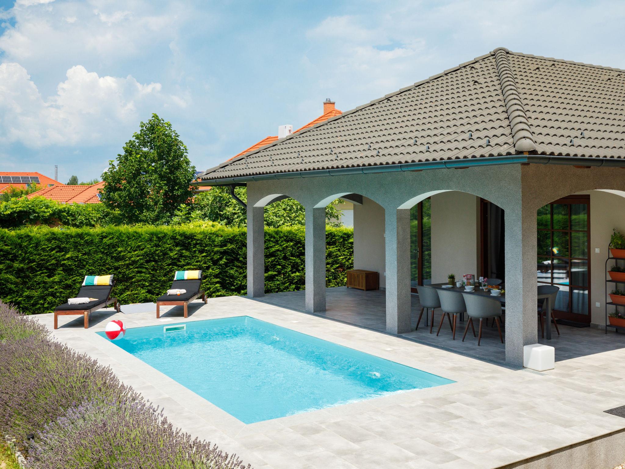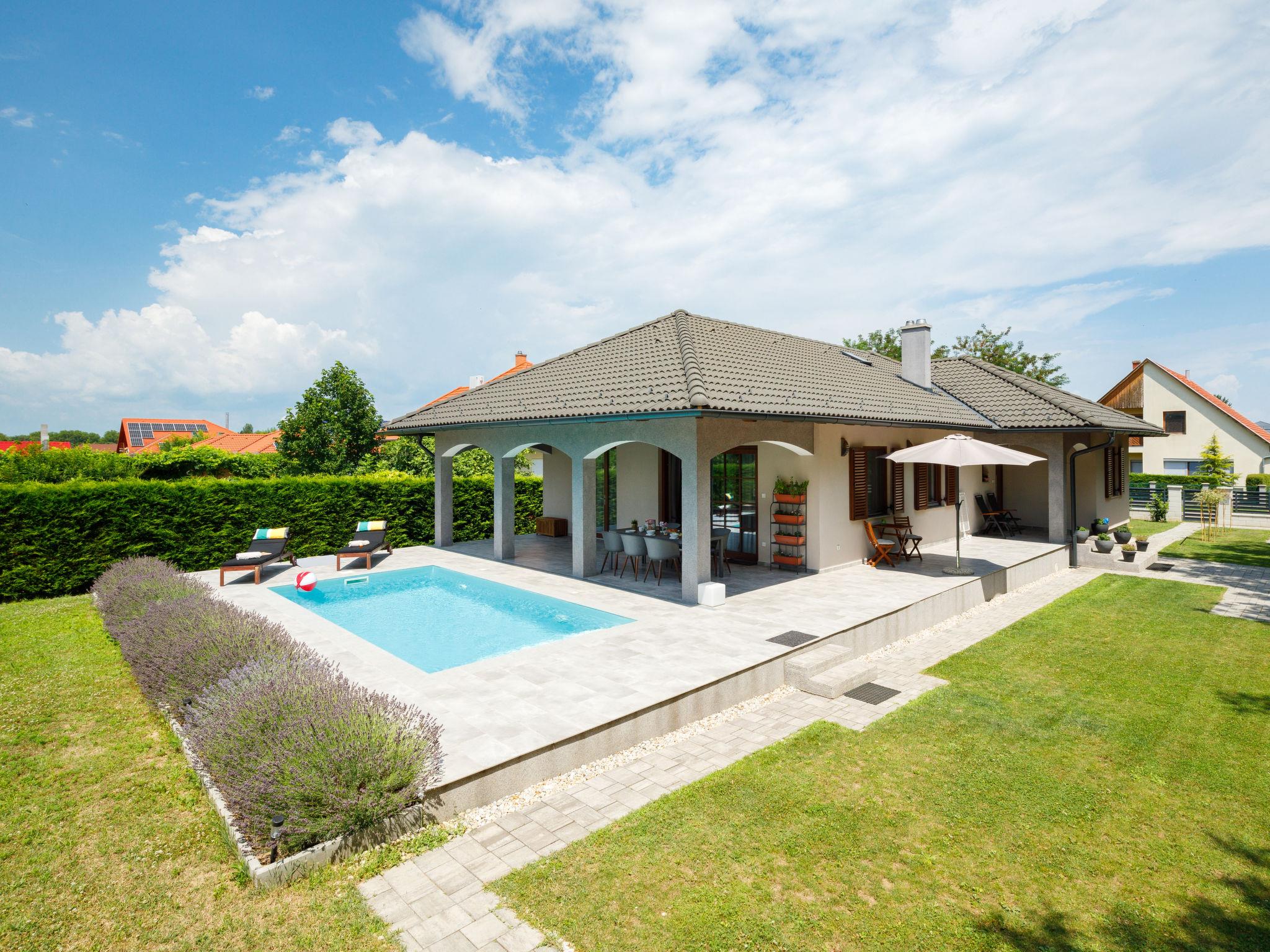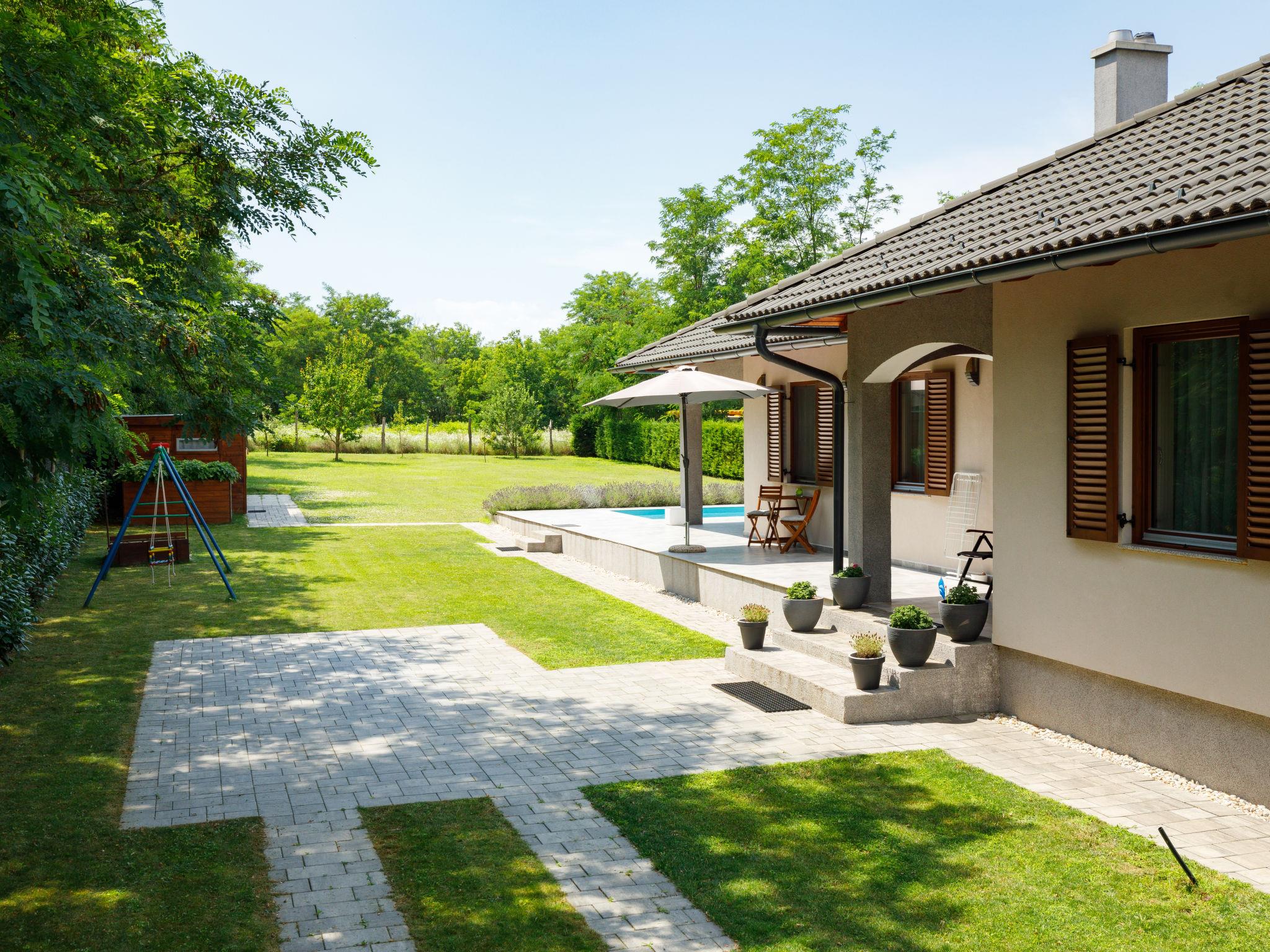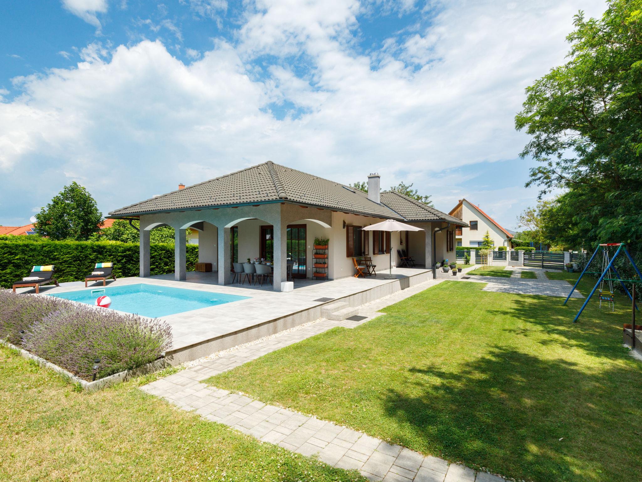 Balatonszemes 13 km von Balatonboglár: Villa "Aschbacher", Baujahr 2018. Am Ortsrand, 800 m vom Zentrum, ruhige, sonnige Lage, 900 m vom See, 1 km vom Strand. Zur Alleinbenutzung: Garten 1'000 m2 (eingezäunt), Liegewiese, Schwimmbad eckig (6 x 3 m, 130 cm tief, saisonale Verfügbarkeit: 30.Mai. - 15.Sep.). Grill (Schaukel, Sandkasten). Im Hause: Wireless LAN, Klimaanlage, Waschmaschine. Lebensmittelgeschäft 200 m, Supermarkt 6 km, Restaurant 600 m, Bäckerei 1 km, Fahrradverleih 5 km, Bahnstation 1.8 km, Grasstrand, Thermalbad "Igal" 41 km. Surfschule 2 km, Tennis 9 km, Reitstall 10 km, Radweg 1 km, Kinderspielplatz 150 m, Angelmöglichkeit 9 km. Nahe gelegene Sehenswürdigkeiten: Bella Zoo Siófok 43 km, Kereki Dinosaur Park 23 km, Siófok Aquapark 37 km, Festetics Castle 57 km, Hévíz Thermal Bath 62 km, Ferry Szántód 15 km.