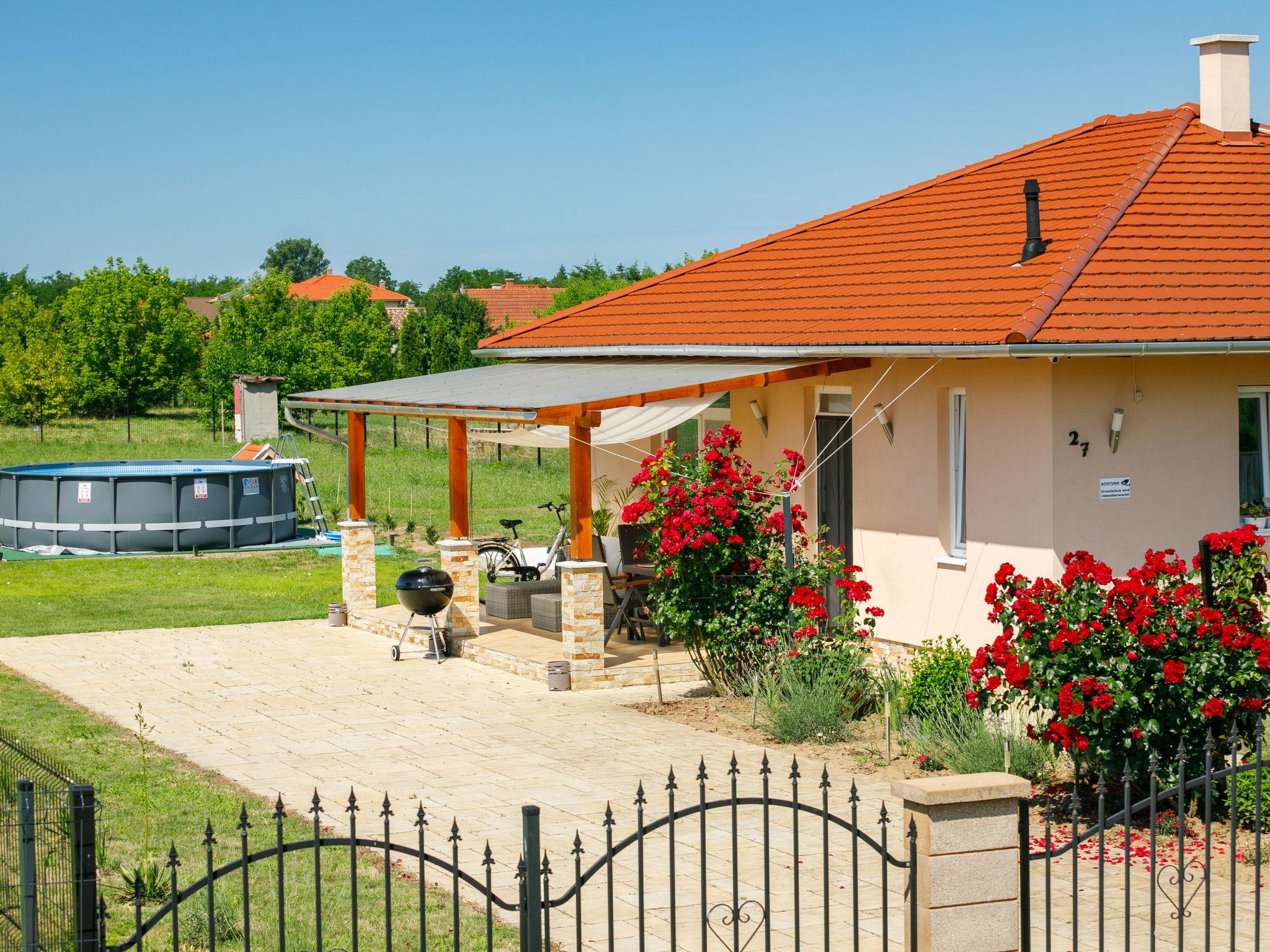 Balatonszemes 10 km von Balatonboglár: Modernes, gemütliches Einfamilienhaus "Paola", Baujahr 2017. Ruhige Lage, 500 m vom See, 1 km vom Strand. Zur Alleinbenutzung: Grundstück (eingezäunt), Garten, Aufstellpool rund (5 x 120 cm tief, saisonale Verfügbarkeit: 15.Mai. und 15.Sep.). Im Hause: Wireless LAN. Einkaufsgeschäft 20 m, Restaurant, Grasstrand 500 m. Kinderspielplatz 50 m.