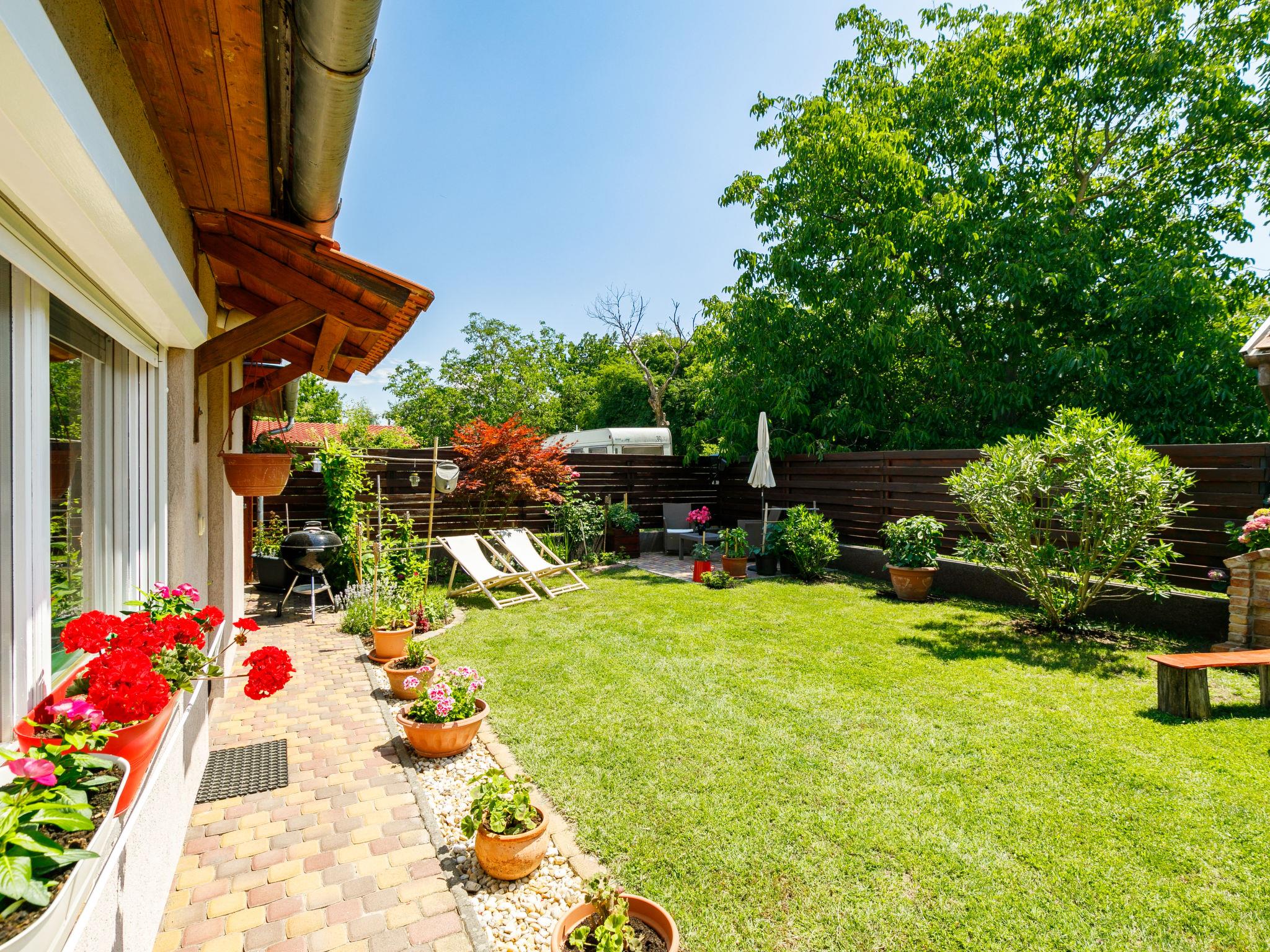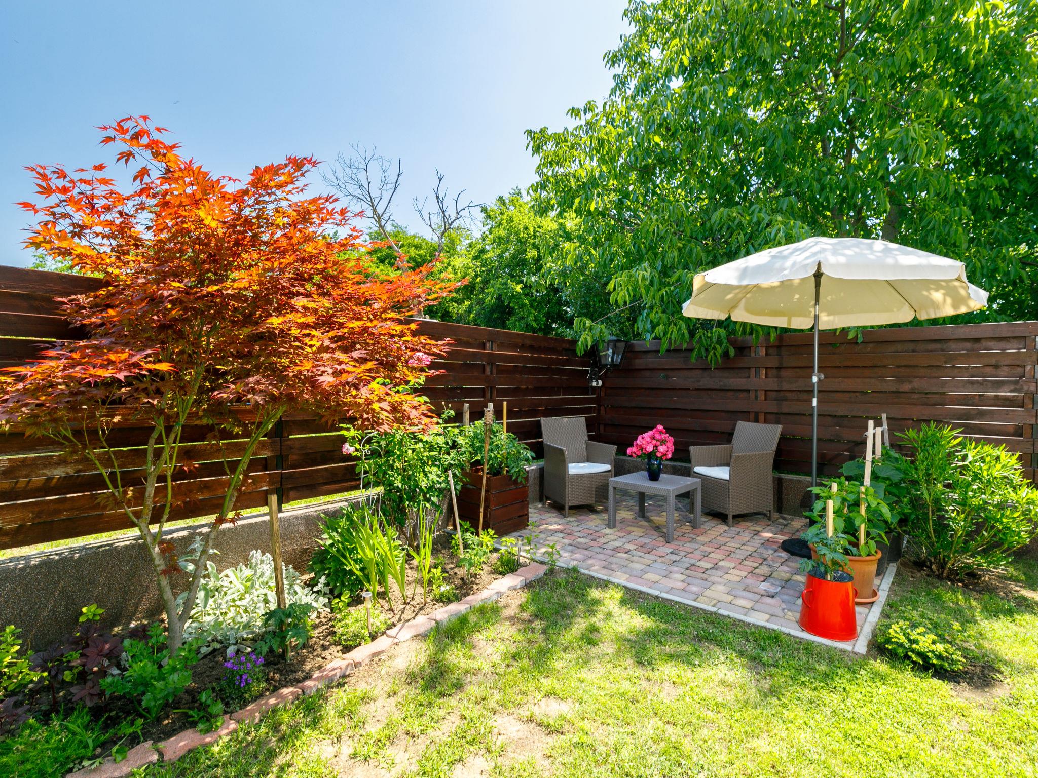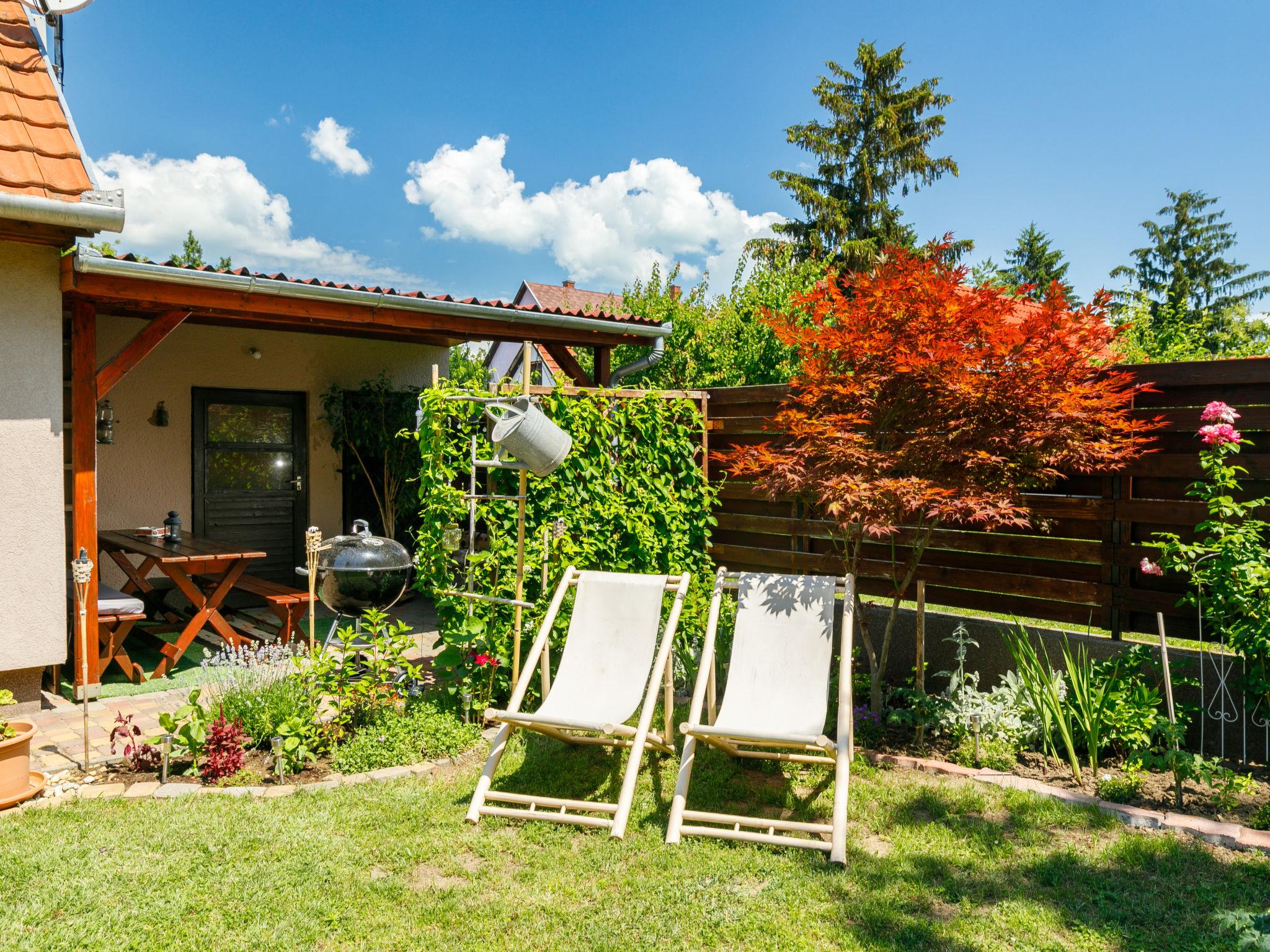 Balatonszemes 6 km von Balatonlelle: Kleines, gemütliches Haus "Duetto", auf 2 Stockwerken. Im Ort, 850 m vom See, 1.8 km vom Strand. Zur Mitbenutzung: Garten 300 m2 (eingezäunt), Liegewiese. Zur Alleinbenutzung: wunderschöner Garten zum Entspannen. Im Hause: Wireless LAN, Klimaanlage. Zur Verfügung: Fahrräder (2). Parkplatz beim Haus. Lebensmittelgeschäft 350 m, Restaurant 1 km, Café 1.4 km, Fahrradverleih 4 km, Grasstrand 1 km, Thermalbad "Igal" 40 km. Jacht-Hafen 1.4 km, Tennis 2 km, Radweg 1 km, Kinderspielplatz 400 m. Nahe gelegene Sehenswürdigkeiten: Kereki Dino Park 23 km, Balatonboglár Adventure beach 11 km, Giant Wheel Balatonlelle 7 km, Zamárdi Adventure Park 30 km, Hévíz Thermal Bath 62 km, Bella Zoo Siófok 43 km. Bitte beachten: Der Besitzer wohnt auf dem gleichen Grundstück.