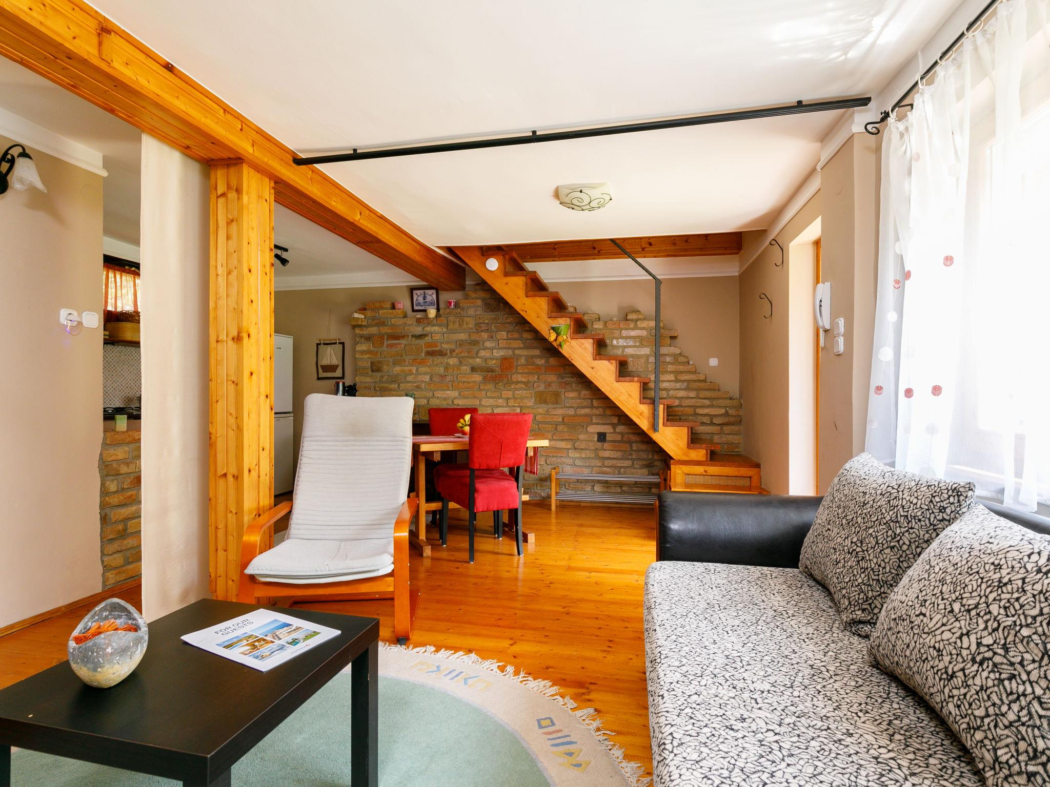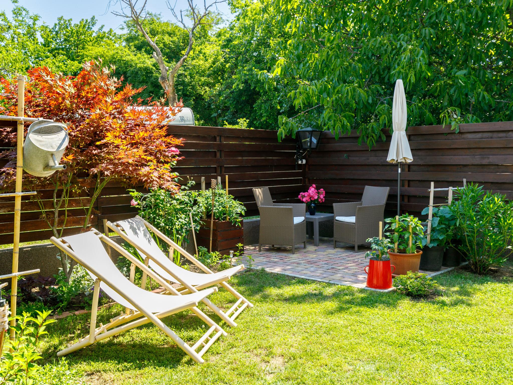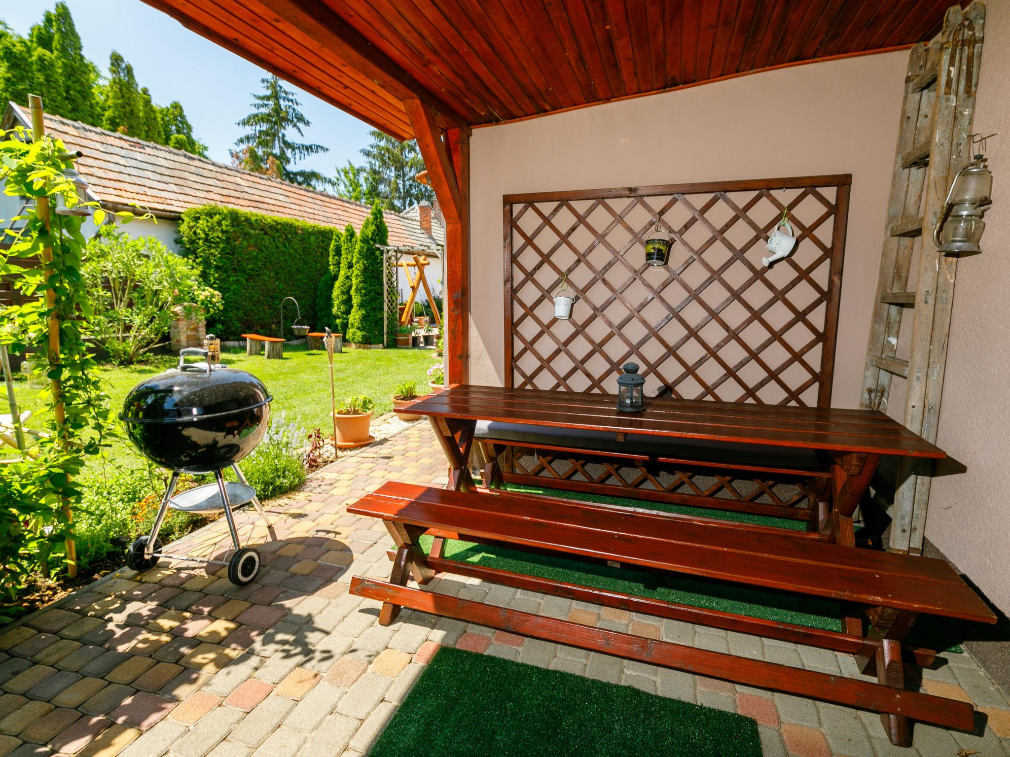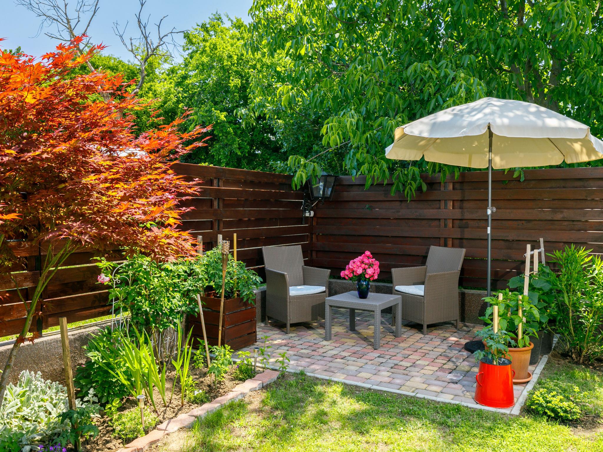 Balatonszemes 6 km von Balatonlelle: Kleines, gemütliches Haus "Duetto", auf 2 Stockwerken. Im Ort, 850 m vom See, 1.8 km vom Strand. Zur Mitbenutzung: Garten 300 m2 (eingezäunt), Liegewiese. Zur Alleinbenutzung: wunderschöner Garten zum Entspannen. Im Hause: Wireless LAN, Klimaanlage. Zur Verfügung: Fahrräder (2). Parkplatz beim Haus. Lebensmittelgeschäft 350 m, Restaurant 1 km, Café 1.4 km, Fahrradverleih 4 km, Grasstrand 1 km, Thermalbad "Igal" 40 km. Jacht-Hafen 1.4 km, Tennis 2 km, Radweg 1 km, Kinderspielplatz 400 m. Nahe gelegene Sehenswürdigkeiten: Kereki Dino Park 23 km, Balatonboglár Adventure beach 11 km, Giant Wheel Balatonlelle 7 km, Zamárdi Adventure Park 30 km, Hévíz Thermal Bath 62 km, Bella Zoo Siófok 43 km. Bitte beachten: Der Besitzer wohnt auf dem gleichen Grundstück.