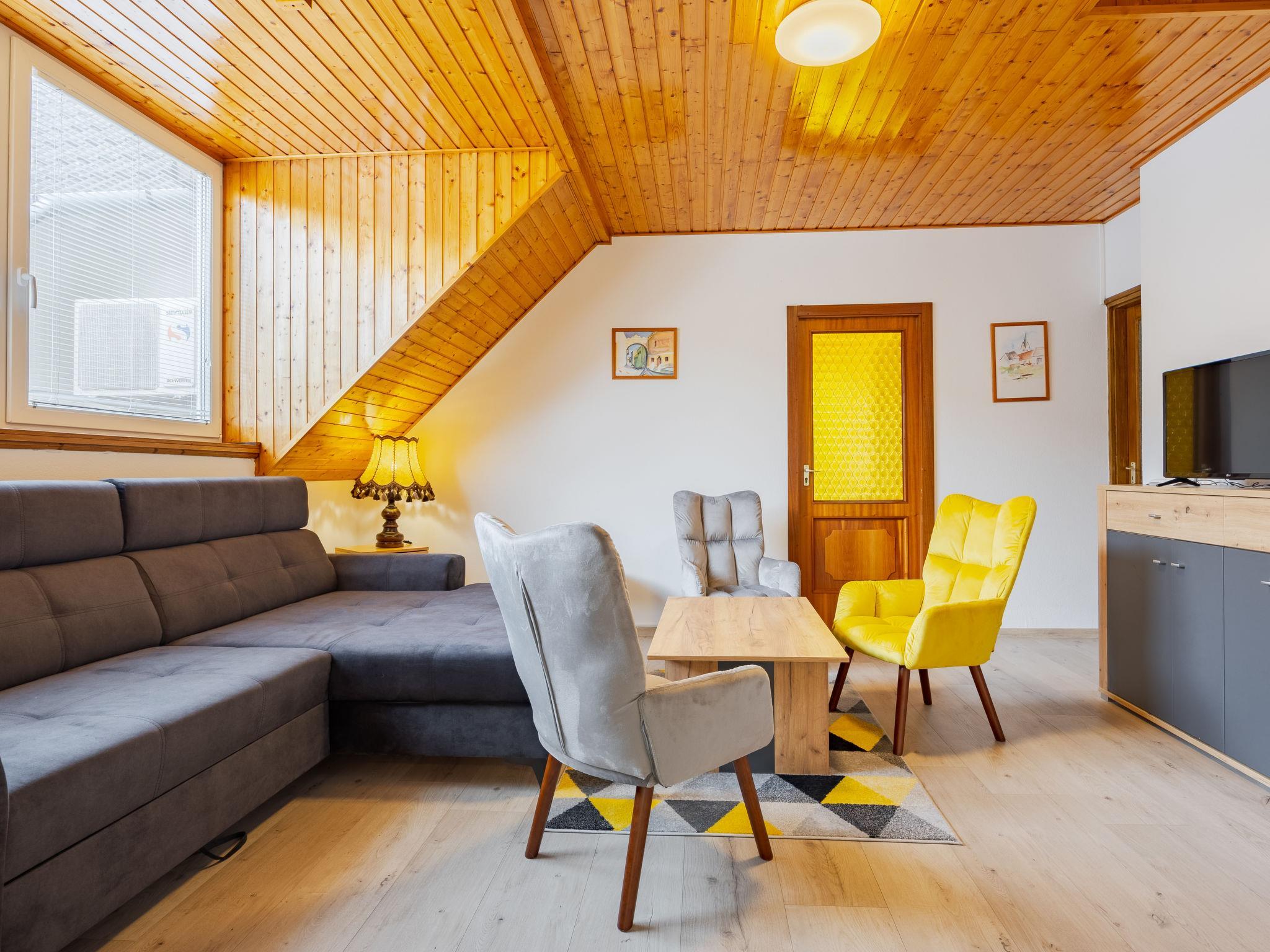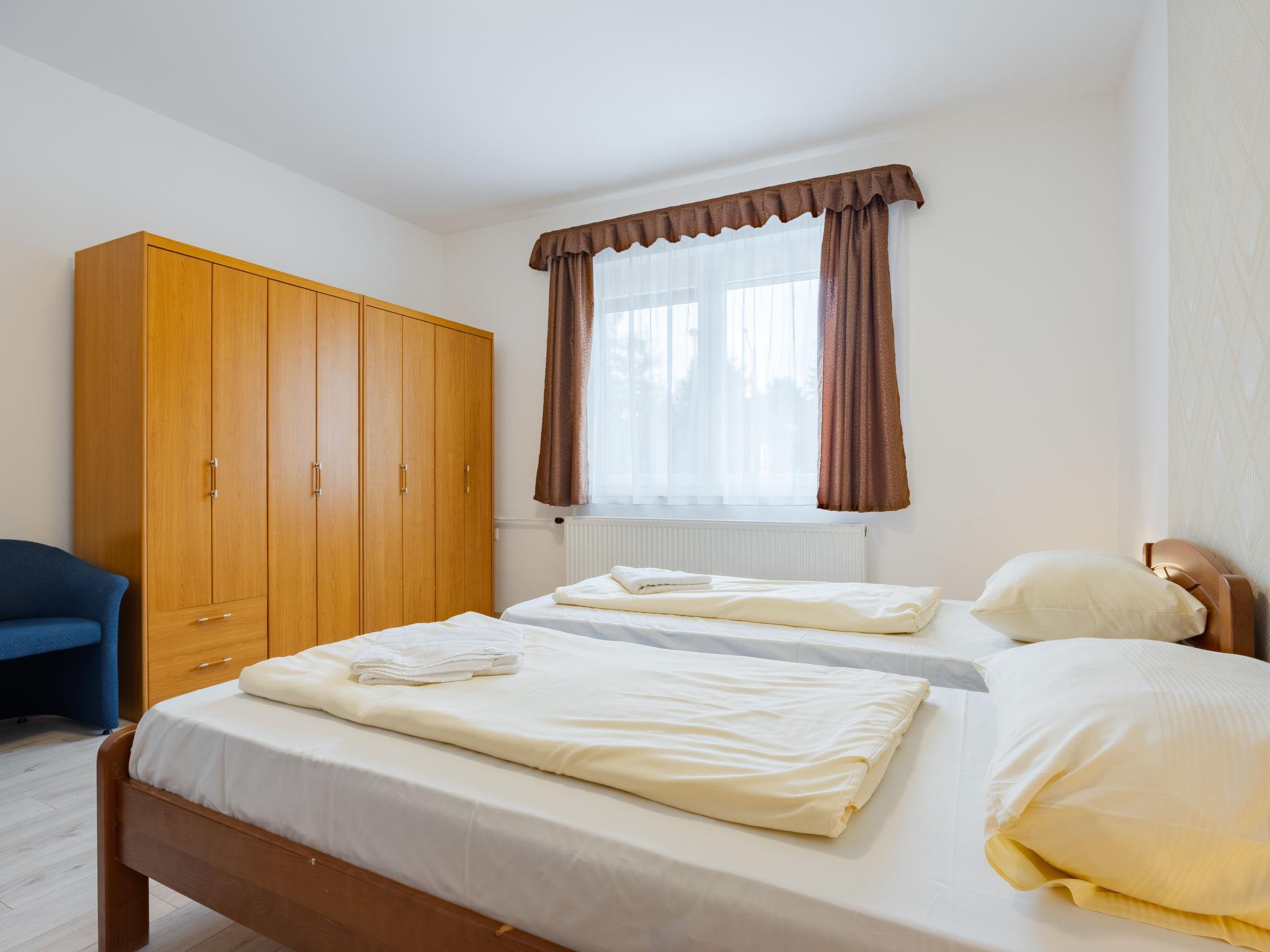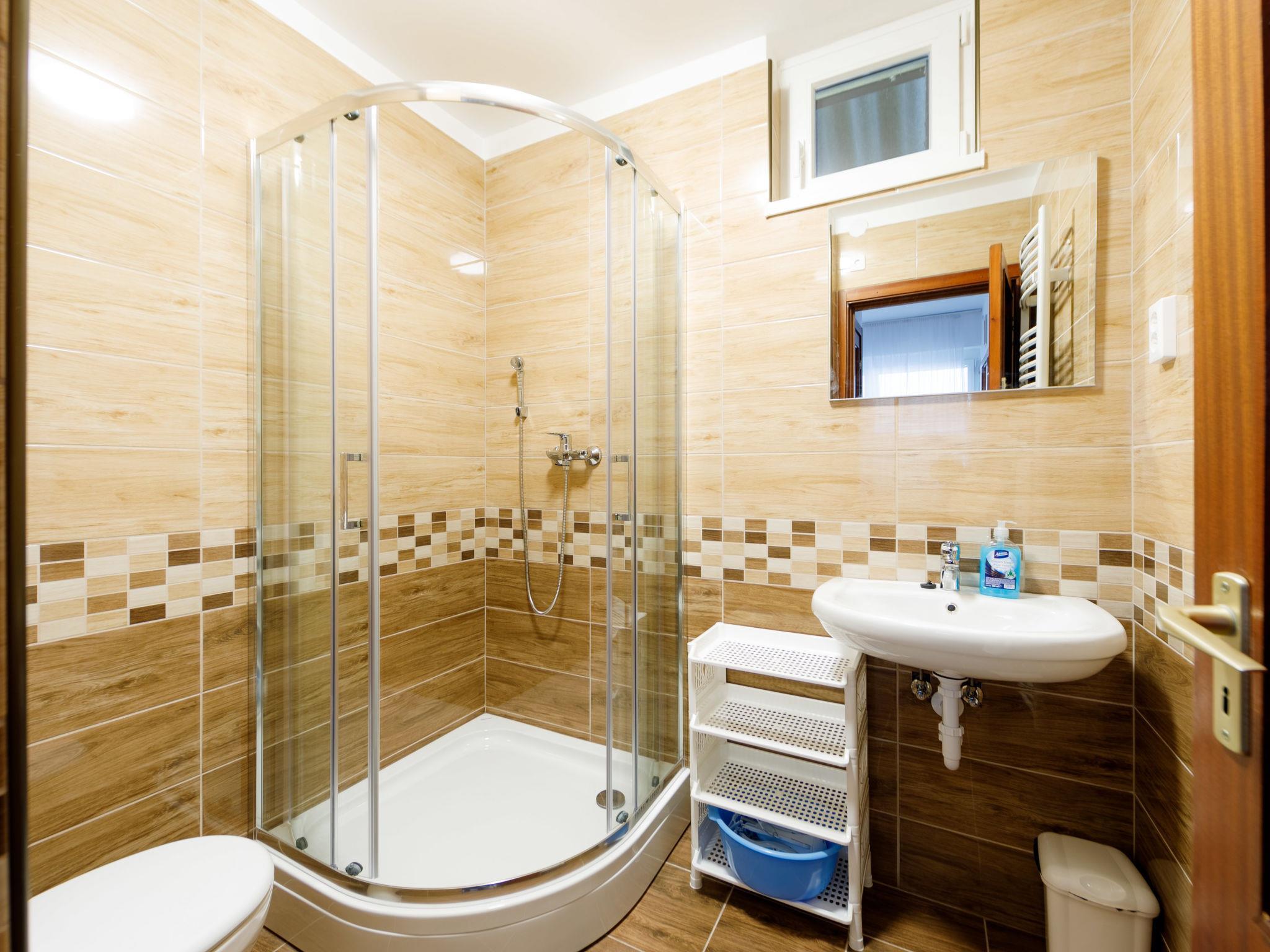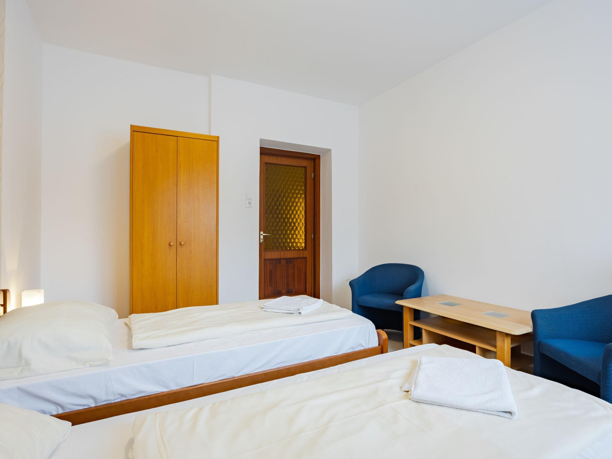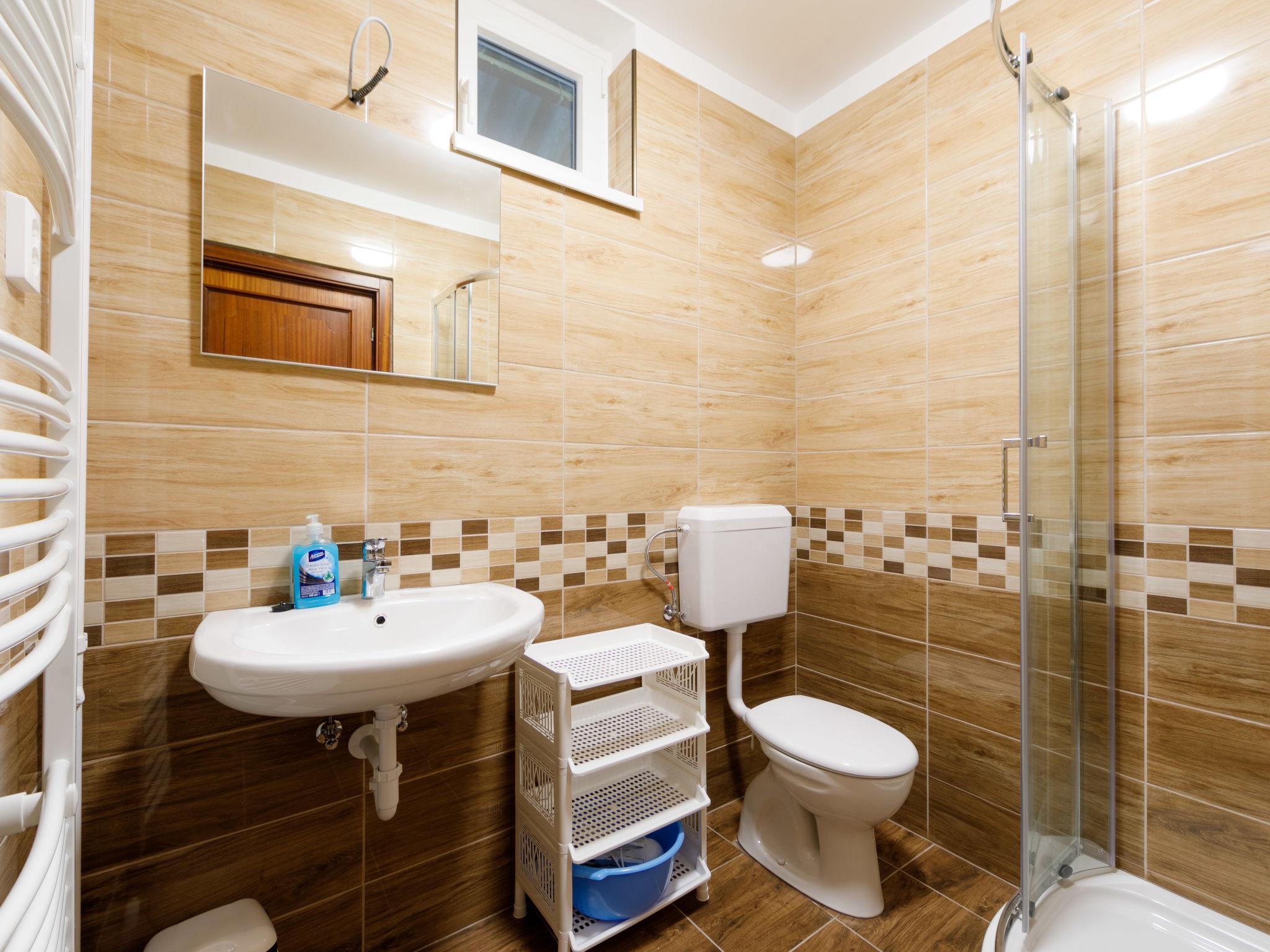 "Moni 1", 7-Zimmer-Wohnung 200 m2. Geräumig, komfortabel eingerichtet: Eingang mit Sat-TV. Ausgang zur Terrasse. 3 Zimmer, jedes Zimmer mit 2 Betten (90 cm, Länge 200 cm). Offene Küche (4 Kochplatten, Backofen, Geschirrspüler, Toaster, Wasserkocher, Mikrowelle, Tiefkühler, elektrische Kaffeemaschine). 2 Duschen/WC. Heizung, G-Heizung (extra), Klimaanlage. Obergeschoss: Eingang. Ausgang zum Balkon. Wohnzimmer mit Sat-TV und Klimaanlage. 3 Zimmer, jedes Zimmer mit 3 Betten und Klimaanlage. Offene Küche (3 Kochplatten, Backofen, Geschirrspüler, Toaster, Wasserkocher, Mikrowelle, Tiefkühler, elektrische Kaffeemaschine). Ausgang zum Balkon. Dusche/WC, sep. WC. Terrassenmöbel, Balkonmöbel, Gartengrill (mobil), Liegestühle (10). Zur Verfügung: Kinderhochstuhl, Babybett (extra). Parkplatz (eingezäunt, 4 Autos). Maximal 1 Haustier/Hund erlaubt. Bitte beachten Sie: Im Gebäude auf der Straßenseite befindet sich ein Lebensmittelladen. MA19022039