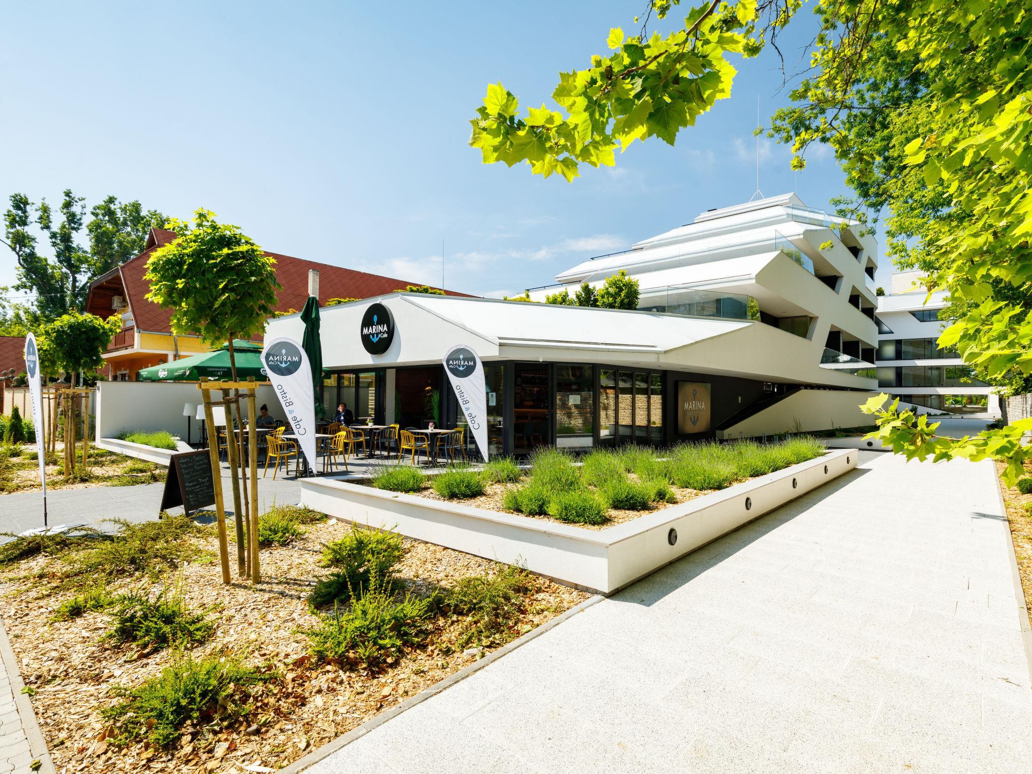 Balatonszemes 7 km von Balatonlelle: Modernes, schönes Appartementhaus, Baujahr 2020. Im Ort, zentrale Lage, 100 m vom See, 350 m vom Strand. Zur Mitbenutzung: Schwimmbad eckig beheizt (8 x 20 m, saisonale Verfügbarkeit: 15.Mai. - 15.Sep.). Im Hause: Internetcafé, Wireless LAN, Fahrstuhl, Sonnenterrasse. Frühstück auf Anfrage (extra). Lebensmittelgeschäft 200 m, Restaurant 100 m, Bahnstation 450 m, Grasstrand 300 m. Sporthafen 100 m. Nahe gelegene Sehenswürdigkeiten: Tihany 14 km.