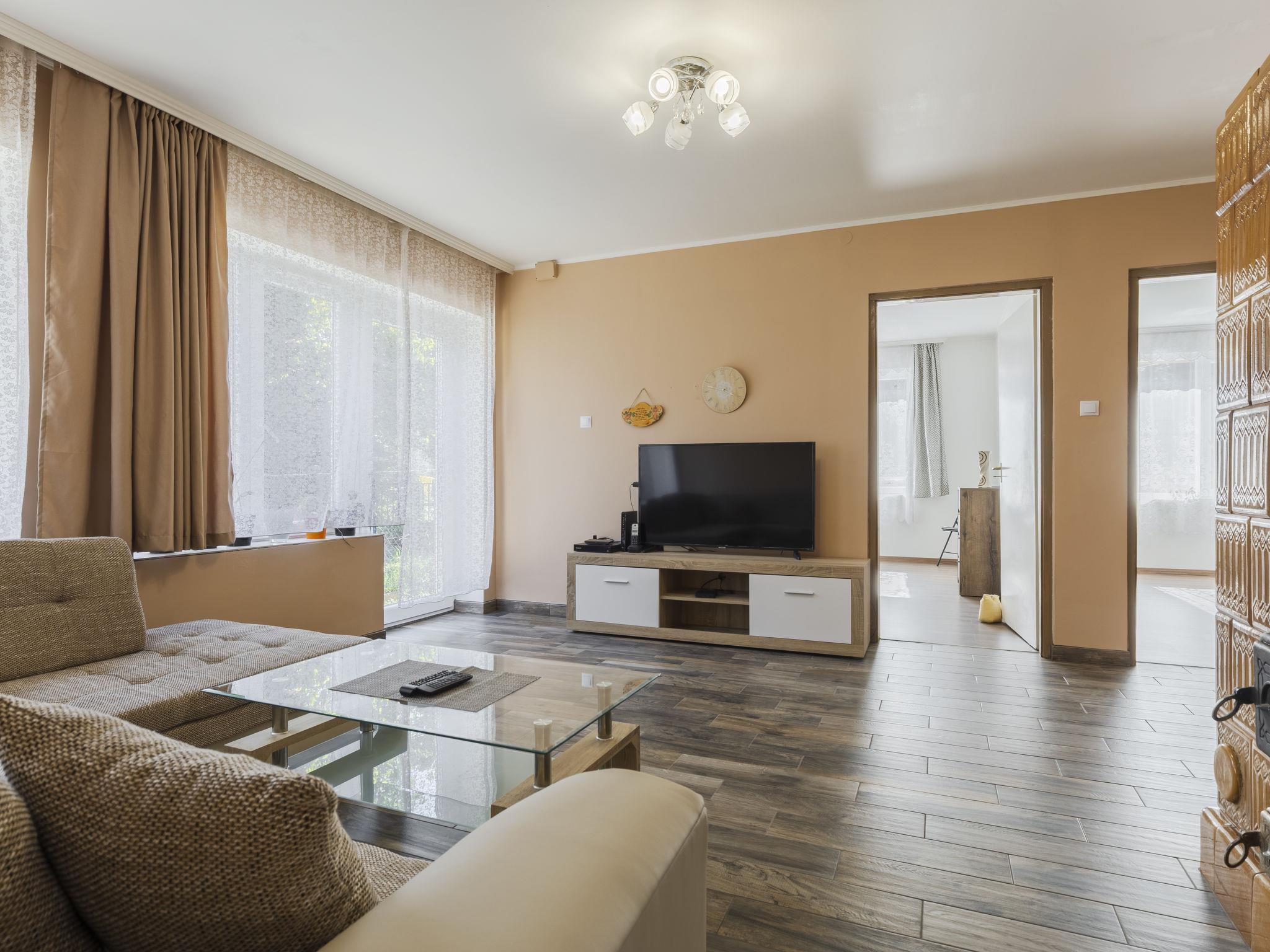 "Dalma", 4-Zimmer-Wohnung im Erdgeschoss. Geräumig und hell, komfortabel und gemütlich eingerichtet: Wohnzimmer mit Digital-TV. Ausgang zum Garten. 1 grosses Doppelzimmer mit 1 franz. Bett (160 cm, Länge 200 cm), Klimaanlage. 2 grosse Doppelzimmer, jedes Zimmer mit 1 franz. Bett (160 cm, Länge 200 cm). Küche (Backofen, Geschirrspüler, Gasherd, 4 Flammen, Toaster, Wasserkocher, Mikrowelle, Tiefkühler, elektrische Kaffeemaschine) mit Esstisch. Ausgang zur Terrasse. Bad/WC, sep. WC. Keine Heizmöglichkeit. Zur Verfügung: Fliegengitter, Kinderhochstuhl, Babybett (extra). Internet (WLAN).