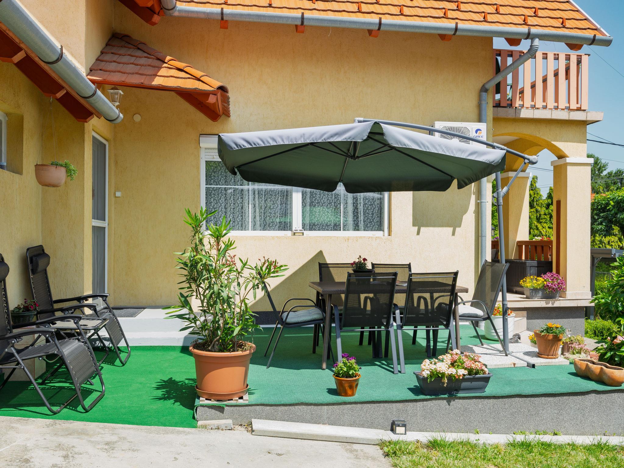 Fonyód 12 km von Balatonlelle: Bitte beachten Sie: Die erste Stunde der Saunabenutzung ist kostenlos. Gemütliches Zweifamilienhaus. Im Ort, sonnige Lage in einem Wohnquartier, 820 m vom See, 1 km vom Strand. Zur Mitbenutzung: Grundstück (eingezäunt), gepflegter Garten, Liegewiese. Zur Alleinbenutzung: Sprudelbad, Gartenmöbel, Grill (Sandkasten). Im Hause: Wireless LAN, Sauna (extra). Klimaanlage, Waschmaschine. Parkplatz auf dem Grundstück. Lebensmittelgeschäft 900 m, Supermarkt 1 km, Bäckerei 1 km, Fahrradverleih 1 km, Bahnstation 1 km, Thermalbad "Igal" 57 km. Tennis 9 km, Reitstall 8 km, Radweg 900 m, Kinderspielplatz 1 km. Nahe gelegene Sehenswürdigkeiten: Kis-Balaton Visitor Center 38 km, Balatonlelle Ferris wheel 12 km, Festetics Castle 42 km, Zamárdi Adventure Park 46 km, Kristinus Wine Estate 30 km, Bella Zoo Siófok 59 km. Bitte beachten: Der Besitzer wohnt im selben Haus.