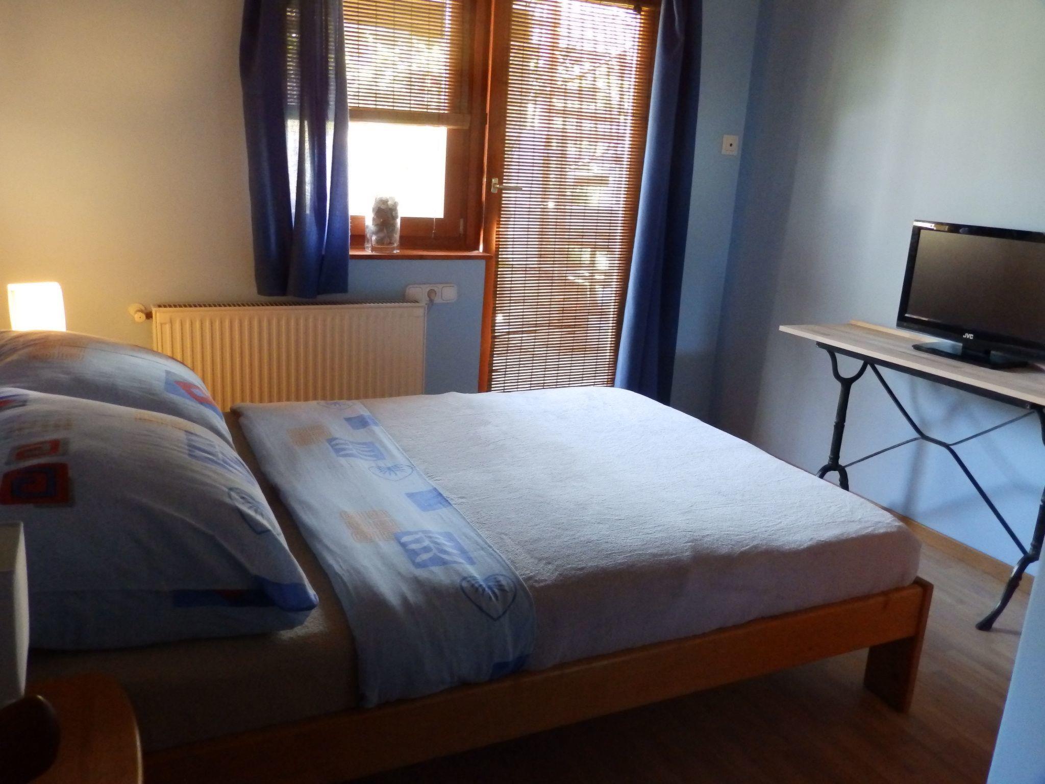 Obengeschoss: 2 Zweibettzimmer mit SAT-TV, Badezimmer mit Badewanne und mit WC. Balkon