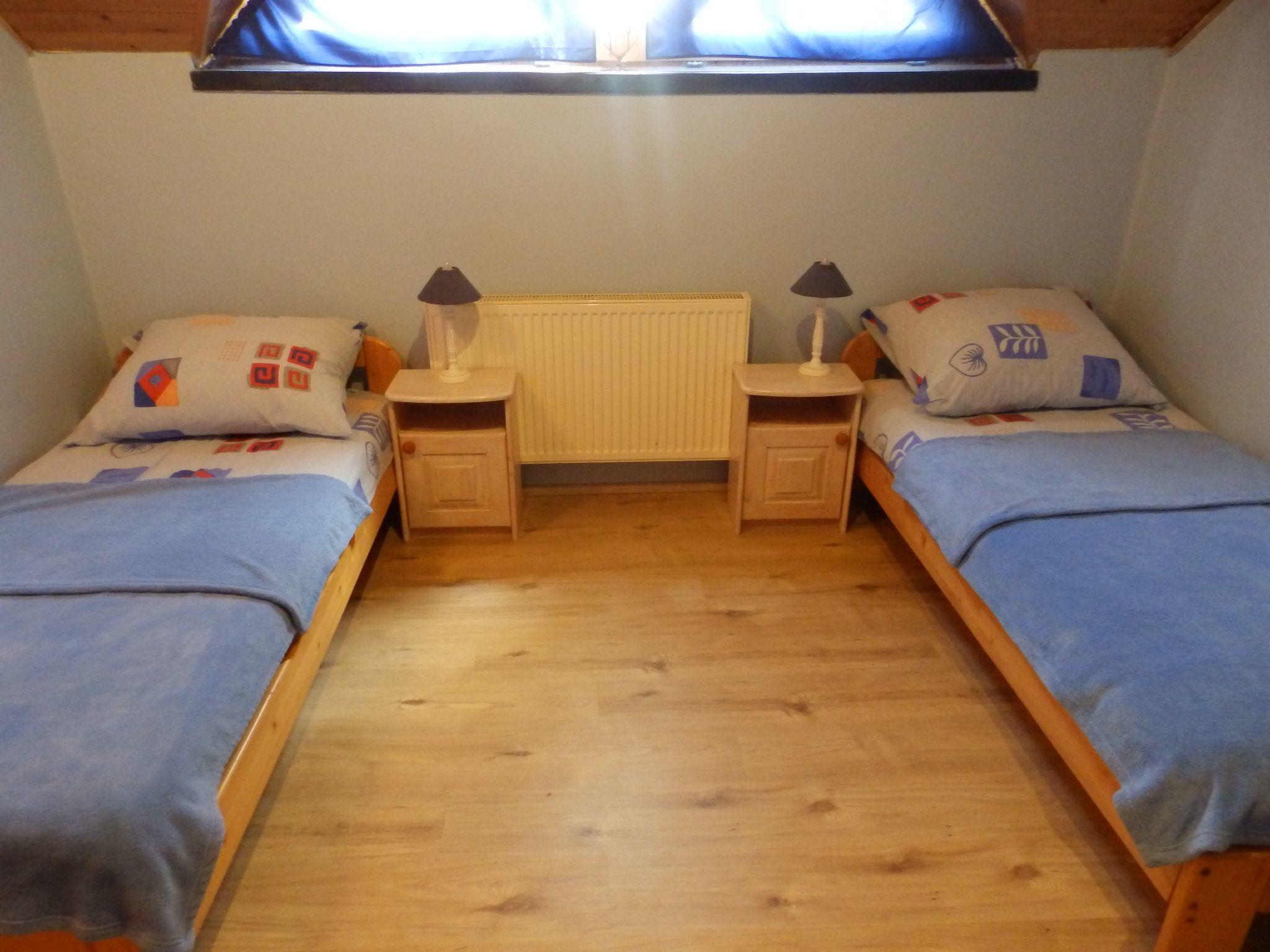 Sonstige Schlafzimmereinrichtung : Obengeschoss: 2 Zweibettzimmer mit SAT-TV, Badezimmer mit Badewanne und mit WC.