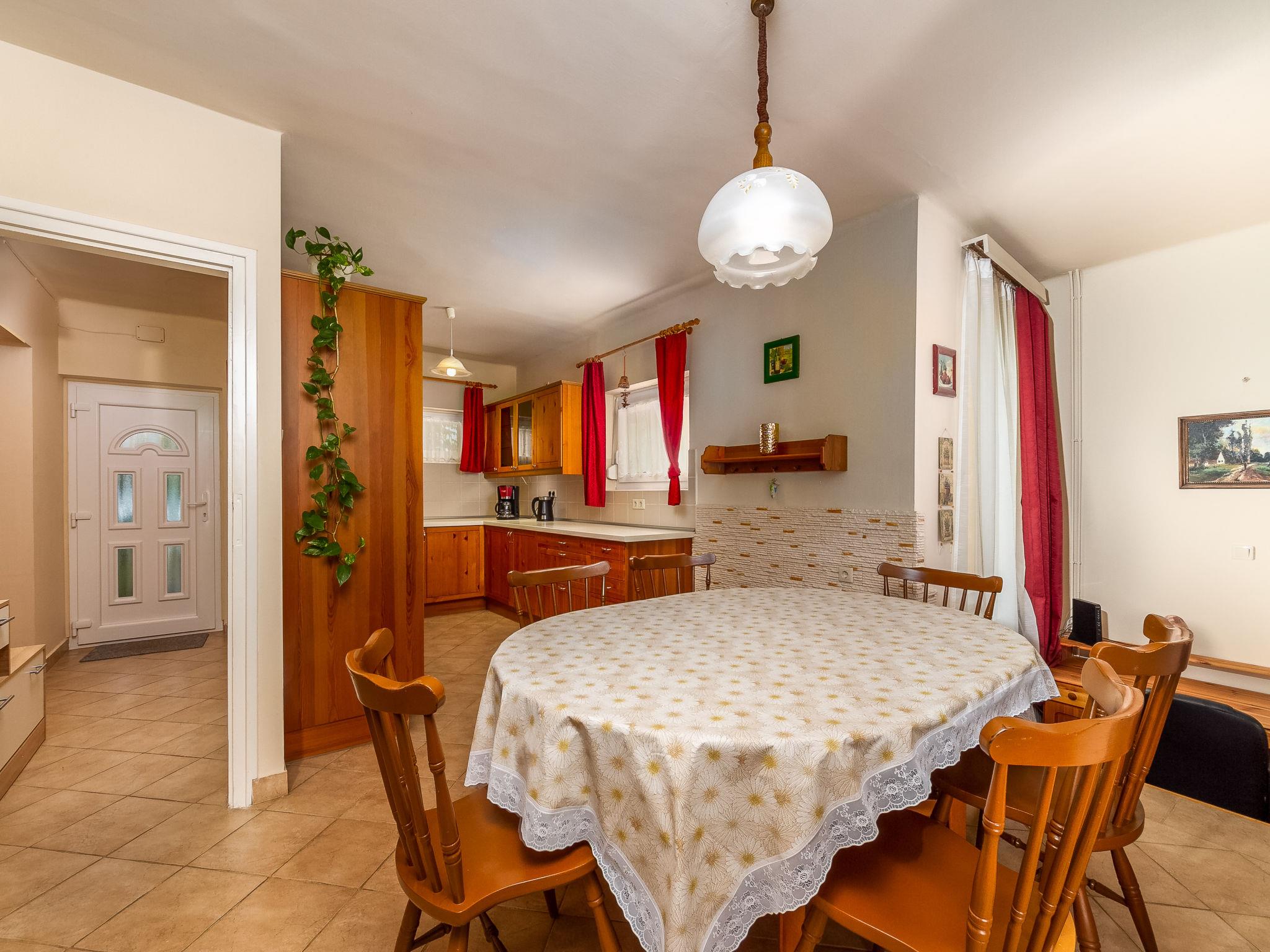 Fonyód: Schönes Zweifamilienhaus "Nancy", auf 2 Stockwerken. Im Ort, ruhige Lage, 1 km vom See. Zur Mitbenutzung: Grundstück 750 m2 (eingezäunt), Garten, Liegewiese. Zur Alleinbenutzung: Schwimmbad eckig (10 m2, 140 - 140 cm tief, saisonale Verfügbarkeit: 15.Mai. - 15.Sep.). Im Hause: Wireless LAN. Lebensmittelgeschäft, Restaurant 600 m, Grasstrand 1 km. Bitte beachten: Der Besitzer wohnt auf dem gleichen Grundstück.