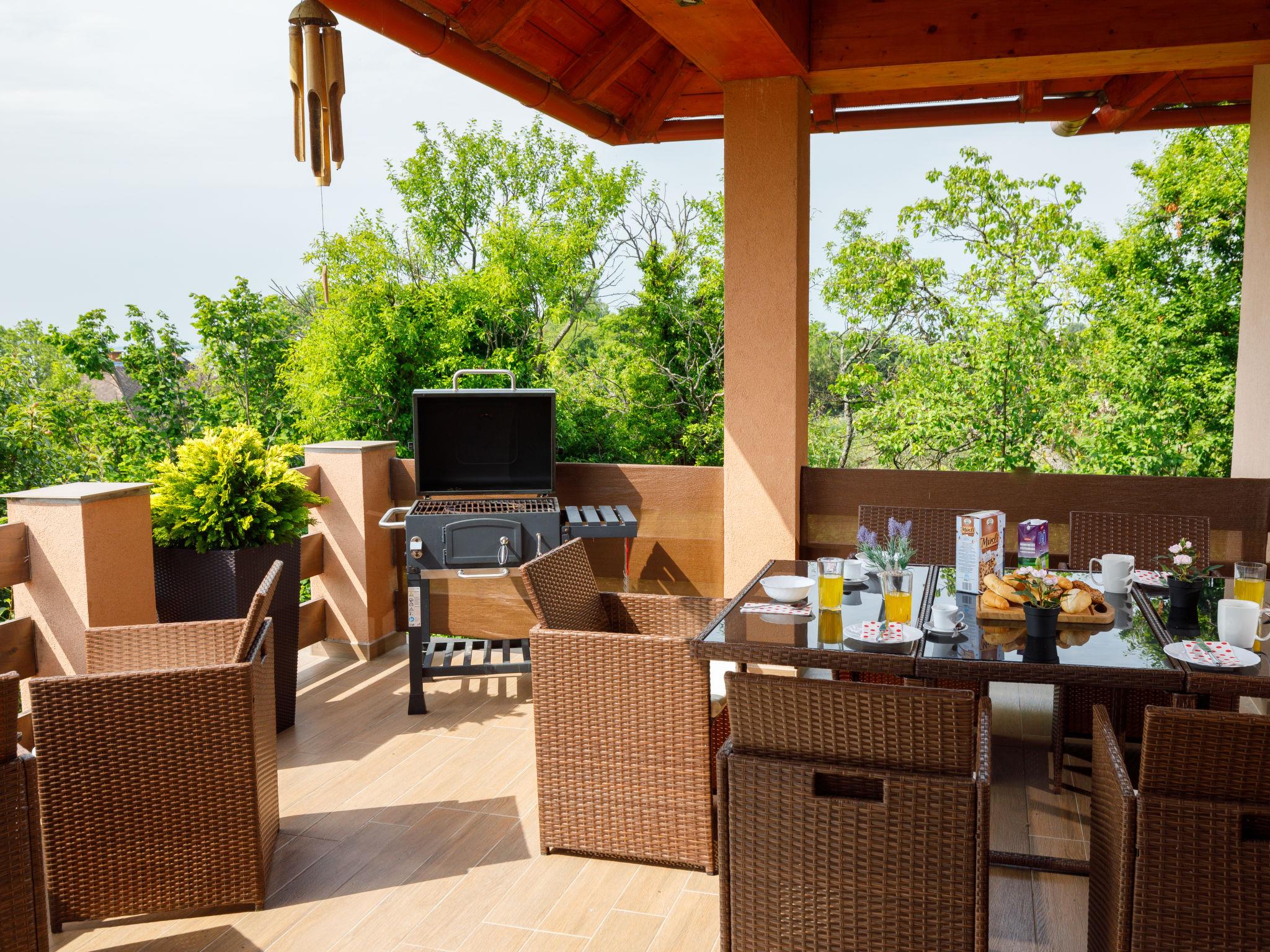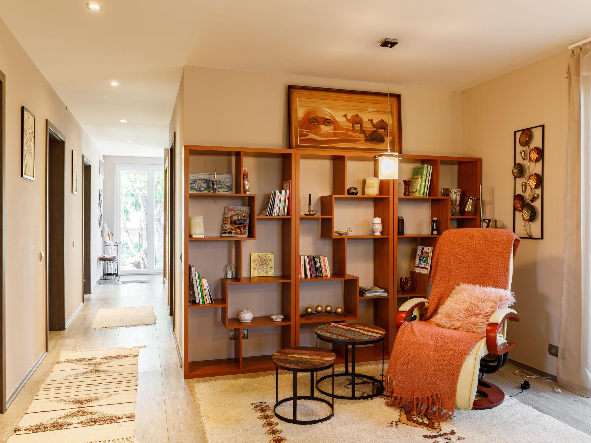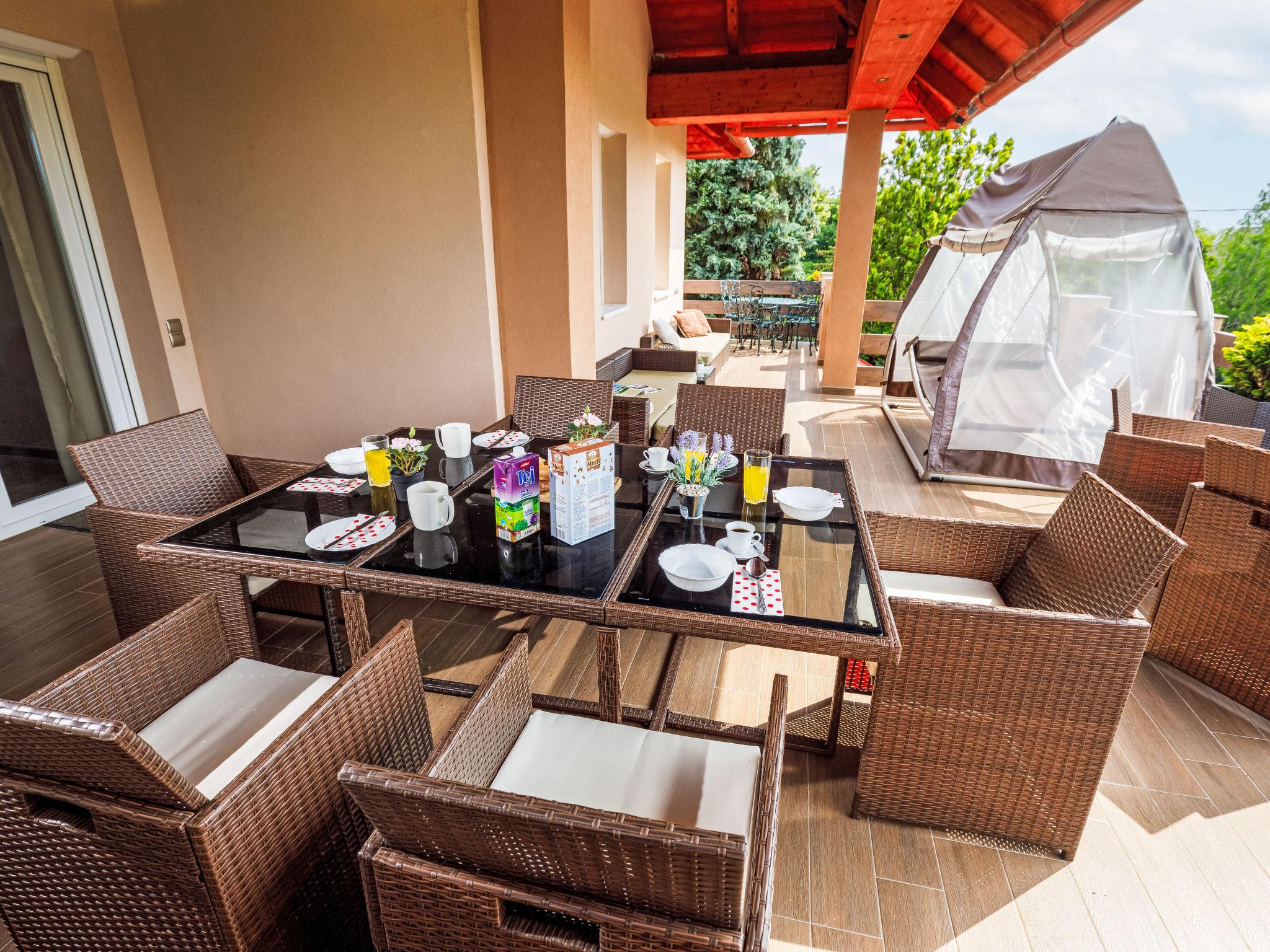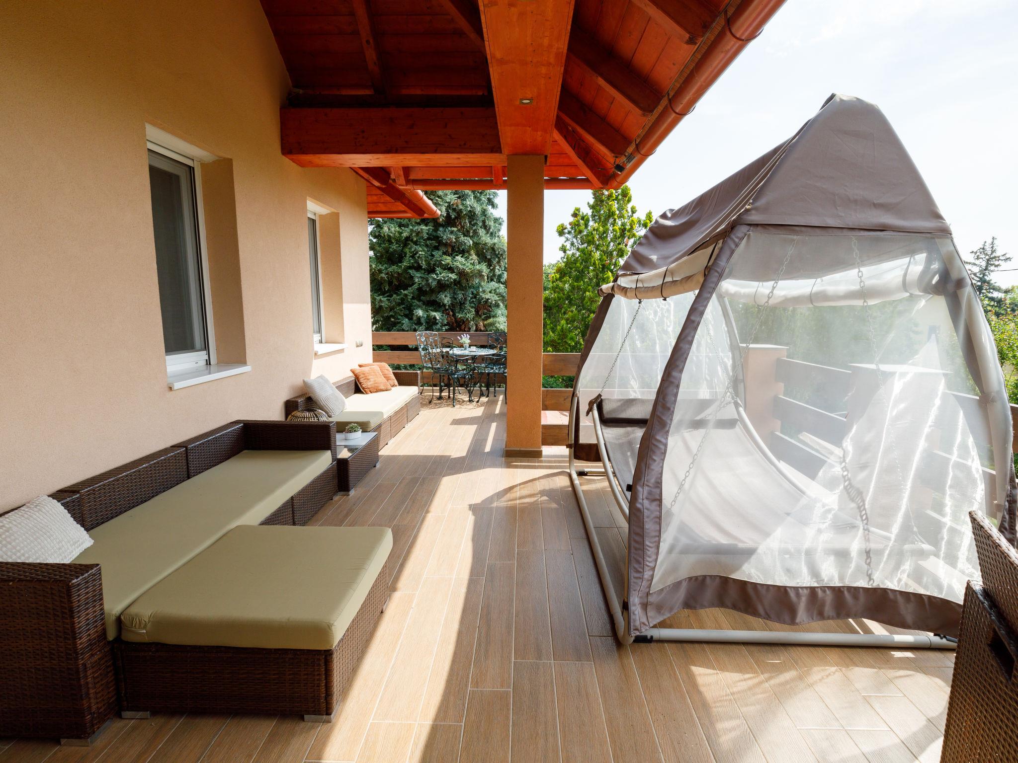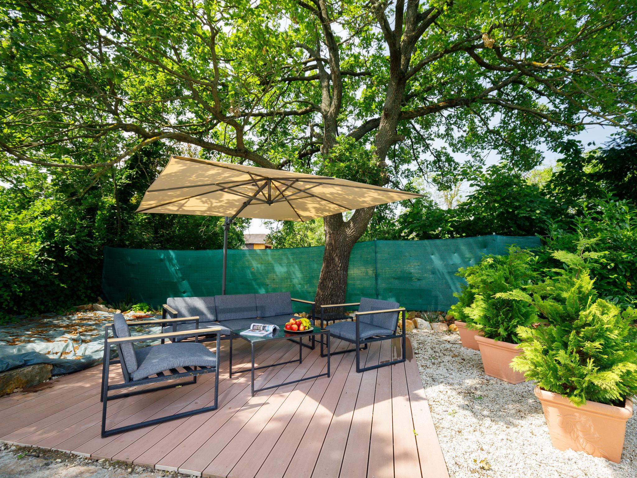 "Zen". Geräumig, schön und stilvoll eingerichtet: Wohn-/Esszimmer mit 1 Doppeldiwanbett (2 Pers.), Kabel-TV. Ausgang zur Terrasse. 1 Zimmer mit 1 franz. Bett (160 cm, Länge 200 cm), Kabel-TV. 1 Zimmer mit 1 franz. Bett (180 cm, Länge 200 cm). Ausgang zur Terrasse. Offene Küche (4 Glaskeramikplatten, Toaster, Wasserkocher, Mikrowelle, Tiefkühler, elektrische Kaffeemaschine). Sep. WC, Bad/Dusche/WC. Bodenheizung. Grosse Terrasse 40 m2. Terrassenmöbel, Gartengrill (mobil). Schöne Sicht auf den Garten. Zur Verfügung: Kinderhochstuhl, Babybett. Internet (Wireless LAN). Der Eigentümer wohnt manchmal in der unteren Etage. MA23060705