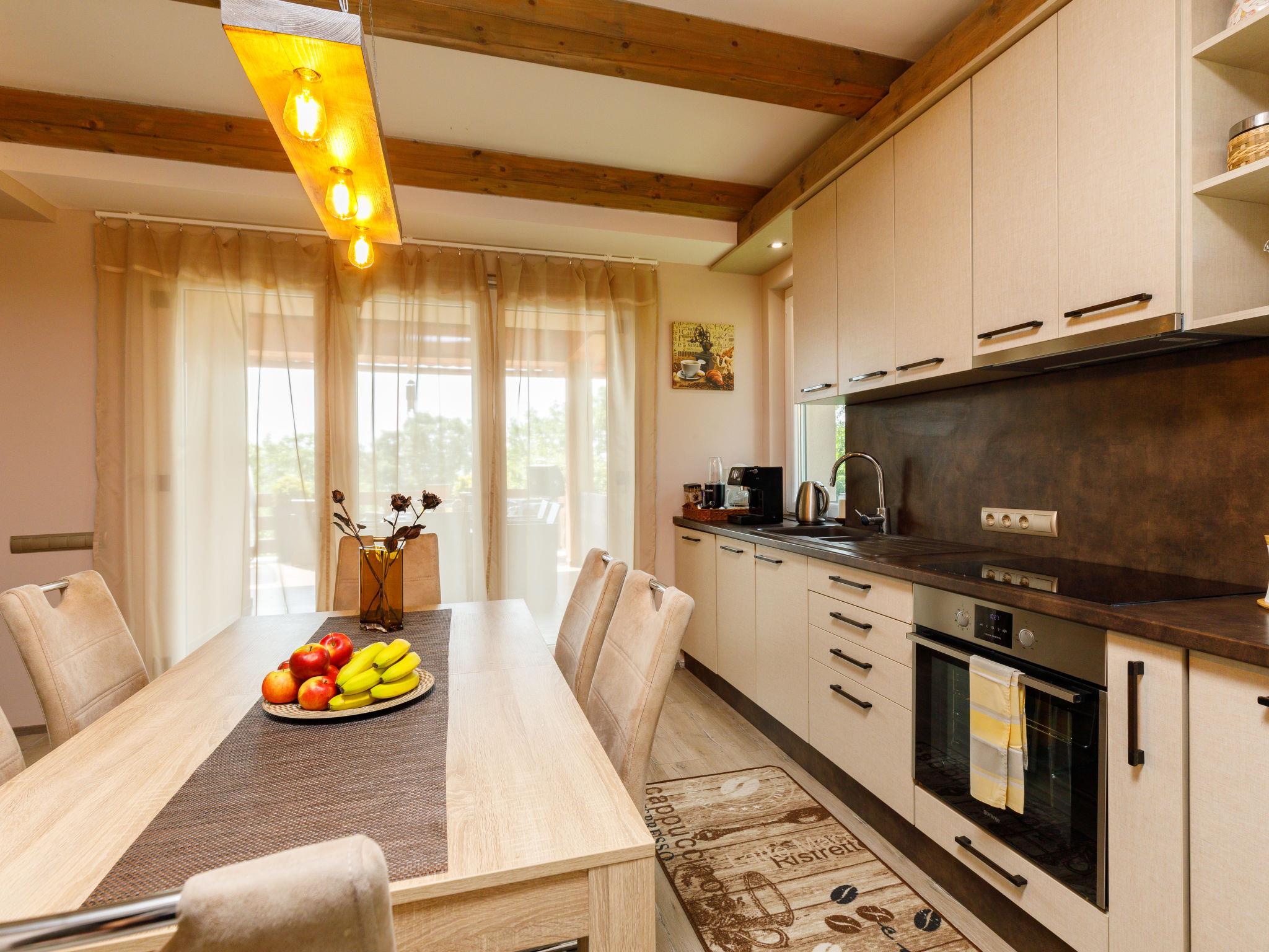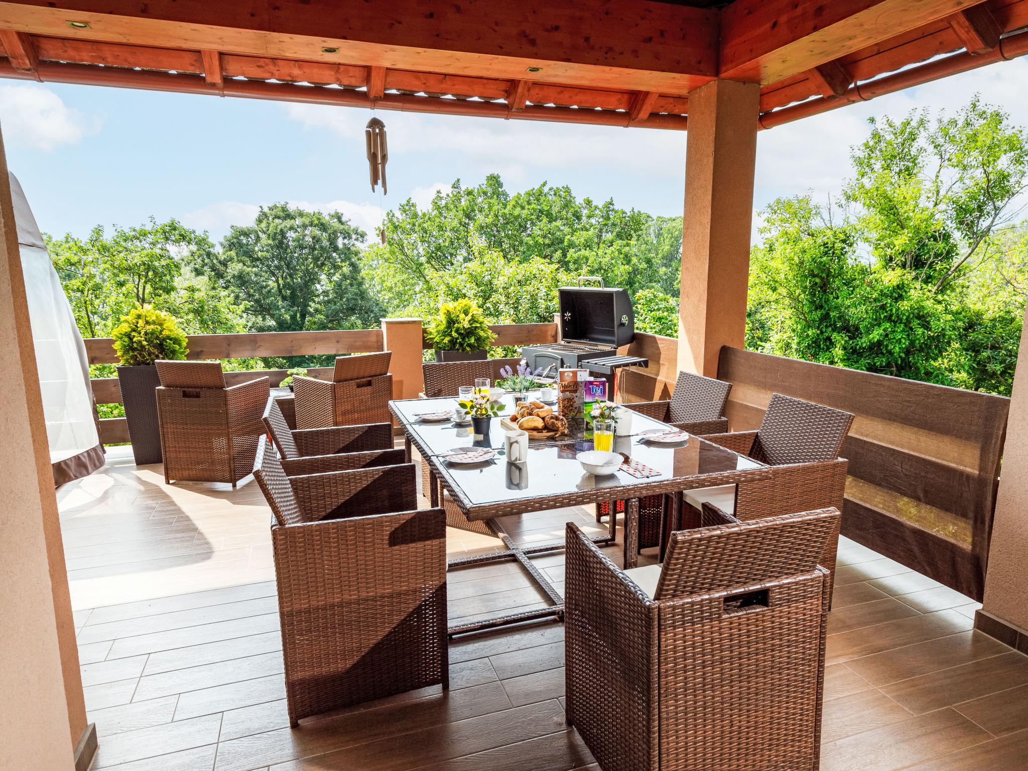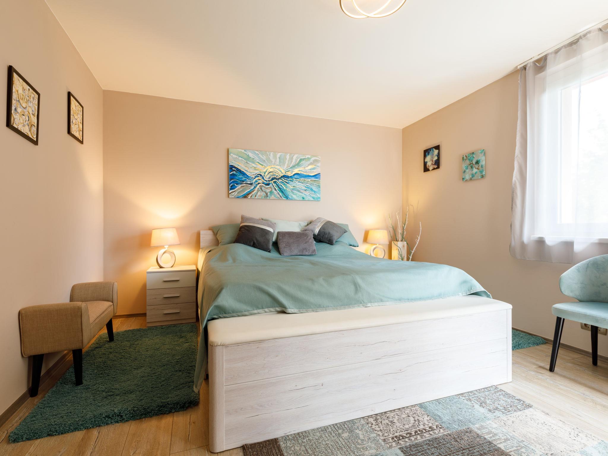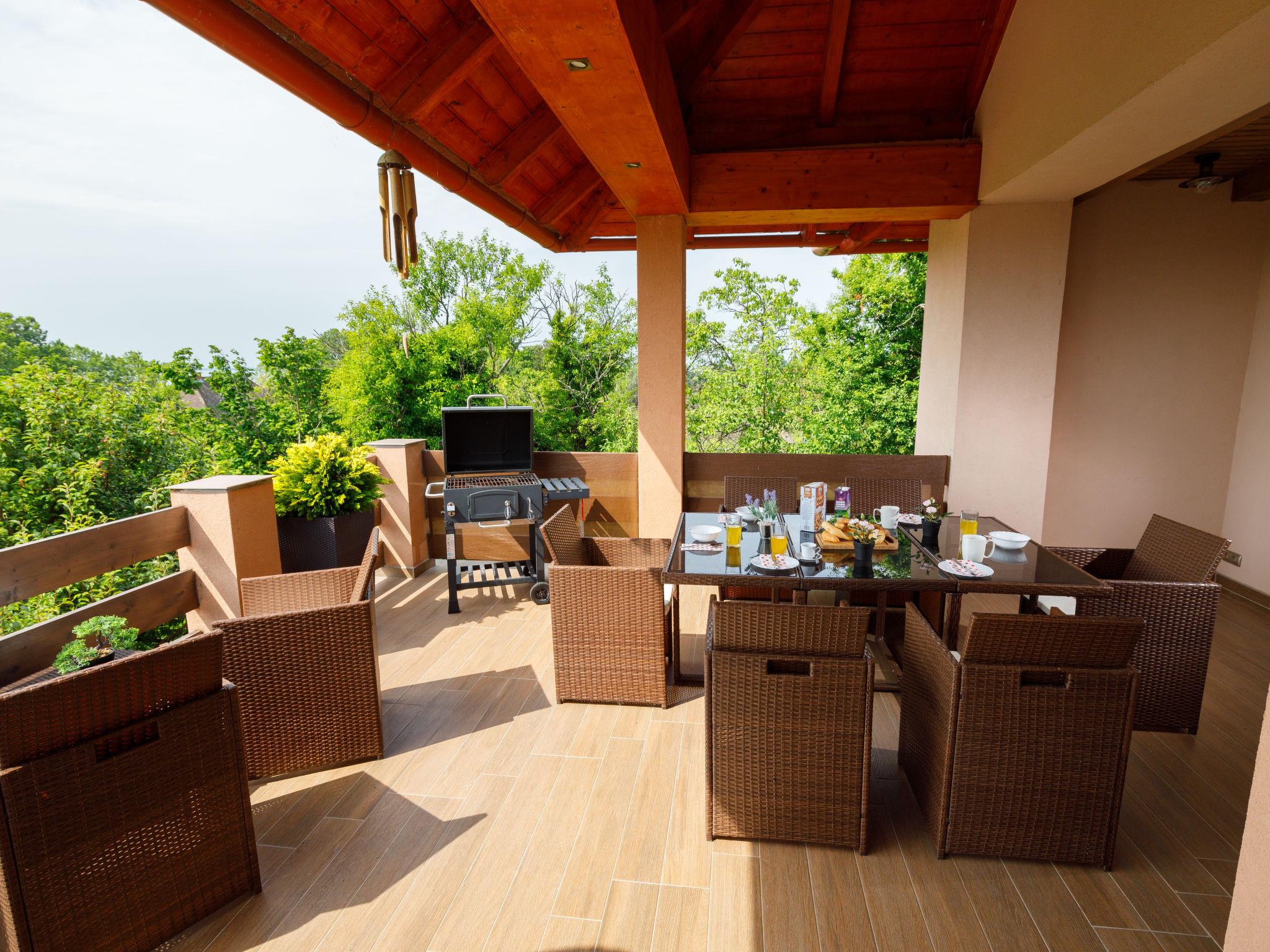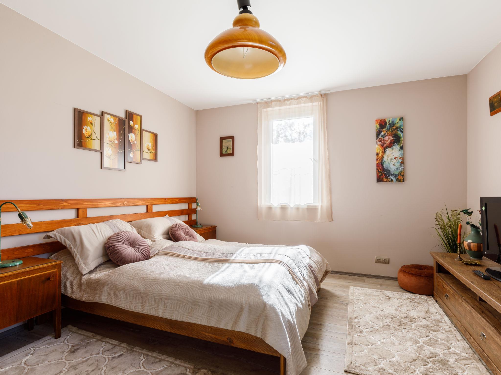 "Zen". Geräumig, schön und stilvoll eingerichtet: Wohn-/Esszimmer mit 1 Doppeldiwanbett (2 Pers.), Kabel-TV. Ausgang zur Terrasse. 1 Zimmer mit 1 franz. Bett (160 cm, Länge 200 cm), Kabel-TV. 1 Zimmer mit 1 franz. Bett (180 cm, Länge 200 cm). Ausgang zur Terrasse. Offene Küche (4 Glaskeramikplatten, Toaster, Wasserkocher, Mikrowelle, Tiefkühler, elektrische Kaffeemaschine). Sep. WC, Bad/Dusche/WC. Bodenheizung. Grosse Terrasse 40 m2. Terrassenmöbel, Gartengrill (mobil). Schöne Sicht auf den Garten. Zur Verfügung: Kinderhochstuhl, Babybett. Internet (Wireless LAN). Der Eigentümer wohnt manchmal in der unteren Etage. MA23060705