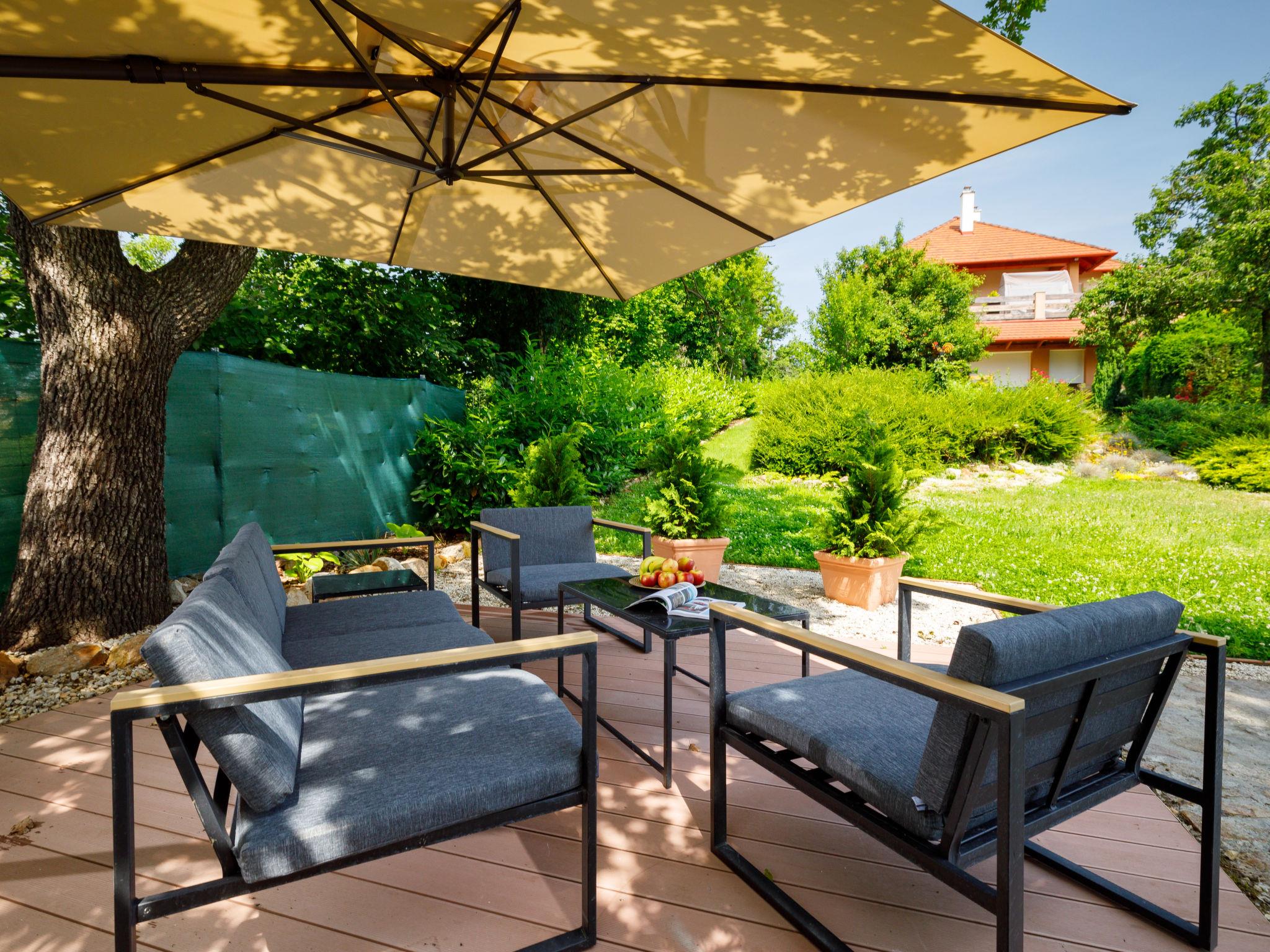 Révfülöp 25 km von Balatonfüred: Moderne, schöne Villa, renoviert im Jahre 2022. Im Ort, sonnige Lage im Villenviertel, 120 m vom See, 500 m vom Strand. Zur Mitbenutzung: Grundstück 1'800 m2 (eingezäunt), wunderschöner Garten zum Entspannen. Zur Alleinbenutzung: Aussendusche, Gartenmöbel, Grill. Im Hause: Tischtennis, Zentralheizung. Parkplatz (für 3 Autos). Lebensmittelgeschäft 900 m, Supermarkt 1 km, Restaurant, Bar, Café 700 m, Fußgängerzone 700 m, Fahrradverleih 1.1 km, Bahnstation 1 km, Grasstrand 500 m, Park 500 m, Thermalbad "Hévíz" 43 km. Golfplatz (18 Loch) 18 km, Tennis 6 km, Reitstall 2 km, Sportzentrum 2 km, Kinderspielplatz 500 m. Nahe gelegene Sehenswürdigkeiten: Tihany Abbey 26 km, Annagora Aquapark 27 km, Veszprem Zoo 43 km, Festetics Palace 37 km, Tapolca Lake Cave 17 km. Wandergebiete: Badacsony 13 km. In Balatonfüred statt, 28 km.