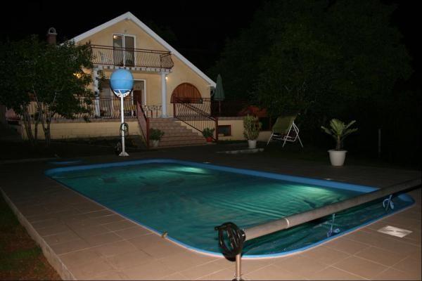 Freistehender Bungalow mit privatem Schwimmbad, WIFI, Klimaanlage und einem Hotelsafe. Geeignet für 4 Personen. Schönes Panorama. Ruhig und zentral gelegen zwischen Budapest und dem Balaton.