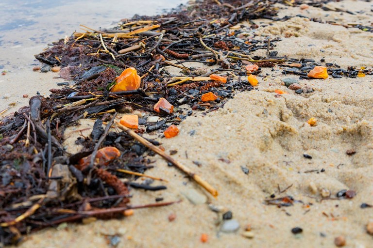 Die wertvollen Steinchen verstecken sich meist unter Treibholz, Algen und Seetang. Ein echte Schatzsuche für die ganze Familie!