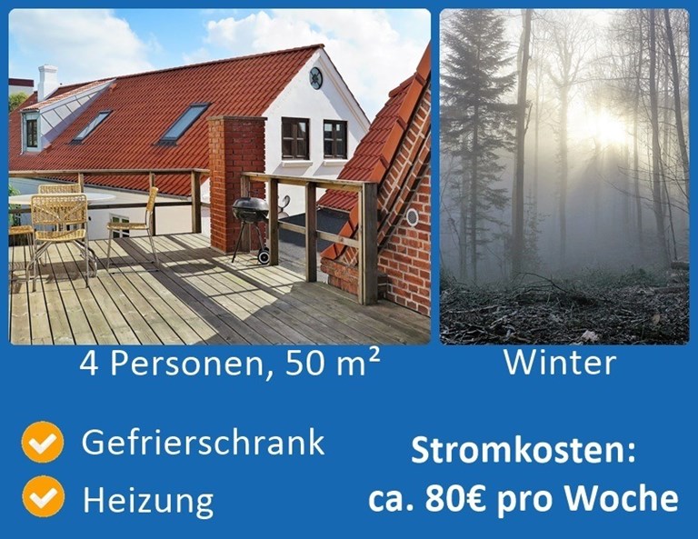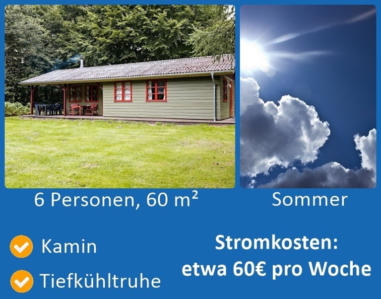 Deutlich teurer ist der Strom, besonders da dieser in zahlreichen Ferienhäusern auch Heizung und Warmwasserversorgung antreibt. Pro genutzter Kilowattstunde werden durchschnittlich 40 Cent fällig. In einem normalen Ferienhaus für 4-6 Personen und ohne besondere Ausstattung macht das etwa 50 Euro pro Woche im Sommer – im Winter wegen der Heizkosten etwa das Doppelte.