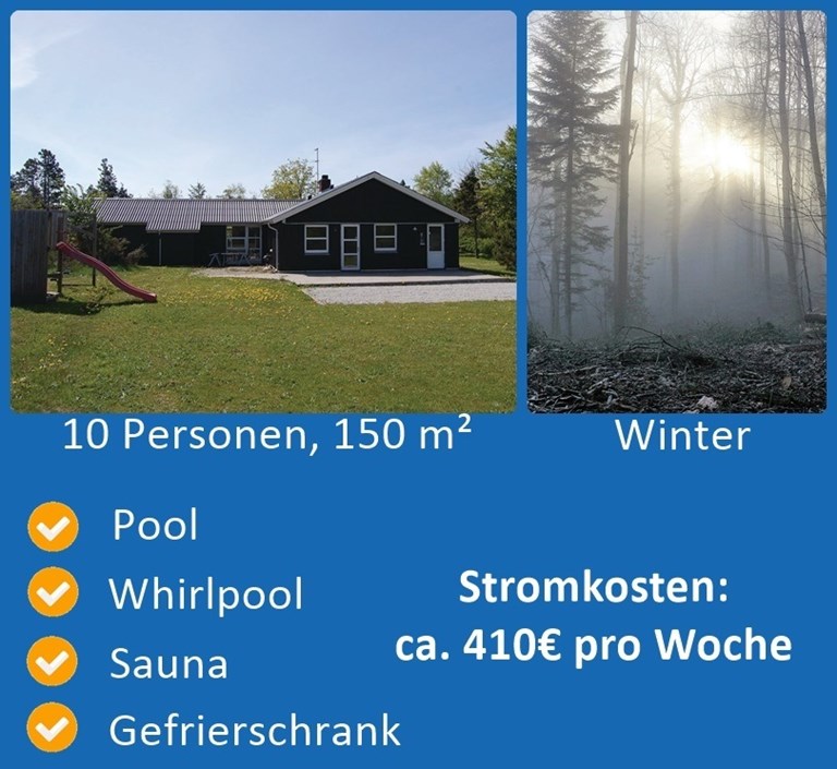 Bei den Stromkosten bedeutet ein toll ausgestattetes Ferienhaus leider auch, dass es schnell noch sehr viel teuer werden kann. Besonders Poolhäuser sind durch ständig laufende Filteranlagen und große zu beheizende Wasser- und Poolraumflächen sehr teuer und verbrauchen durchschnittlich die fünffache Strommenge eines „normalen“ Ferienhauses.