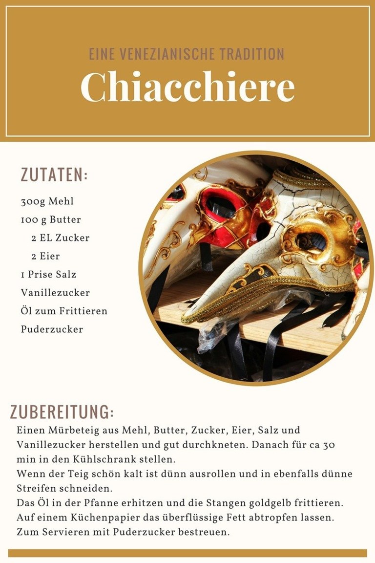Besonders bekannt in Europa ist wohl der venezianische Karneval. Auch hier gibt es natürlich eine süße Spezialität. Die sogenannten Chiacchiere, frittiere Teigstangen mit viel Puderzucker, die früher mit Blut verspeist wurden, heute aber mit der doch wohl etwas beliebteren Schokosoße.