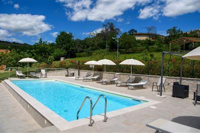 Auf einer Anhöhe empfängt Sie das Dorf Montefino und dieses charmante und authentische Ferienhaus. Machen Sie mit Ihrer Familie abseits der überlaufenen Strände Urlaub und genießen Natur und Berge. Dieses schöne und gut ausgestattete Ferienhaus versprüht
