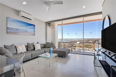 Wohnung in Torremolinos am Bajondillo Strand Haus: Betreten Sie ein luxuriöses Küstenparadies mit Panoramablick auf das Meer und elegantem Komfort. Dieses moderne Apartment bietet zwei geräumige Schlafzimmer mit Kingsize-Betten und zwei Badezimmer – ideal