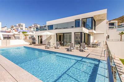 5,0Genießen Sie einen exklusiven Urlaub in dieser modernen Villa mit herrlichem Ausblick und Pool. Ihr stilvolles Ferienhaus in Finestrat kombiniert luxuriösen Komfort mit einem atemberaubenden Blick auf die Skyline von Benidorm und das Mittelmeer. Im Inneren