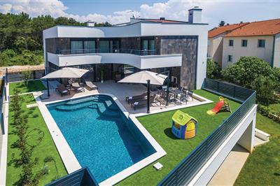 5,0Diese exquisite Villa moderner Architektur wird Sie mit Qualität in Einrichtung und Ausstattung begeistern. Im Untergeschoss liegen zwei Schlafzimmer, ein Spielzimmer sowie eine Fitness- und Wellnessoase. Der einfache Zugang zur Poolterrasse wird im