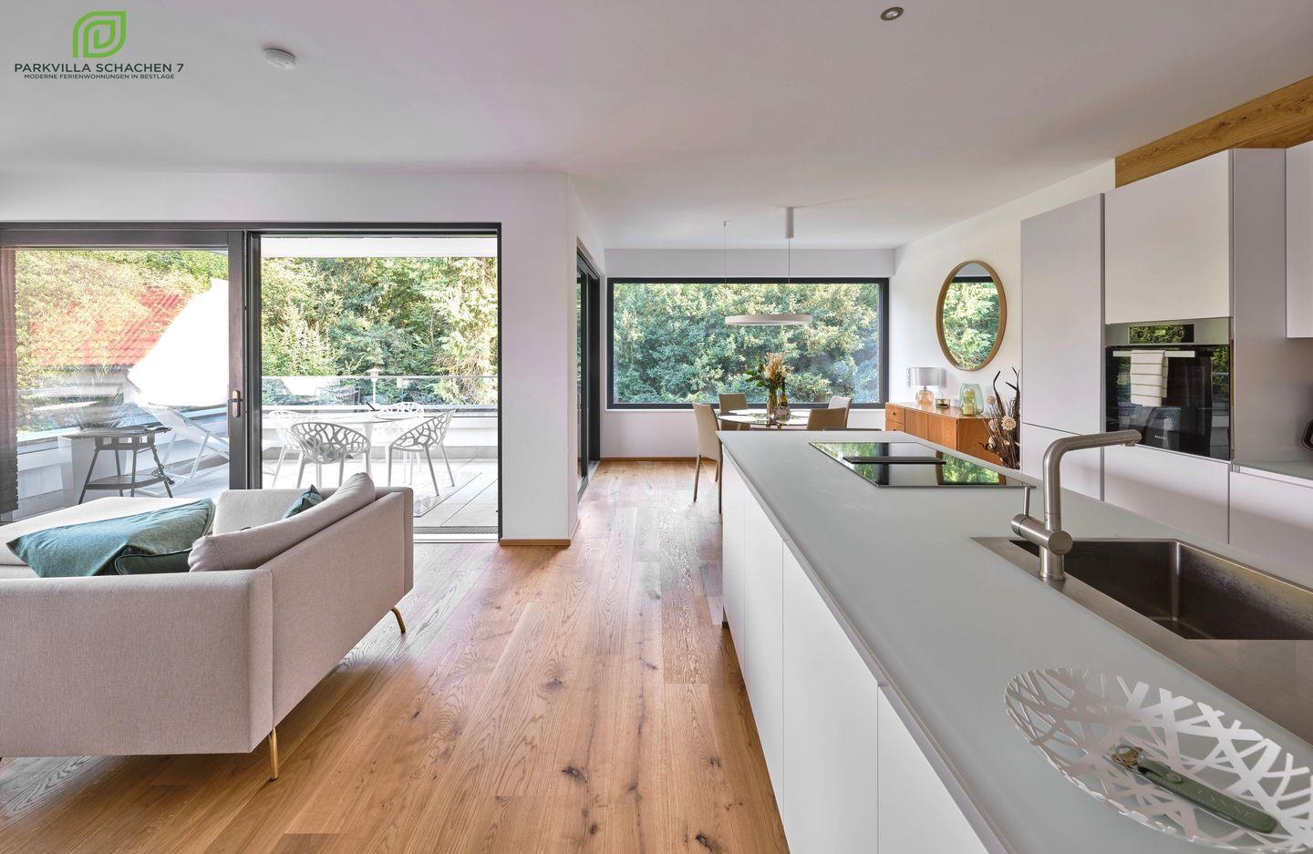 4,7Ferienwohnung Tanne - Parkvilla Schachen 7 Einladende Atmosphäre mit hochwertiger Ausstattung - Luxus-Ferienwohnung Tanne am Lindenhofpark Bad-Schachen. Mit großzügigen 103 Quadratmetern Wohnfläche bietet die Ferienwohnung Platz für 2-4 Personen. Die