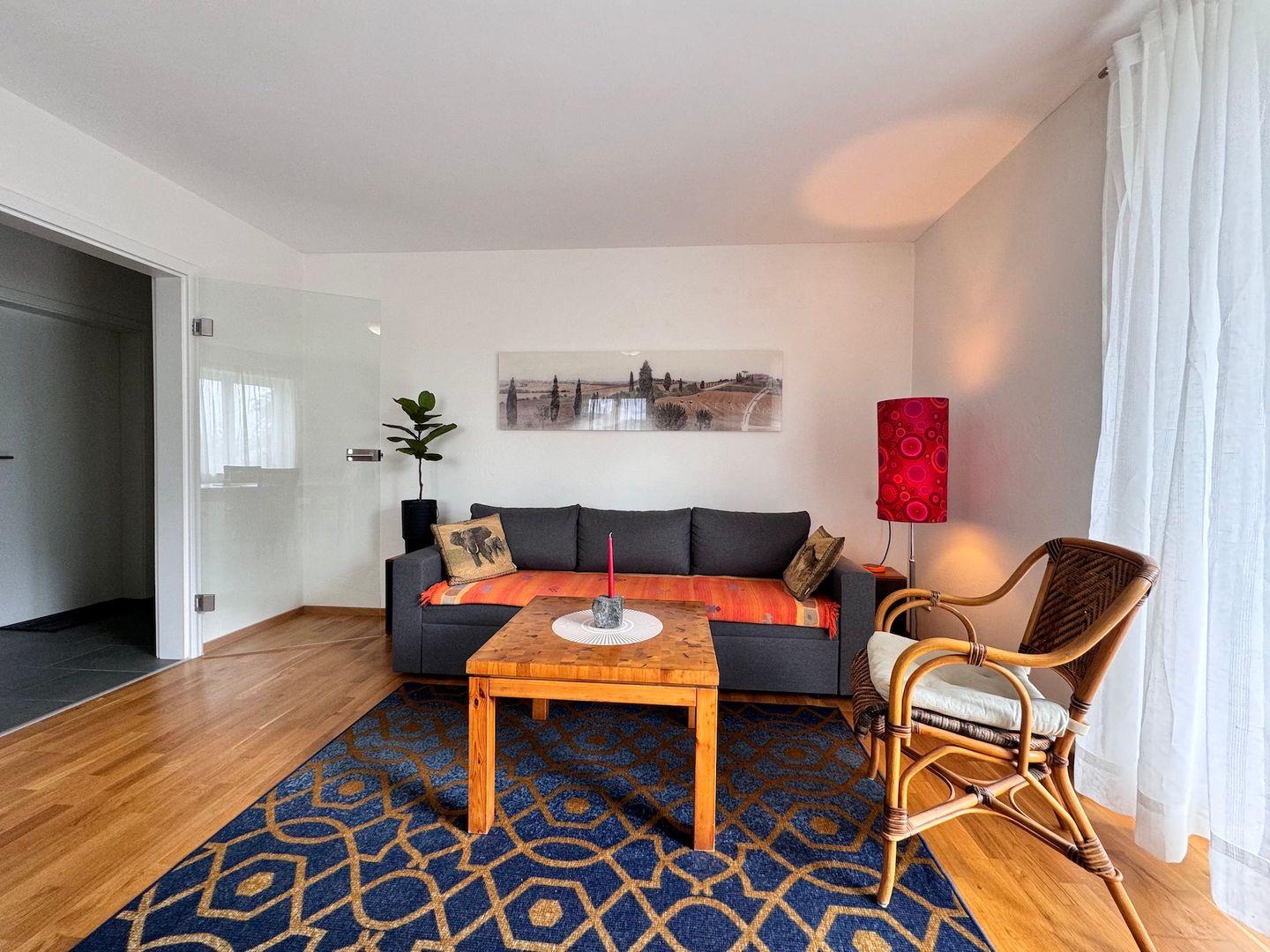 Ferienwohnung/App. für 5 Gäste mit 95m² in Friedrichshafen (249817) (Erdgeschoss) Liebevoll eingerichteter Wohn- und Schlafraum für 2 Personen mit großem Doppelbett und hochwertigem Schlafsofa, Badezimmer mit Dusche, WC, Föhn, Handtuchwärmer und