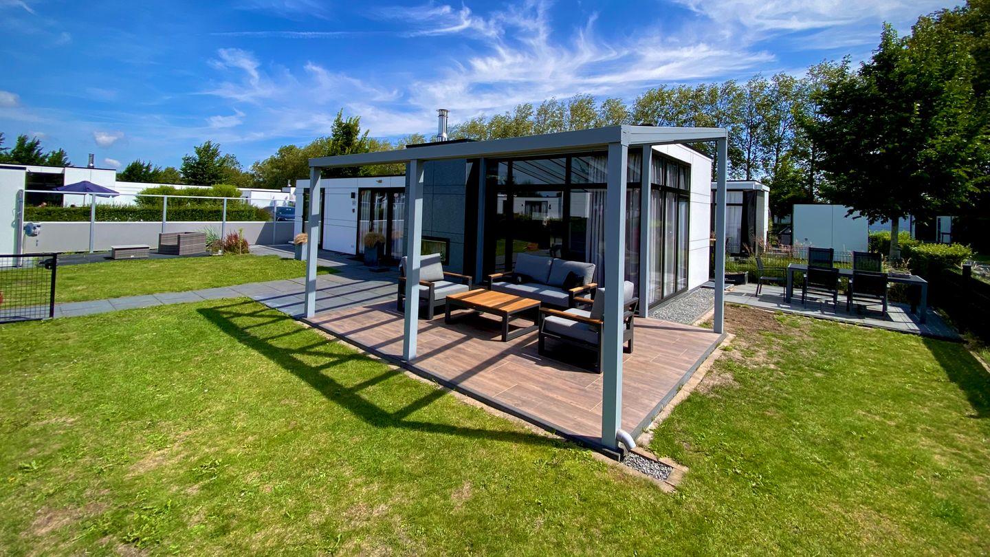 Chalet 'Maritim' mit Zaun & AirCo in Breskens nah am Strand und Meer Das freistehende Chalet Maritim mit Zaun bietet auf 80 m² Platz für bis zu fünf Personen. Die Unterkunft ist ausgestattet mit drei Schlafzimmern, offener Küche, Wohnzimmer sowie überdachter