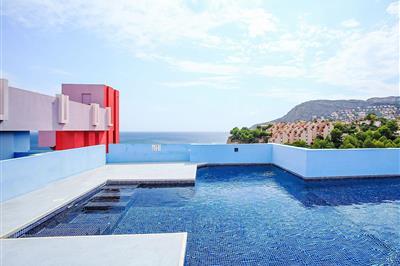 4,6"Calpe Beach II", 3-Zimmer-Wohnung 149 m2 im 6. Stock. Geräumig und hell, schön und modern eingerichtet: offenes grosses Wohn-/Esszimmer mit Panoramafenster mit Digital-TV, Klimaanlage und Warmluftheizung. Ausgang zur Terrasse. 1 Zimmer mit 1 franz. Bett (1 x