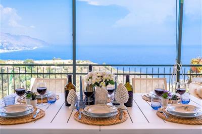 0,0Willkommen in unserer privaten Wohnung in einer schönen Villa, mit einer Terrasse mit Panoramablick auf Taormina, Castelmola und den Golf von Giardini, das Tal und das Meer, ideal für einen erholsamen und komfortablen Urlaub. Die Wohnung mit 5,5 Zimmern plus