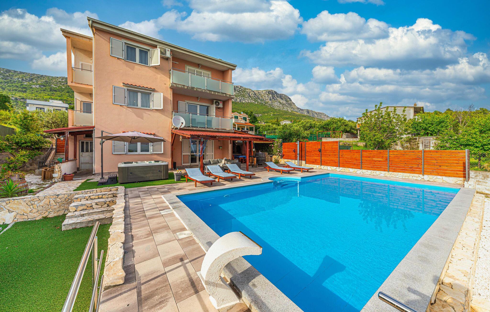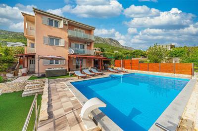 4,6Auf einem großen Grundstück, im Ort Kaštel Lukšic, befindet sich dieses modern eingerichtete Ferienhaus, in dem Sie mit Ihren Lieben alles Notwendige f[r einen unvergesslichen Urlaub vorfinden. Die Wohneinheit umfasst ein Erdgeschoss, die erste Etage und ein