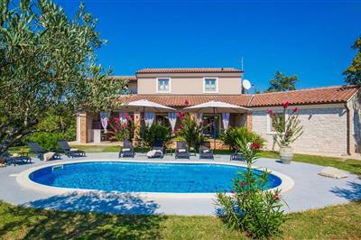 5,0Weit vom Stress des Alltags und in einer idyllischer Umgebung erwartet Sie dieses wunderschöne Ferienhaus. Kürzlich im traditionellen Baustil Istriens renoviert, wurde es mit gemütlichen Möbeln eingerichtet. Im gepflegten Garten mit zwei überdachten Terrassen