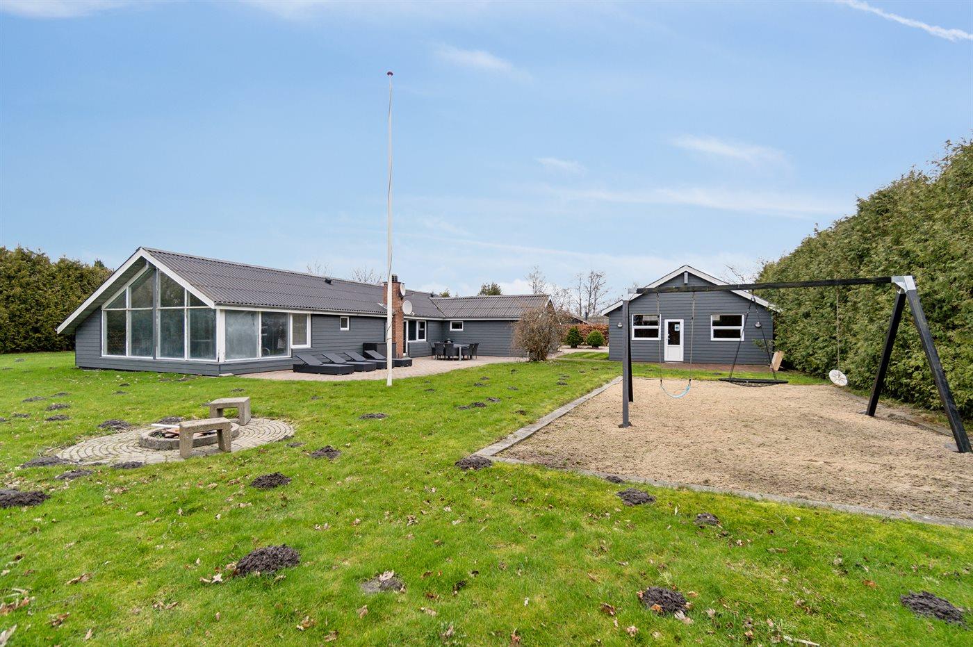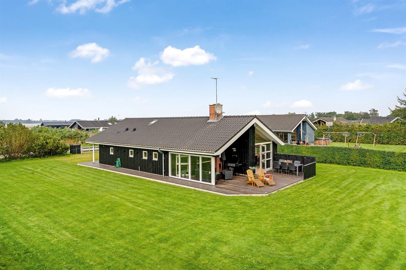 3,6Dieses schöne Feriehaus liegt auf einem eingezäunten Gartengrundstück. Das Haus ist von etwa 100 m2 offener und etwa 15 m2 überdachter Terrassefläche umgeben – hier kannman es sich mit einem guten Buch gemütlich machen, eine leckere Mahlzeit im Freien