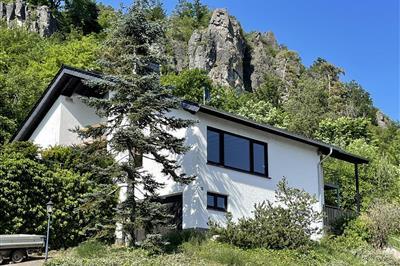 Ferienwohnungen Dreifelsenblick, FeWo Erdgeschoss Drei-Felsen-Blick Haus mit 2xFeWo jeweils 90qm für jeweils bis zu 6 Personen. Direkt am Waldrand und Naturschutzgebiet gelegen, Eifelsteig-Wanderweg und Kletterfelsen 200m von Haus. Der Gerolsteiner Bahnhof