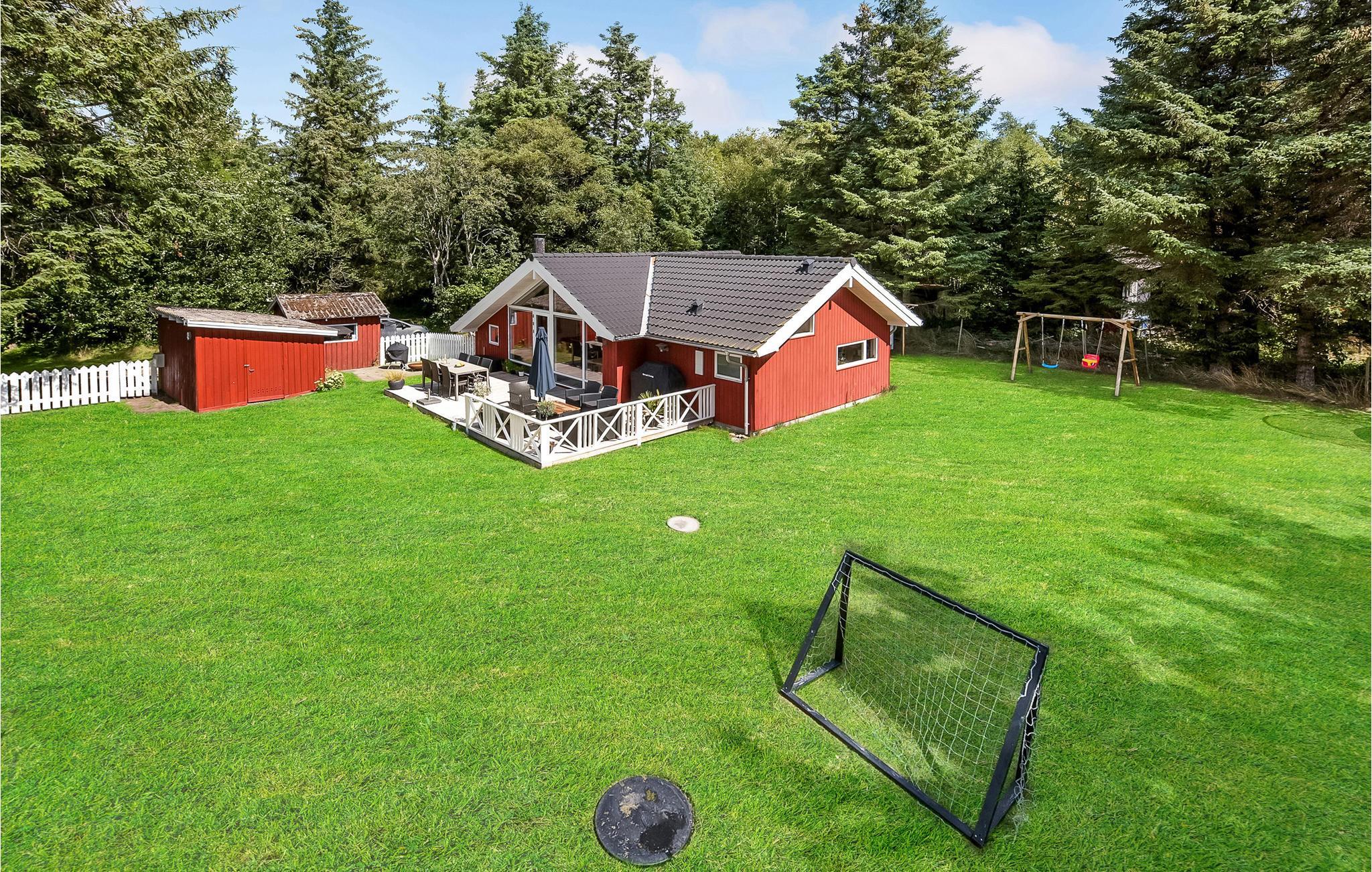 4,7Auf einem großen sichtgeschützten Rasengrundstück mit viel Platz für einen Urlaub mit der Familie erwartet Sie dieses schöne Ferienhaus bei Esbjerg. Den Mittelpunkt des Hauses bildet der offene Wohnbereich mit Esstisch, Sofaecke und offener Küche, von dem
